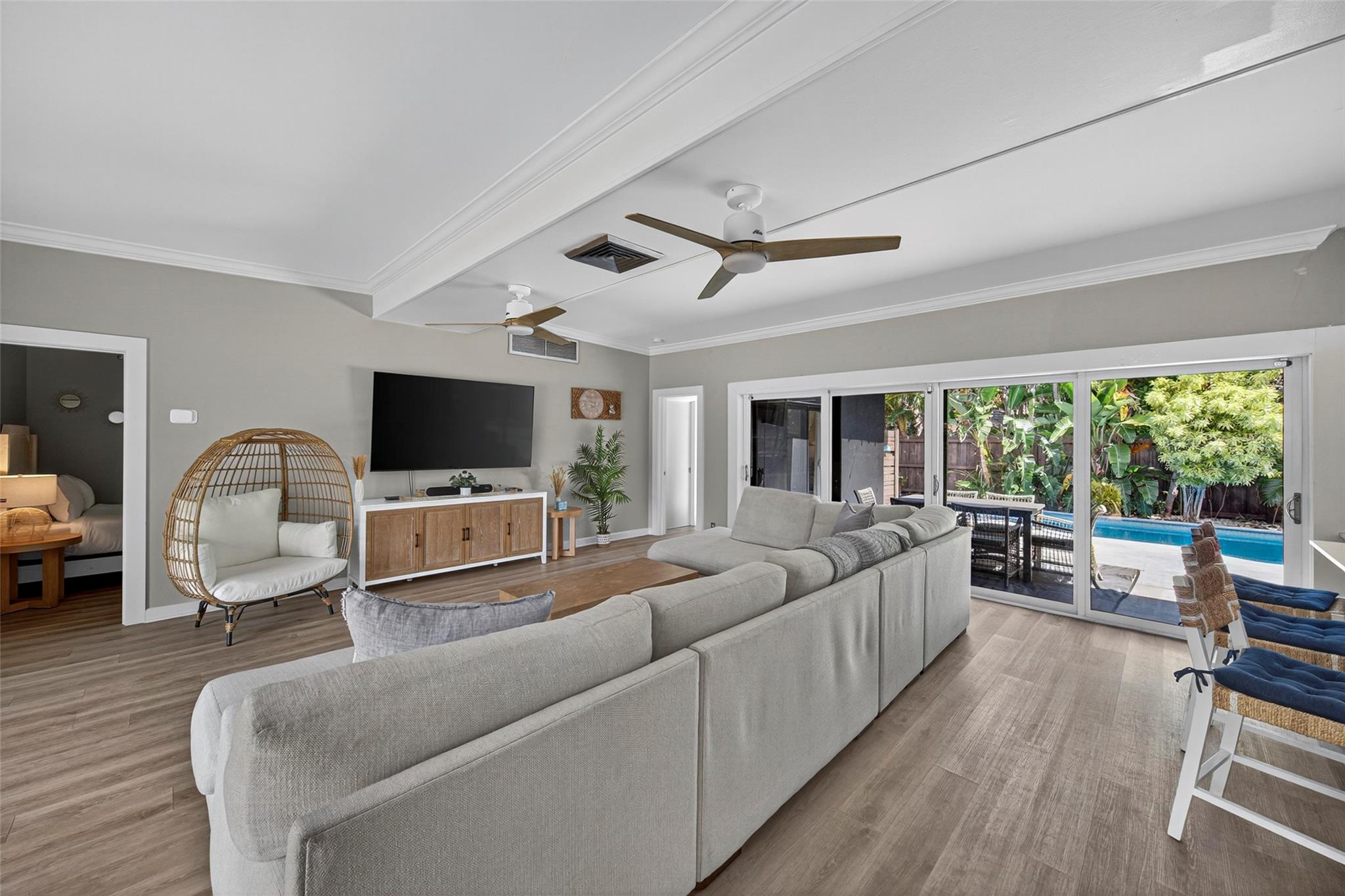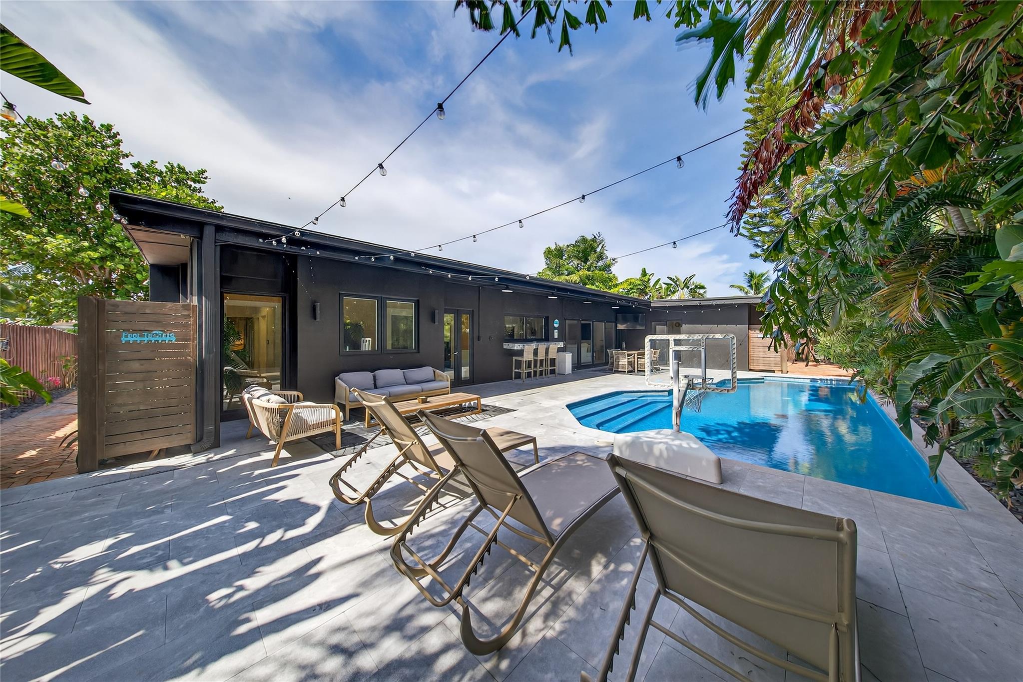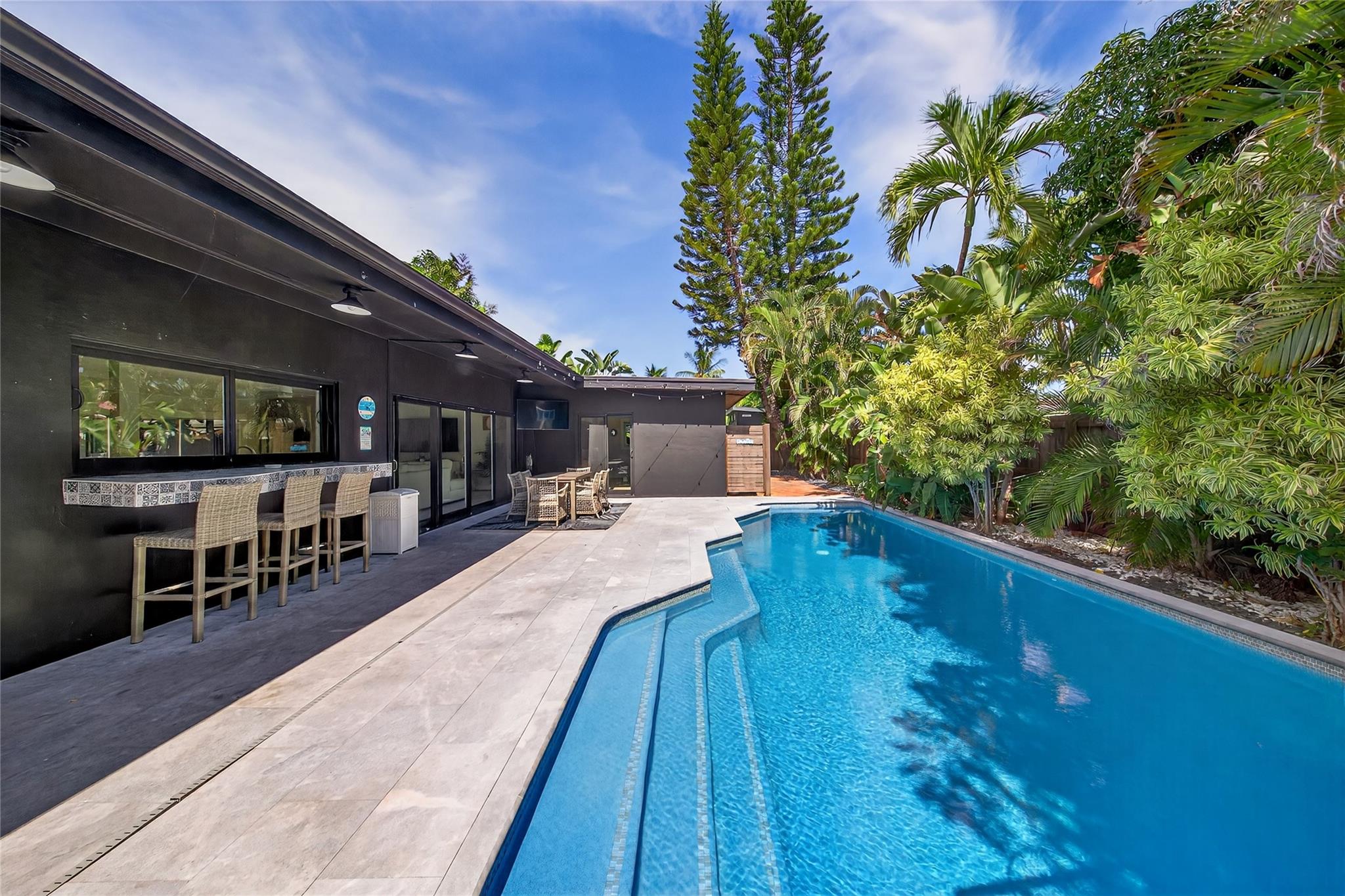 Perched on a ridge and surrounded by lush tropical greenery, this stylish 4 bed, 3 bath Mid-Century Modern pool home sits in the desirable Harbour Inlet—just a short walk to Fort Lauderdale’s best beach! Designed for indoor-outdoor living, the home features floor-to-ceiling glass with panoramic views of the new heated pool, marble paver patio, and professionally manicured grounds! The bright, open layout includes multiple seating areas, vaulted ceilings, a central kitchen w/ pass-through to the pool area, and two spacious primary suites on opposite sides—perfect for privacy or guests. Outdoors, enjoy privacy via lush hedges & fencing, generous patio space, and storage sheds. Whether full-time living or a vacation escape, this home offers the ideal blend of style, comfort, and location!