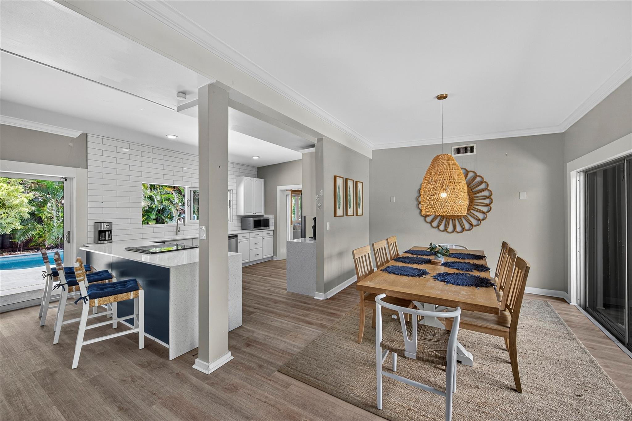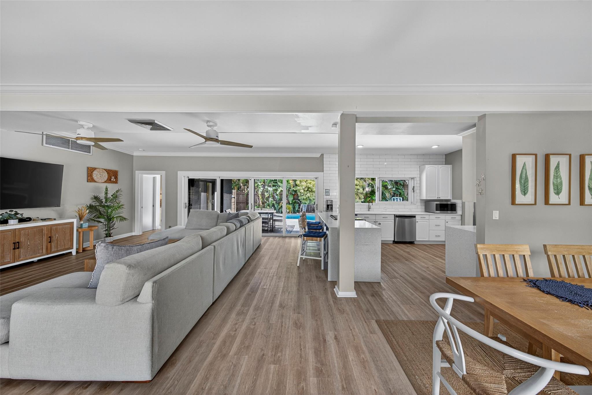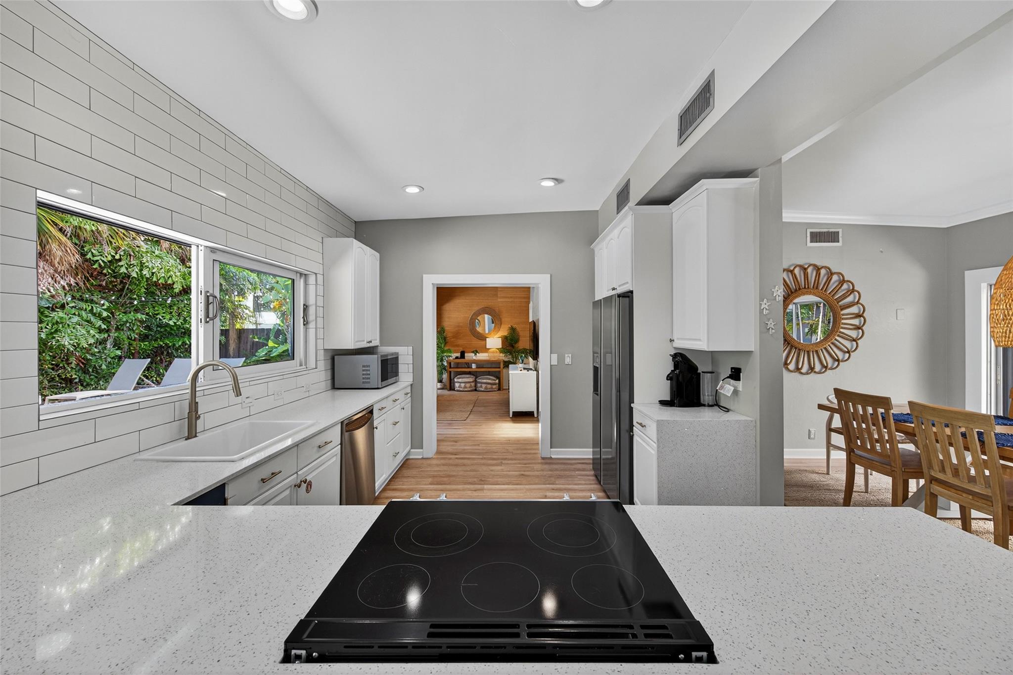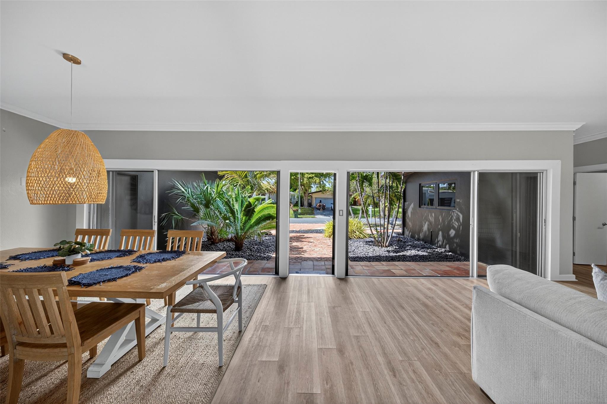 Perched on a ridge and surrounded by lush tropical greenery, this stylish 4 bed, 3 bath Mid-Century Modern pool home sits in the desirable Harbour Inlet—just a short walk to Fort Lauderdale’s best beach! Designed for indoor-outdoor living, the home features floor-to-ceiling glass with panoramic views of the new heated pool, marble paver patio, and professionally manicured grounds! The bright, open layout includes multiple seating areas, vaulted ceilings, a central kitchen w/ pass-through to the pool area, and two spacious primary suites on opposite sides—perfect for privacy or guests. Outdoors, enjoy privacy via lush hedges & fencing, generous patio space, and storage sheds. Whether full-time living or a vacation escape, this home offers the ideal blend of style, comfort, and location!