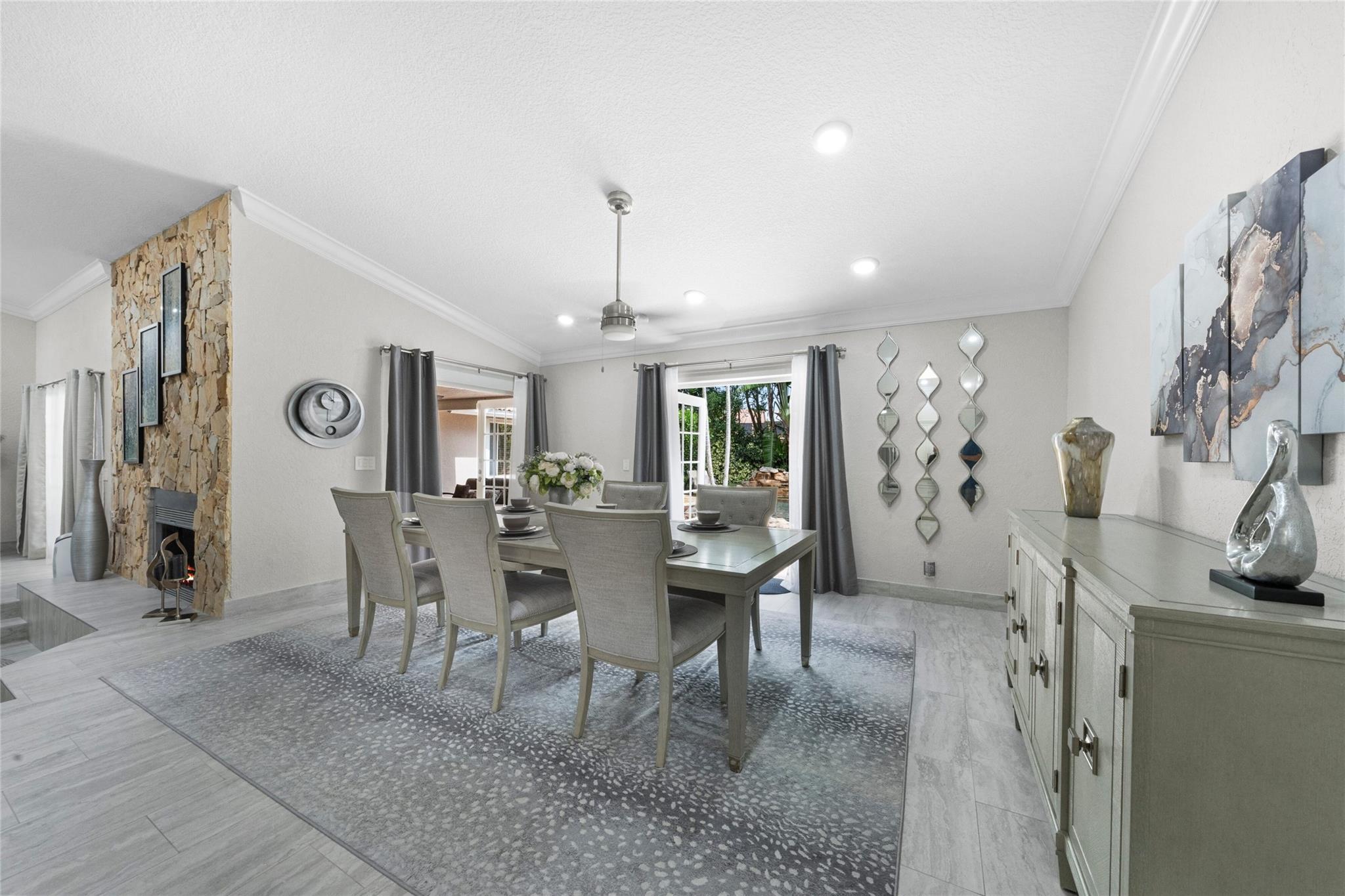 This is the home you've been waiting for...and it was worth the wait! Stunning from the inside out and completely remodeled, this 5BR, 2.5BA "smart" home offers: an open & airy floorplan w/dramatic vaulted ceilings; wood-burning fireplace; porcelain plank tile; stunning new kitchen w/white cabinets, quartz countertops and newer stainless steel appliances; crown molding; plantation shutters; fully renovated bathrooms; custom closets; new interior doors; newer a/c; new a/c ducts, antimicrobial coating & UV antibacterial light; new solar hot water heater; free-form, solar heated pool w/2 waterfalls, tanning ledges & dark blue Pebble Tec pool finish (salt system); wrap-around flagstone patio deck; accordion hurricane shutters (one impact window); an oversized and private backyard...and more!