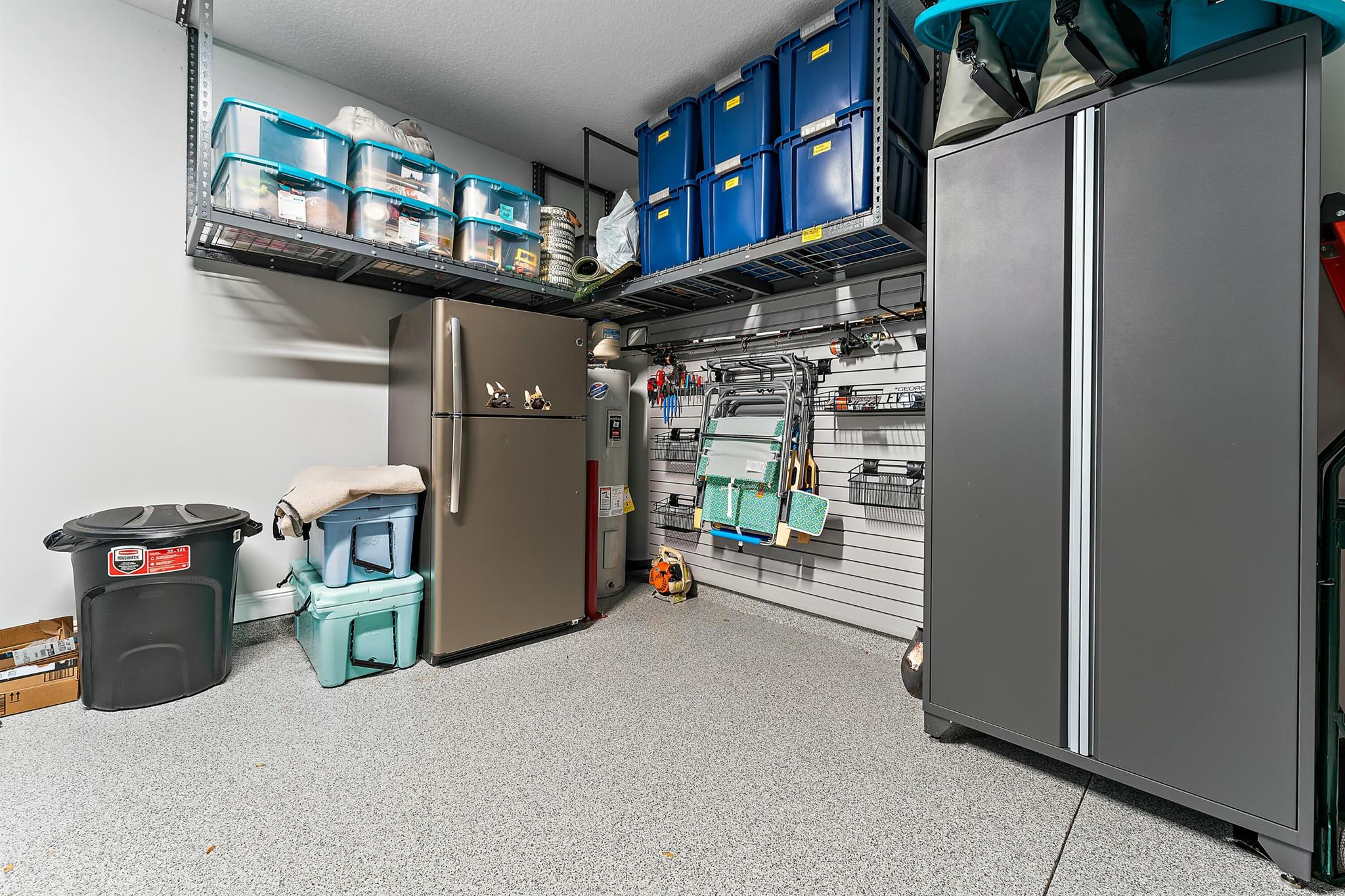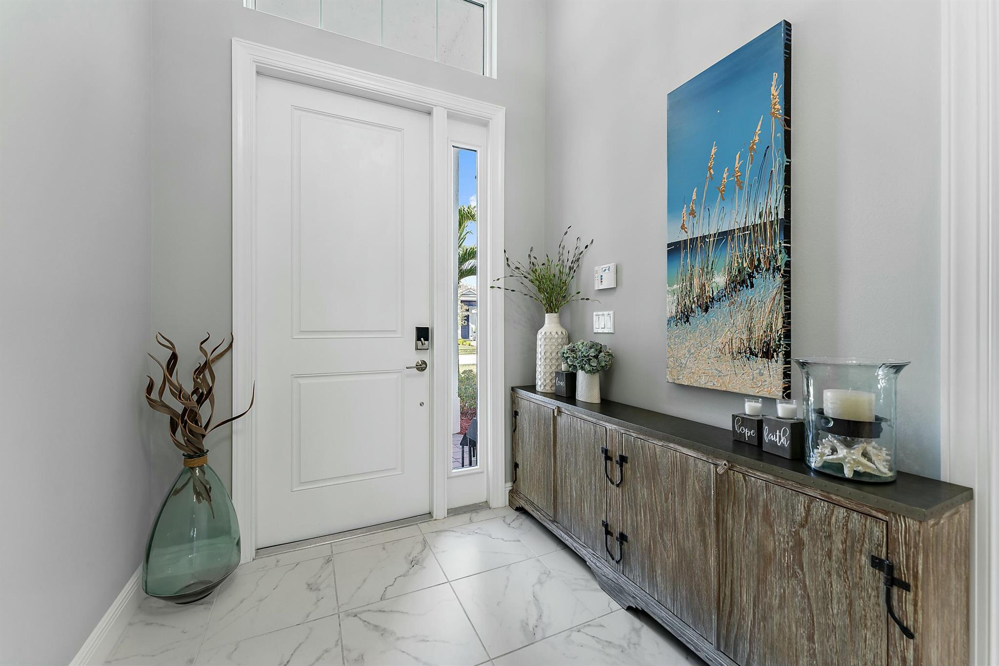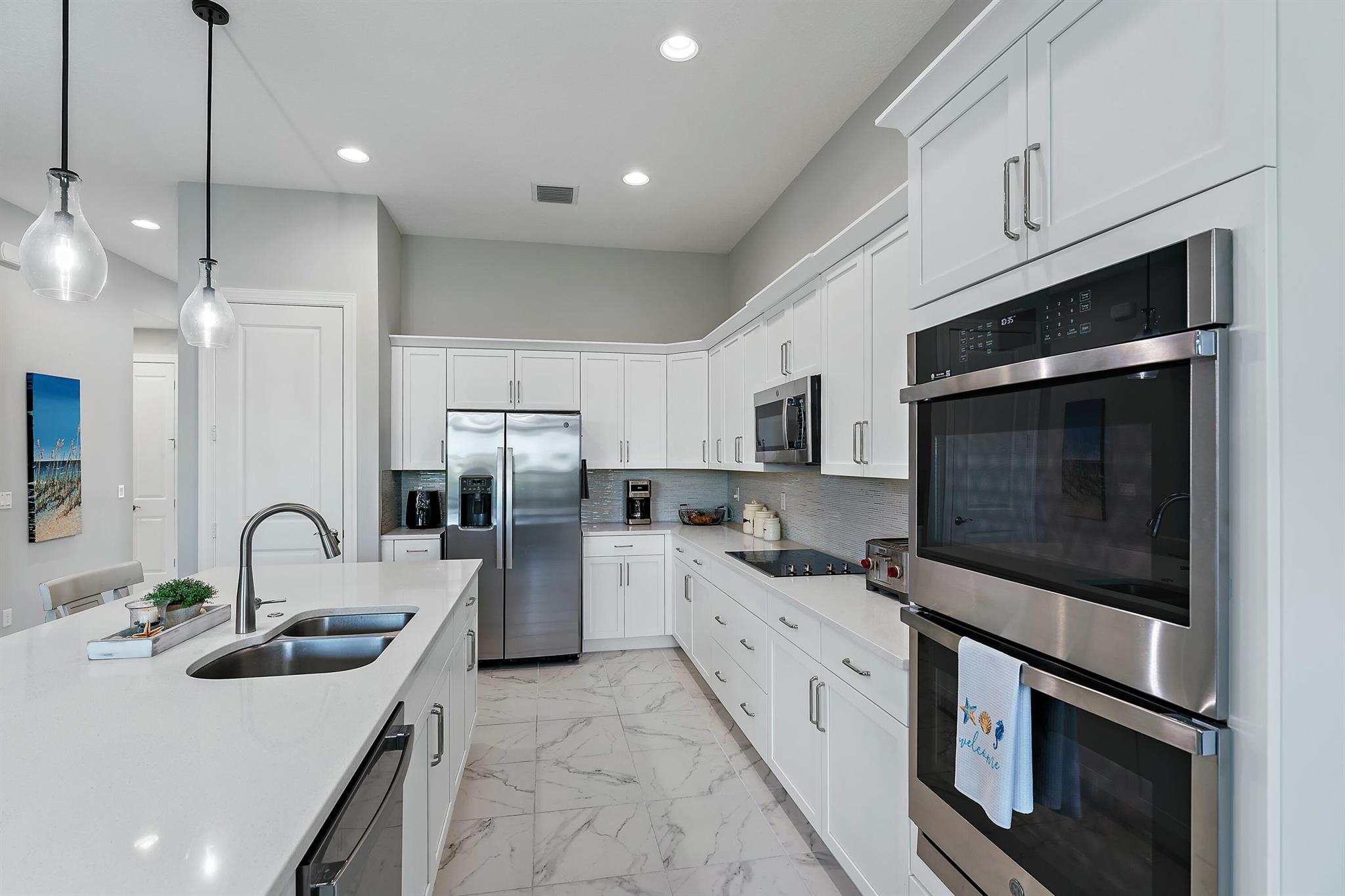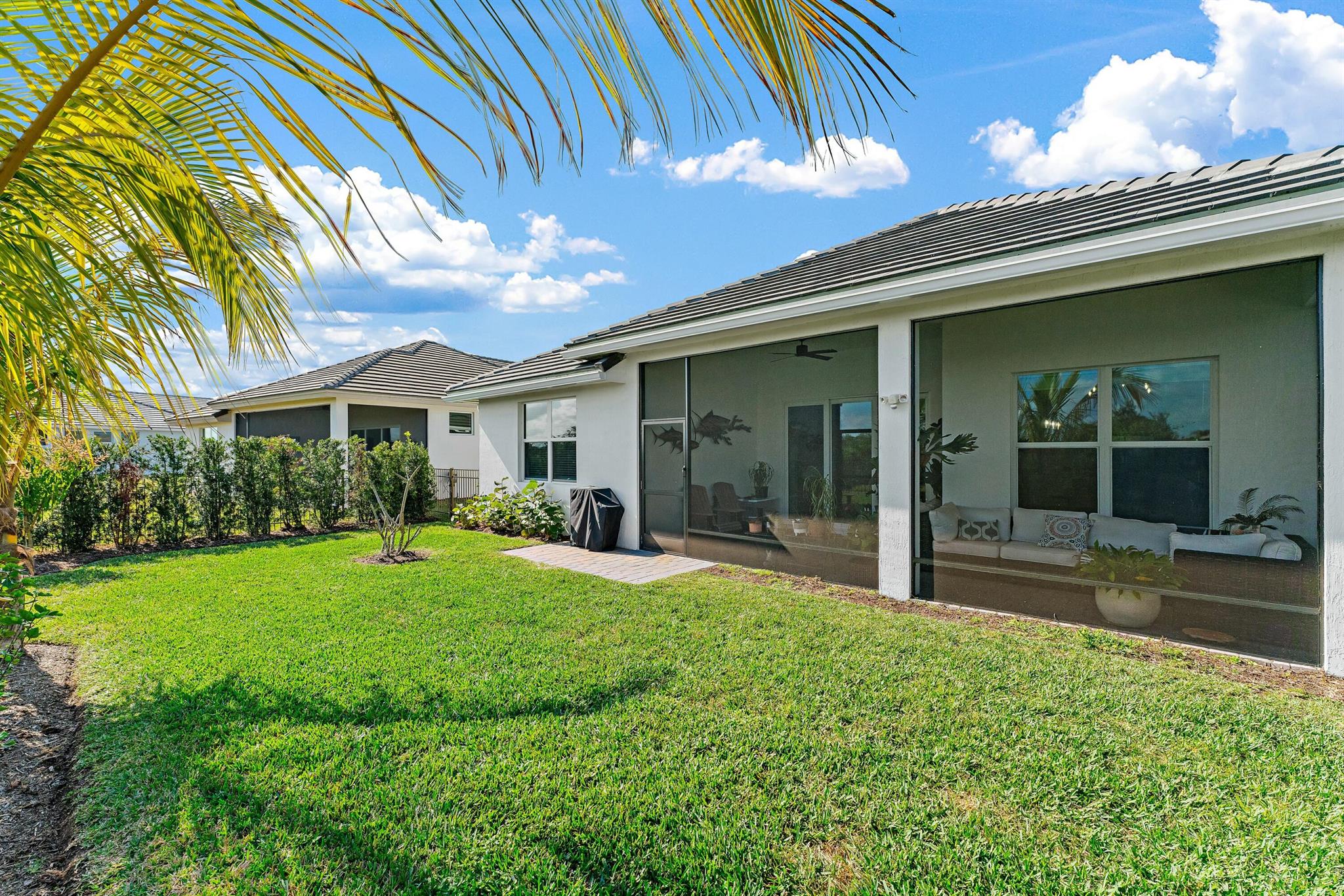 WOW - Just Reduced 15k - Beautiful 3 bed/2 bath 2024 home is a coastal dream! Chef's kitchen boasts quartz countertops, S/S appliances, & ample storage space. Spacious dining & living areas. Oversized owner's suite features his & hers closets & a spa-like bathroom with a walk-in shower. The fenced-in backyard includes a screened-in lanai, upgraded landscaping, & plenty of room for a pool. Additional features include all new ceiling fans, light fixtures, gutters, epoxy flooring & custom shelving in garage. Lake Park is a 55+ community in Tradition, amenities include gated entrance, pool, 2 social clubhouses, fitness center, & dog parks. Skip the hassle of new construction and make this exceptional residence yours! This is the Best Deal in Town Park!!