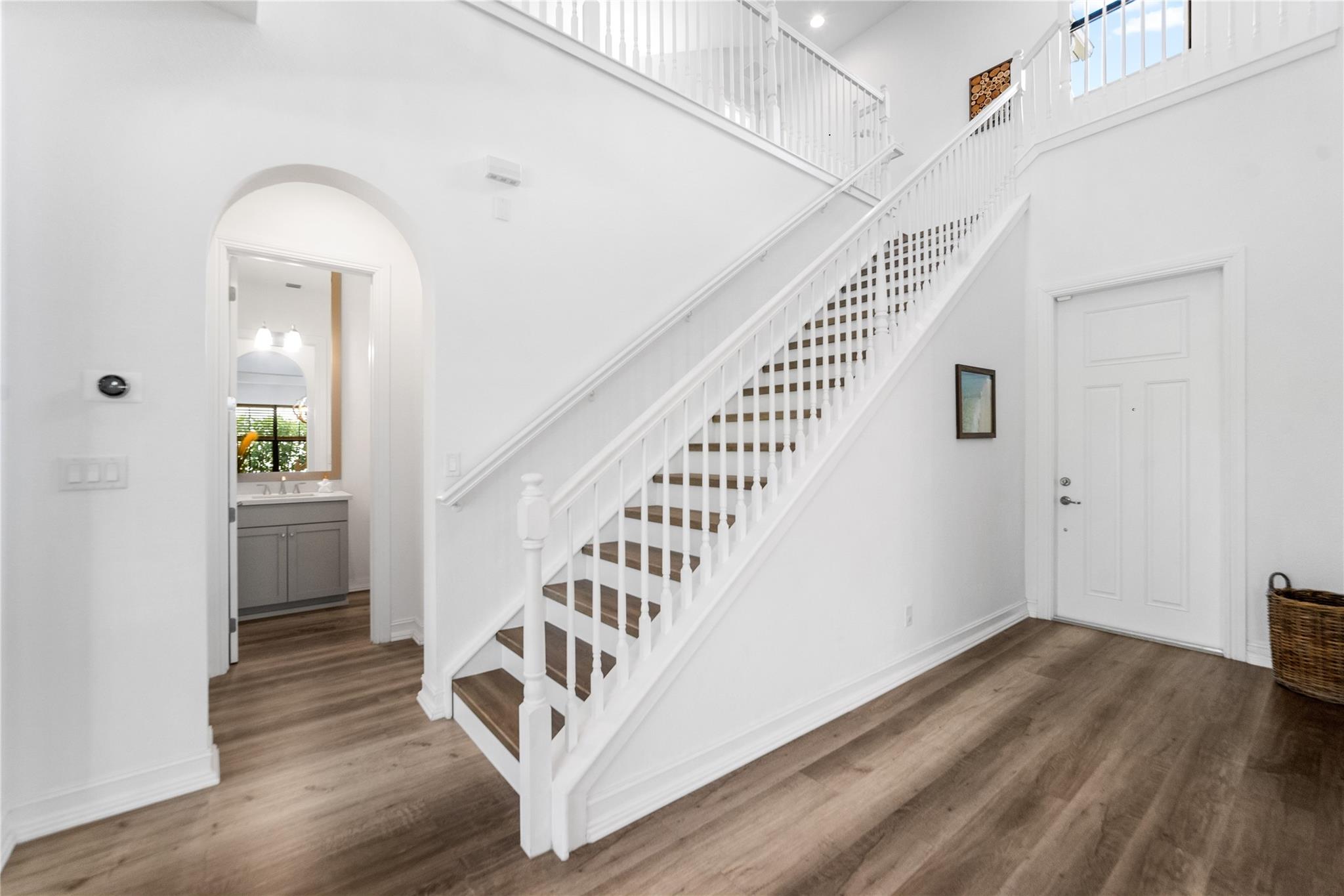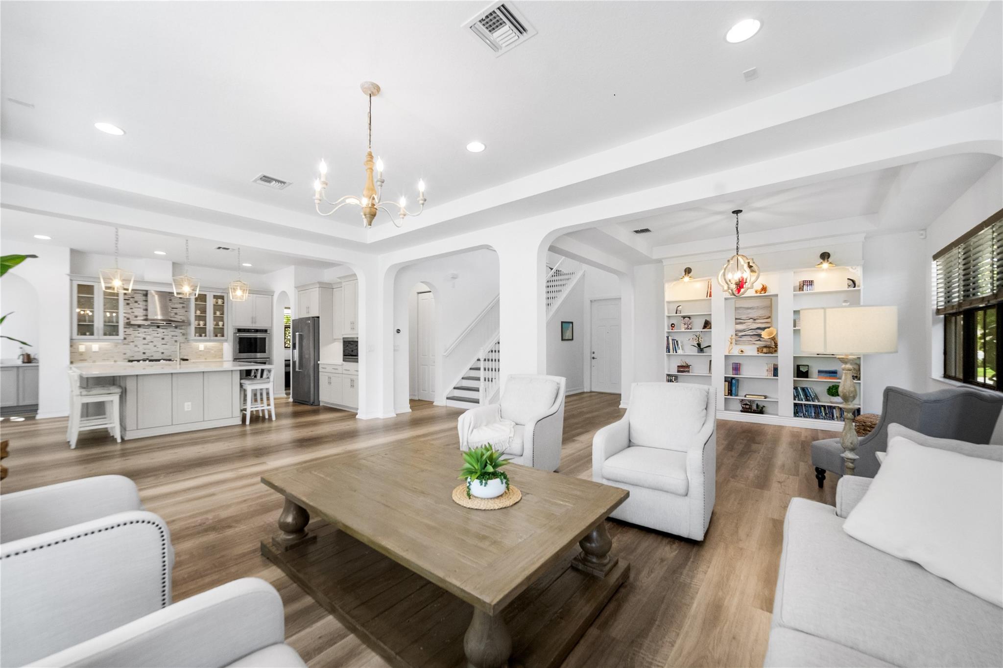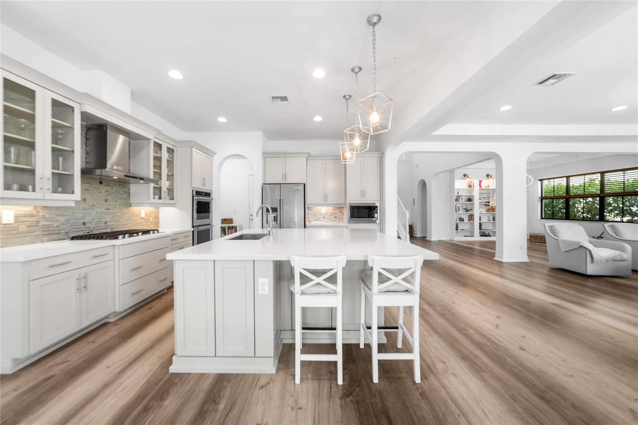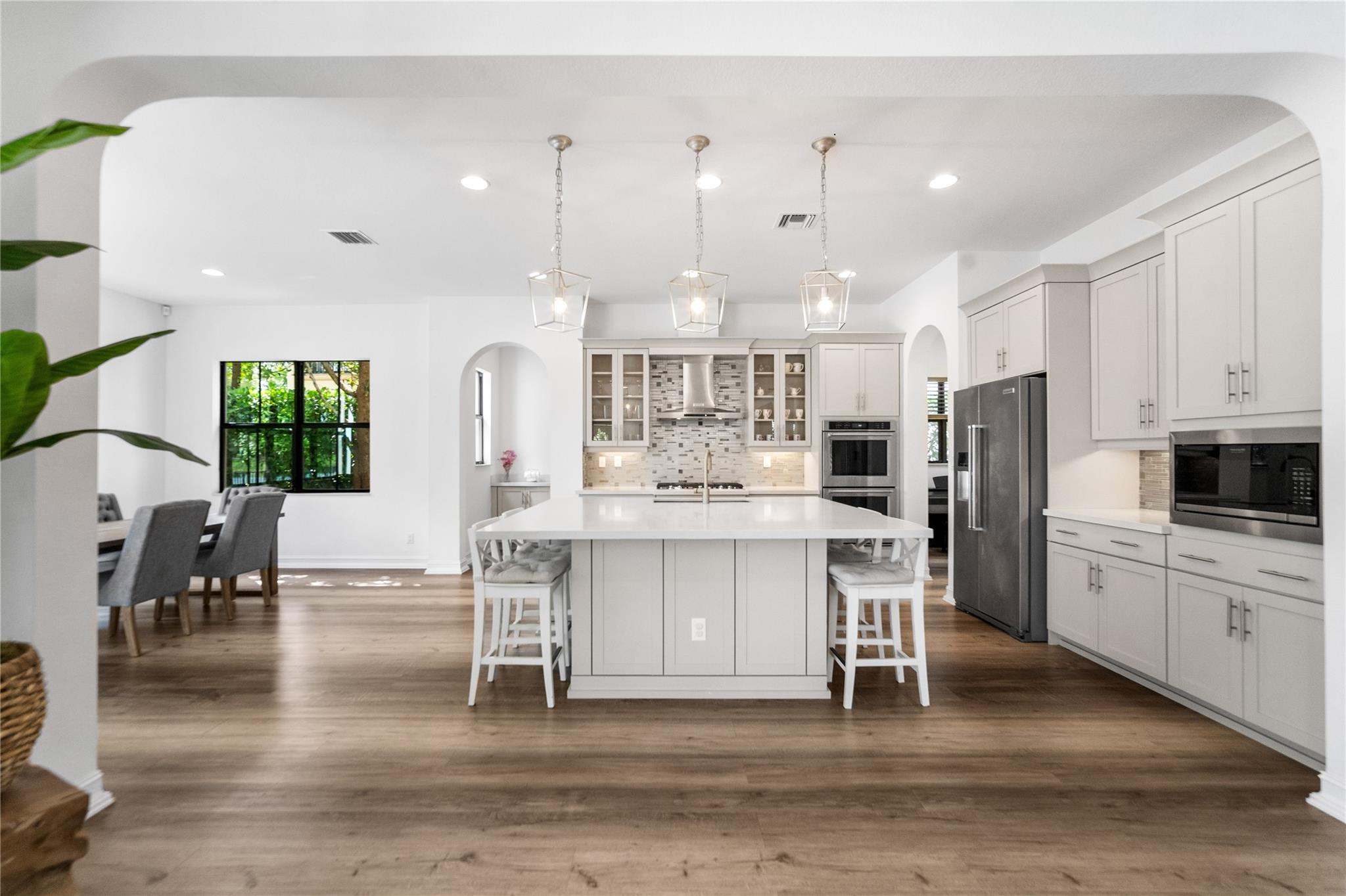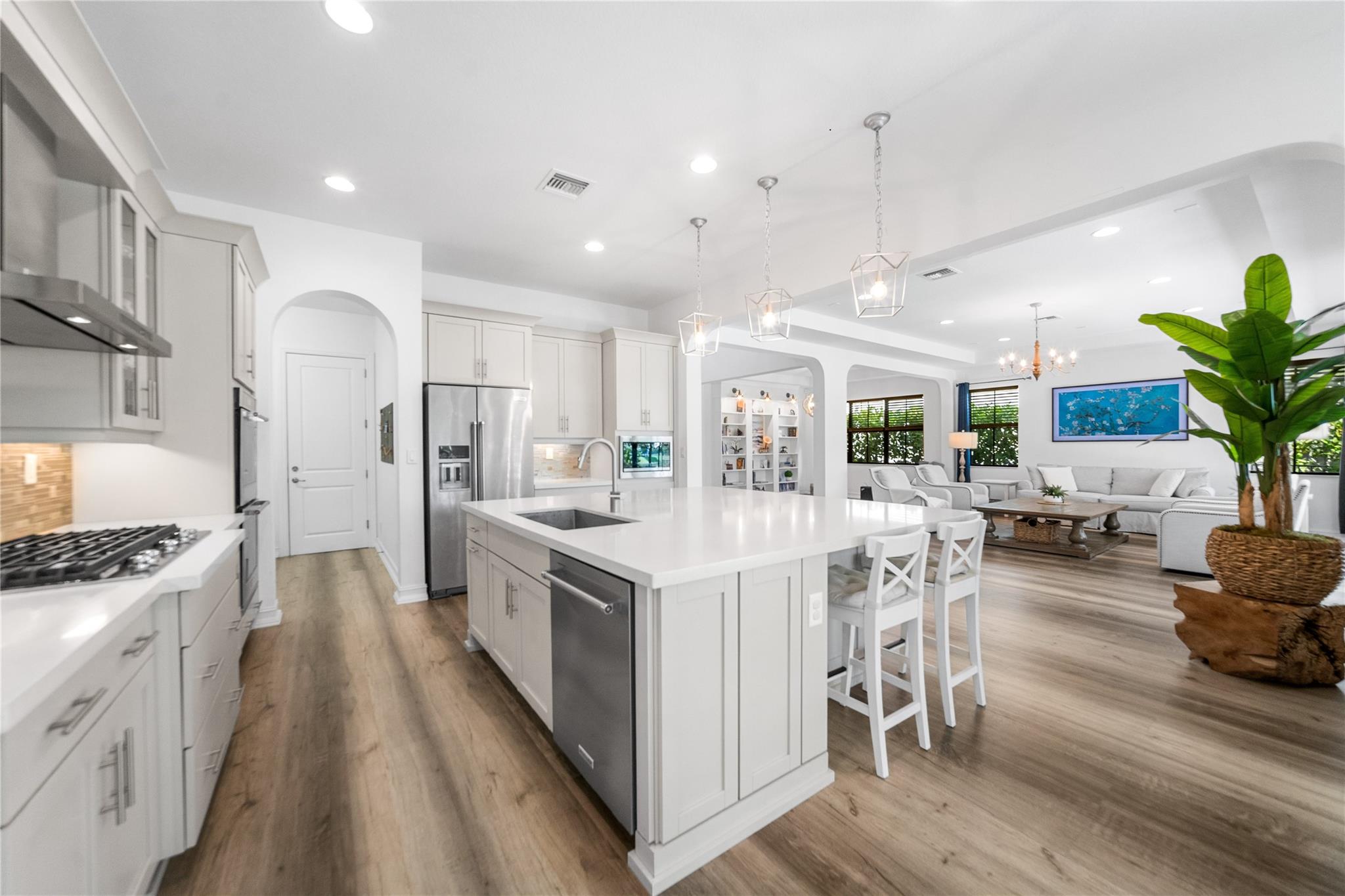 Former Builder Ashby Expanded Builder Model w/Over $117K In Improvements, 5 Full Beds + Loft, 4.5 Baths Waterfront Home w/3-Car Garage! Turnkey Dream Home w/Approx 4,000 SqFt Under Living, Open Floor Plan w/Luxury Vinyl Plan Flooring Throughout 1st & 2nd Floors, Gorgeous Large Chef's Updated Kitchen w/Quartz Counters & Huge Island, Updated KitchenAid Appliances, Double Oven, Newer Light Fixtures & Pendants, Full Bed & On-Suite Bath Downstairs Ideal For In-Law's Or Guests, Primary Bed Upstairs, Walk-In Closets, Spacious Primary Bath w/Separate Tub & Shower, Dual Sinks, Another Full Bed & On-Suite Bath Upstairs, Grand Loft Area Ideal For Your Children! Expanded Pavered Patio w/Fenced In-Yard Perfect For The Entire Family, Resort-Style Clubhouse Amenities, 24-Hour Guard Gated, & A+ Schools.