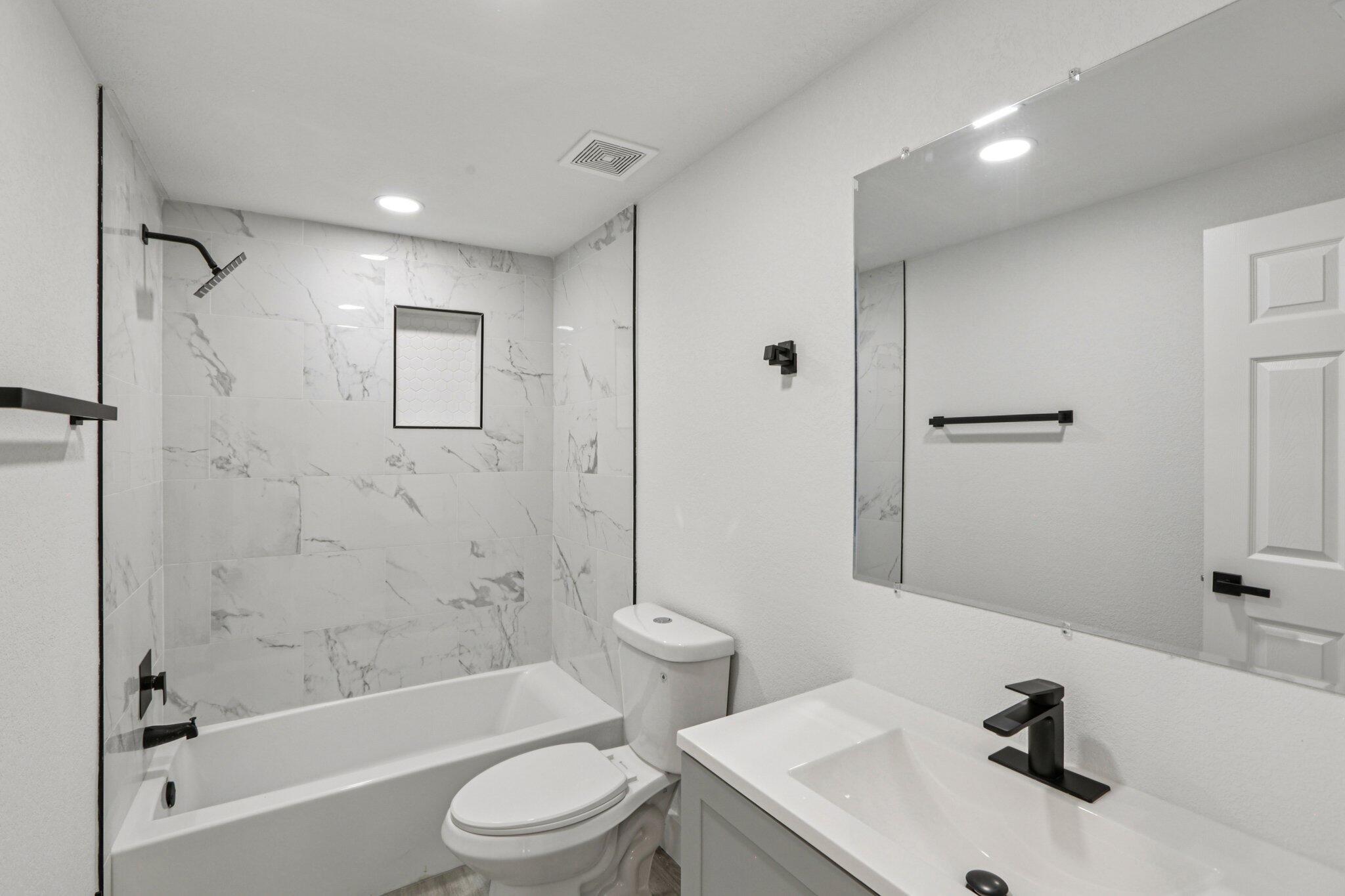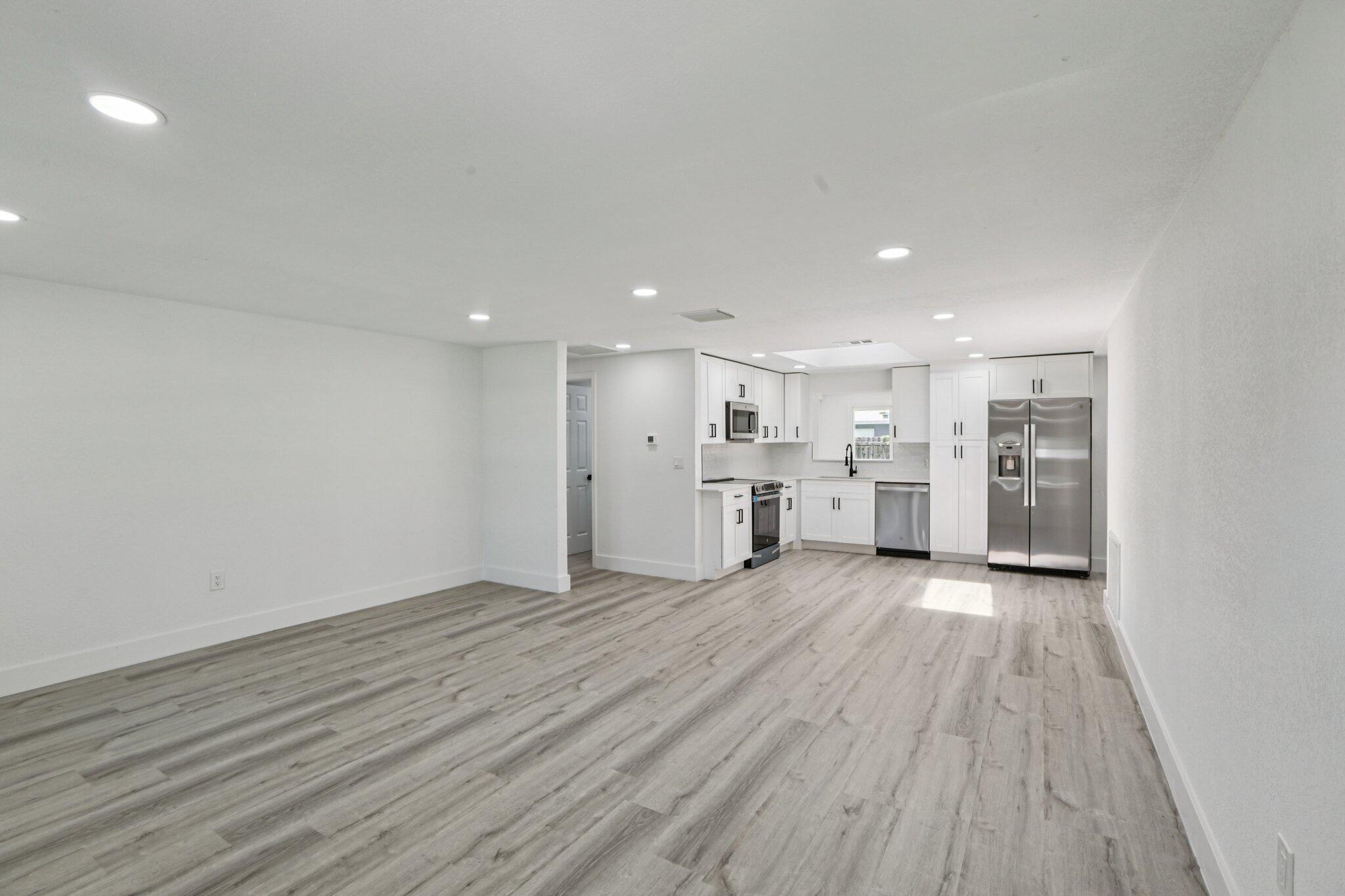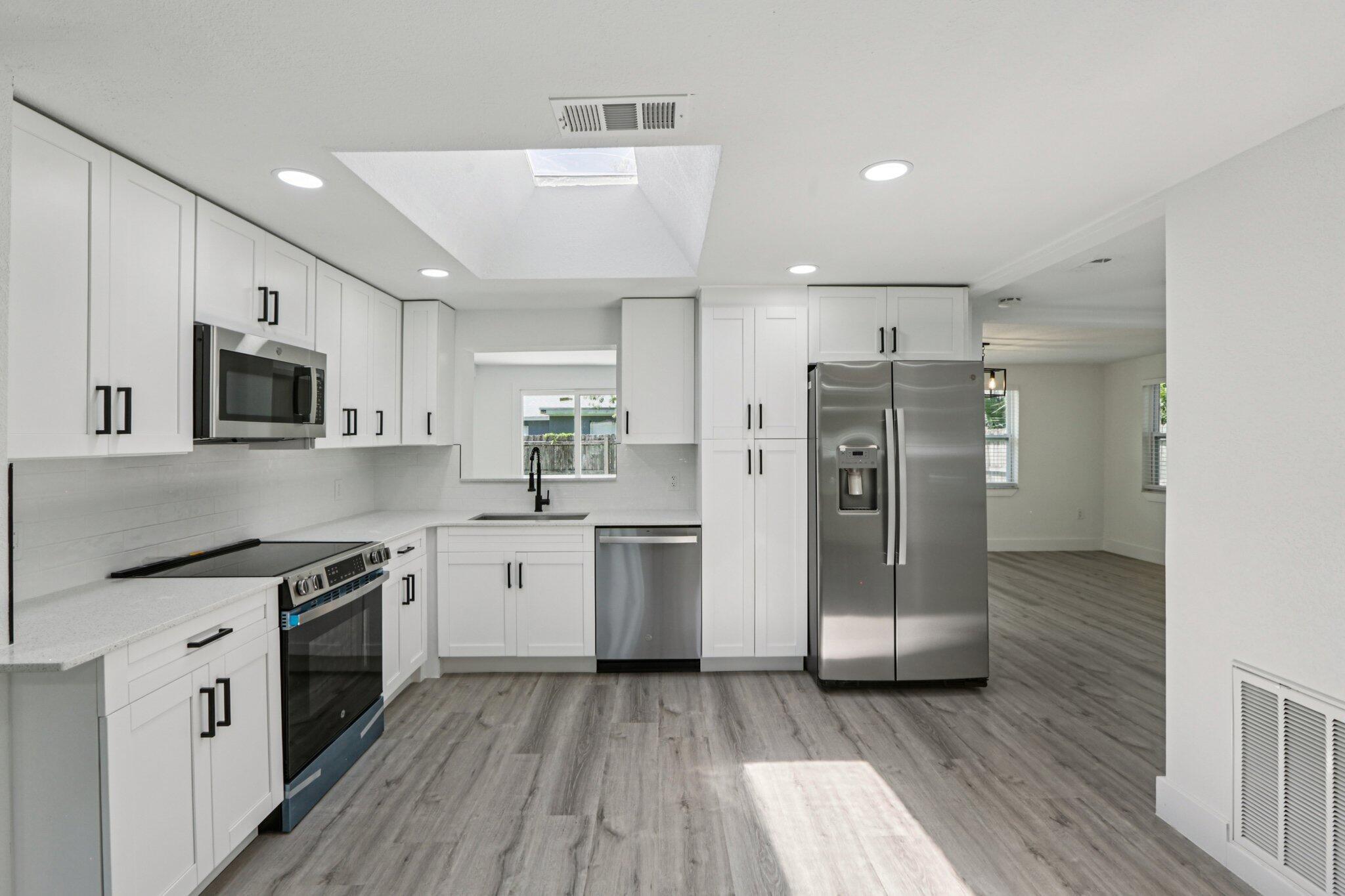 This home is ready for a new chapter with complete renovations throughout! Beautiful new kitchen featuring quartz countertops, new bathrooms with ceramic tile showers, completely new HVAC system, new electrical throughout, new windows, flooring, doors and trim throughout. This is a brand new house! There are brand new stainless steel appliances in the kitchen, as well as new and stylish washer and dryer laundry combo in a separate area in the garage. The home features a large living room, separate dining room, and nook area perfect for an office. Also, the property has a new privacy fence installed.