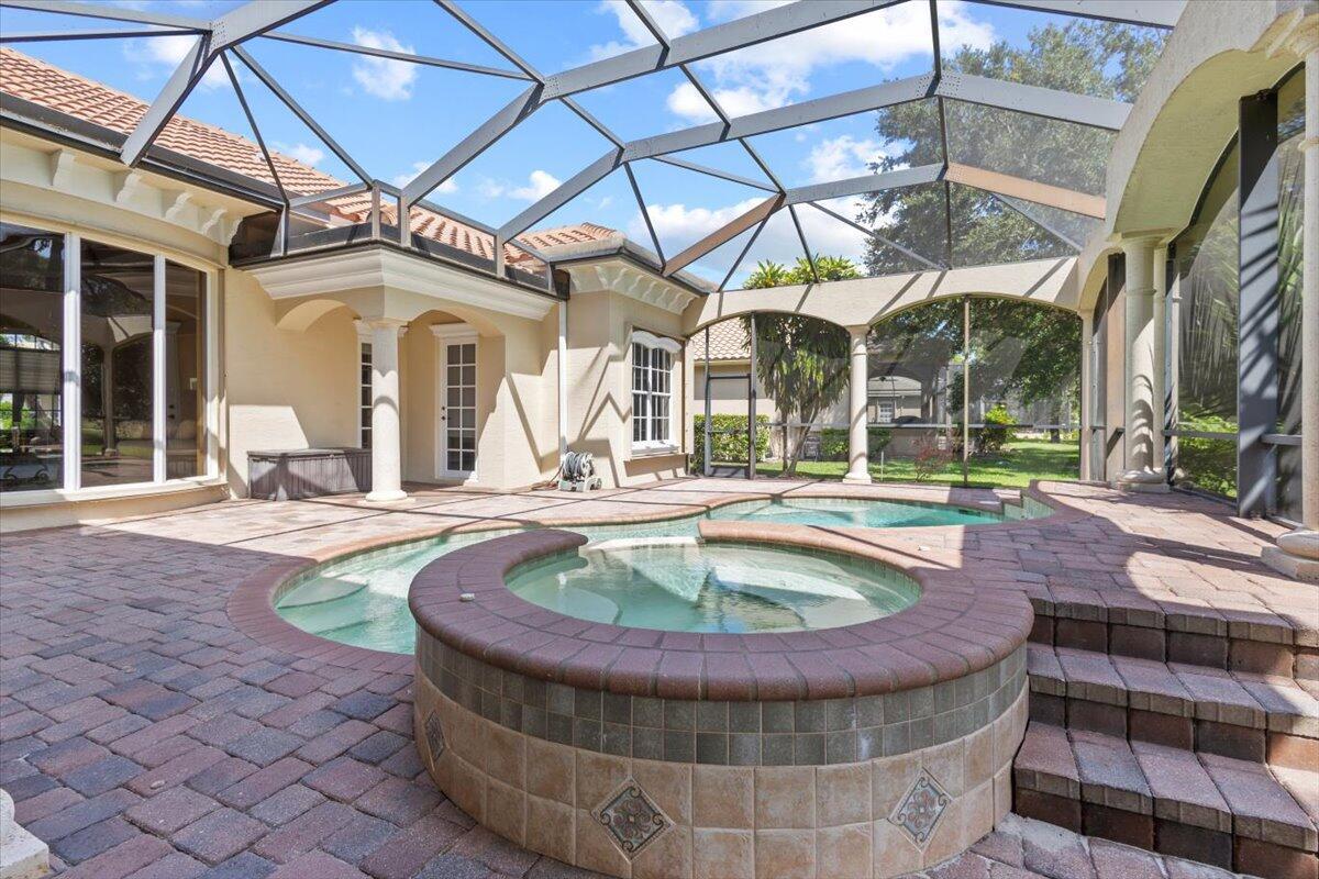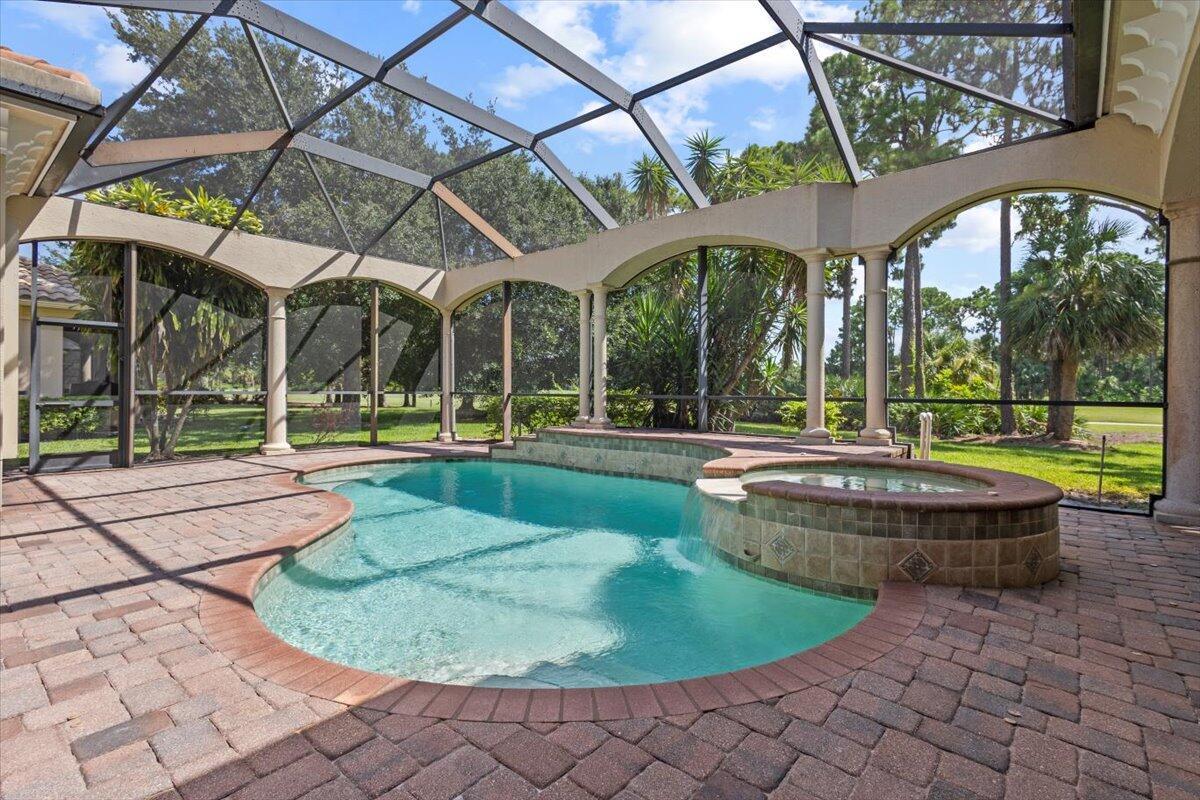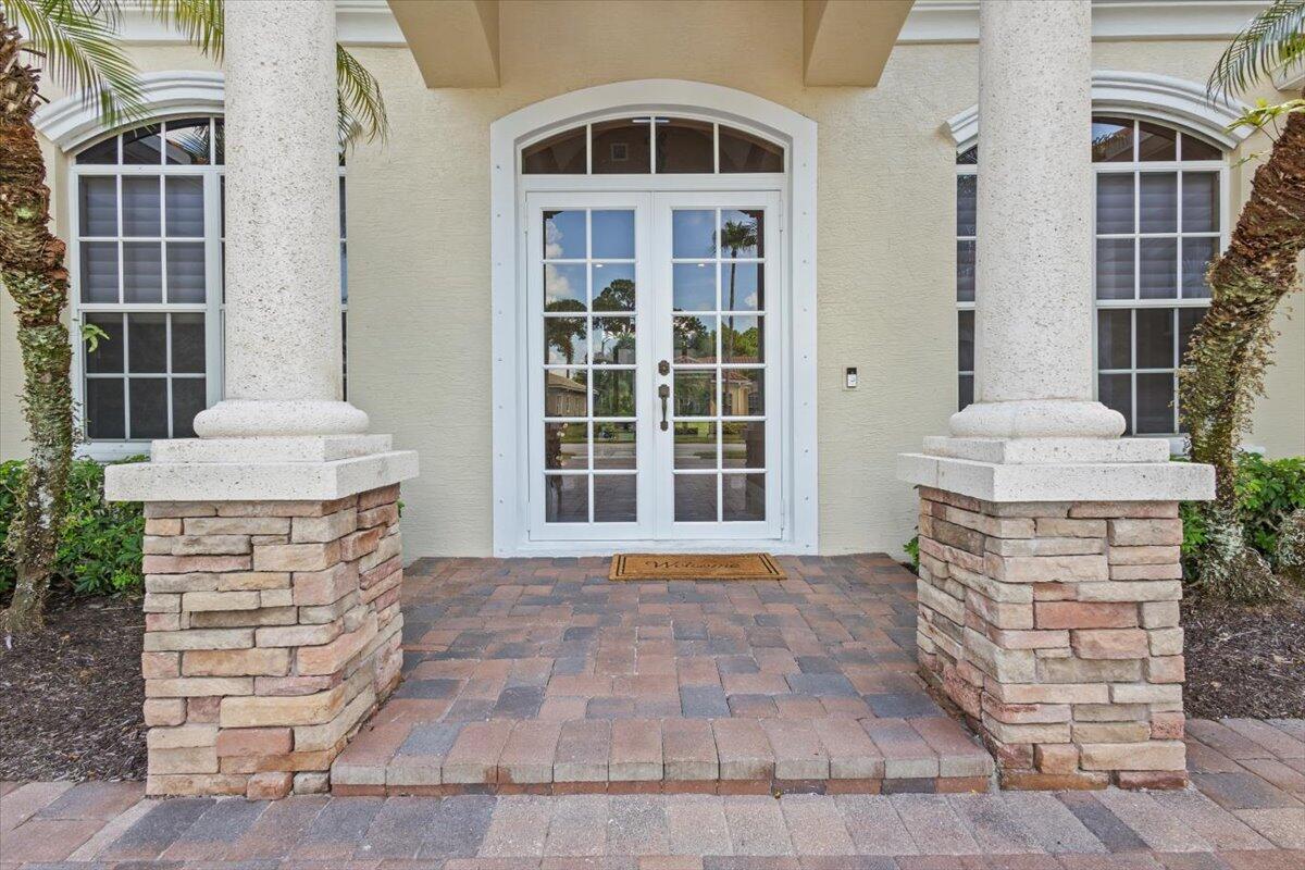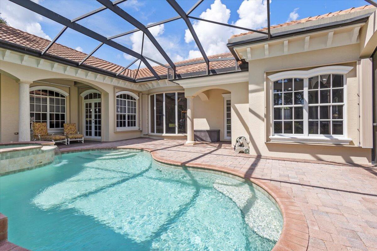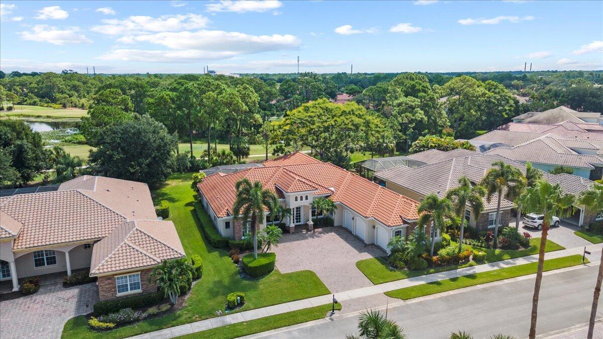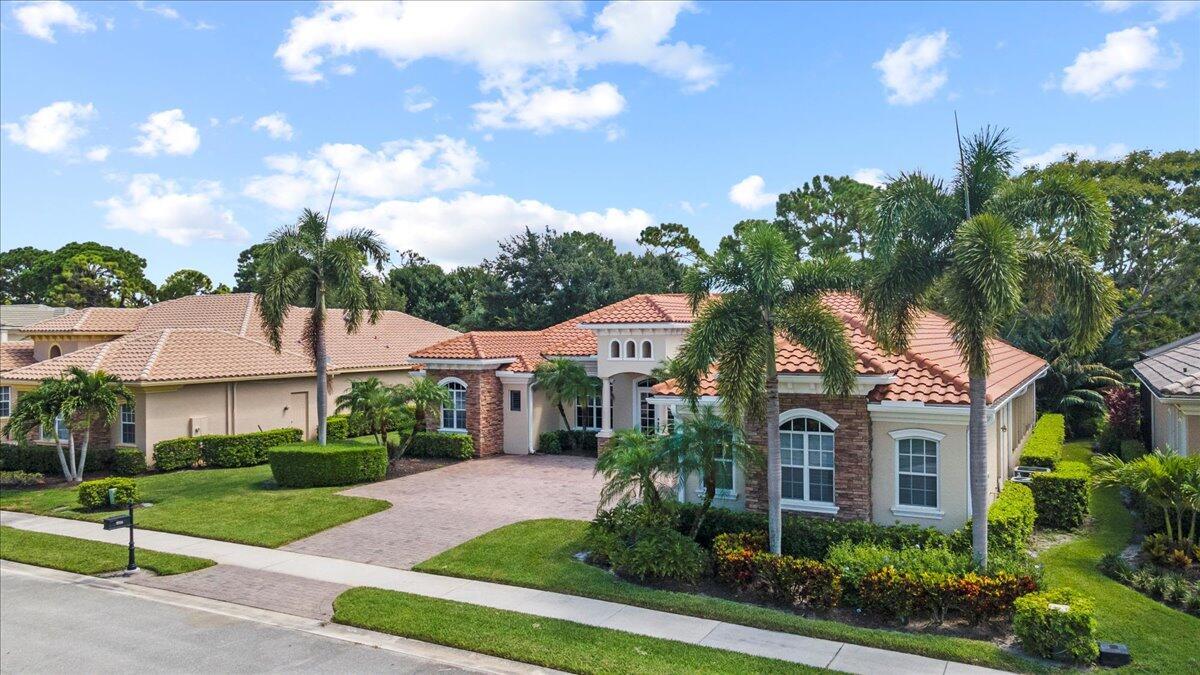 Gorgeous ''Cambridge model at ''Scarborough'' in PGA Village on the 6th hole of the Legacy Golf Course exceptional scenic golf & lake views! This pool home features fabulous curb appeal, grand entrance, stone finish, CBS Construction & New Barrel tile roof in 2019. Hosts 4 BR's, 4 BA's, Den/Office & 3 CG. Details include Volume & Custom tray ceilings, tile flooring, split floor plan & crown molding. Beautiful Gourmet eat in Kitchen boasts large island, breakfast bar, wall oven, gas range, granite counter tops, tile backsplash & walk in pantry. Off the kitchen enjoy a butlers pantry perfect for setting up your coffee bar or cocktails. Grand Master Suite w/sitting area, walk in closets & stunning updated MB with Victoria Albert soaking tub, separate shower, dual sinks, toilet & bidet.