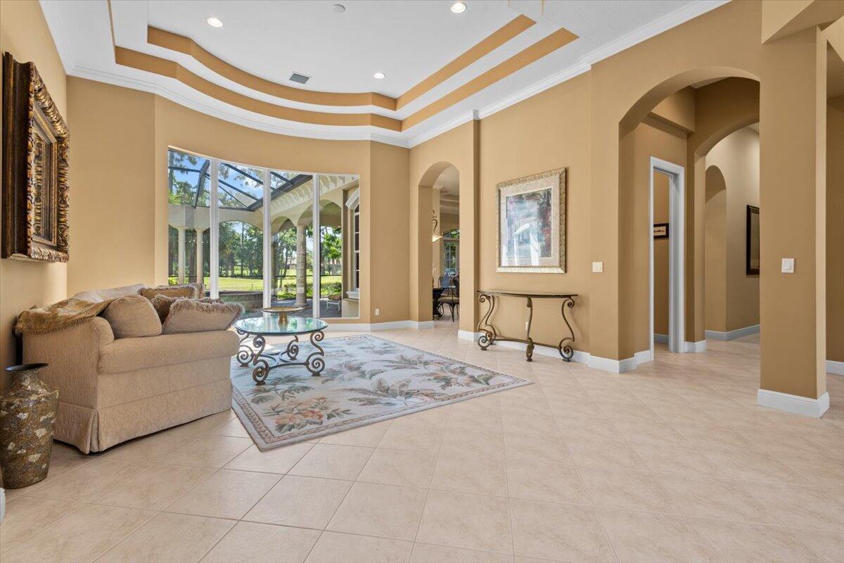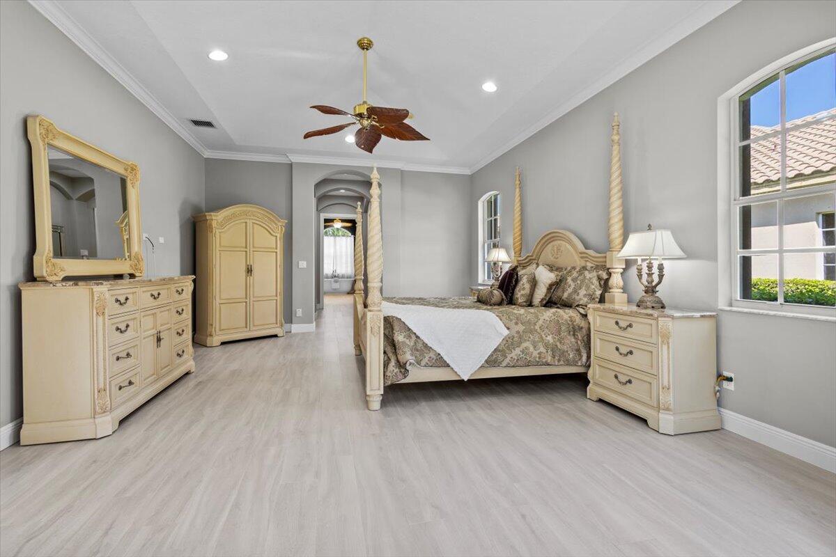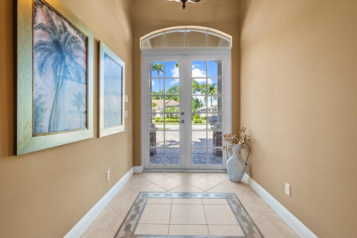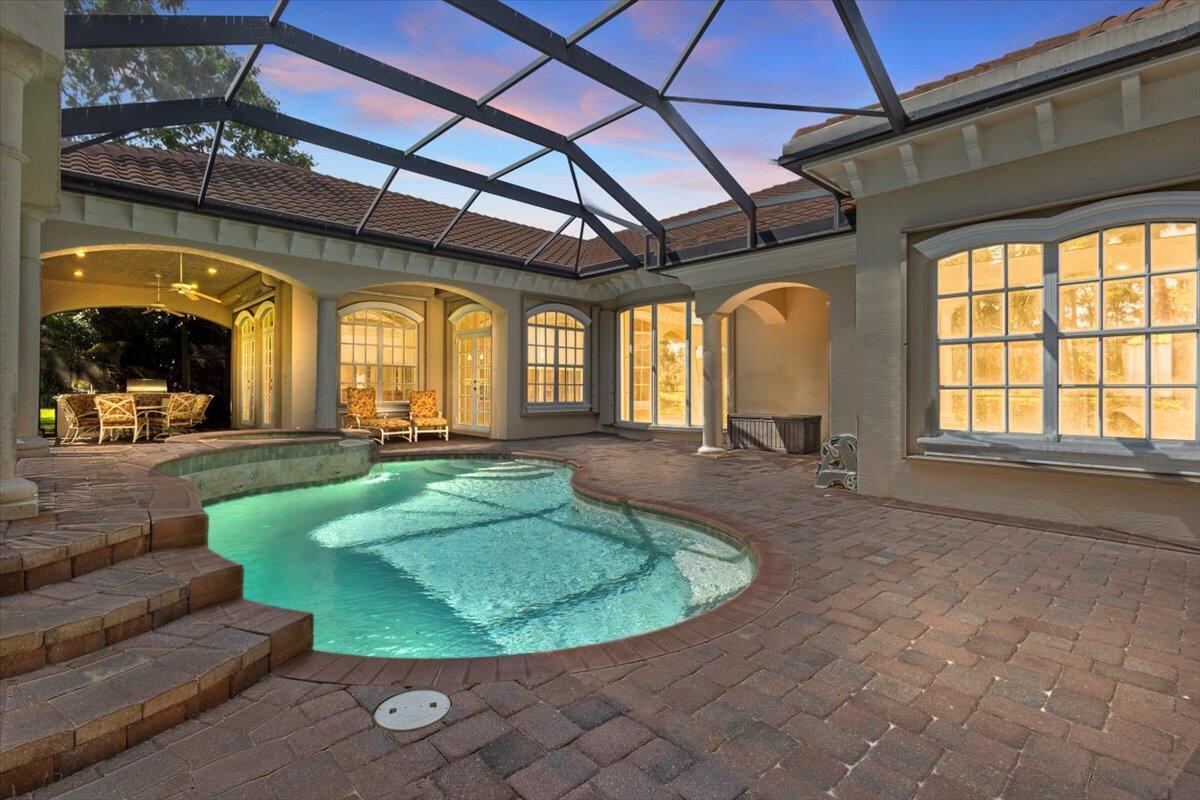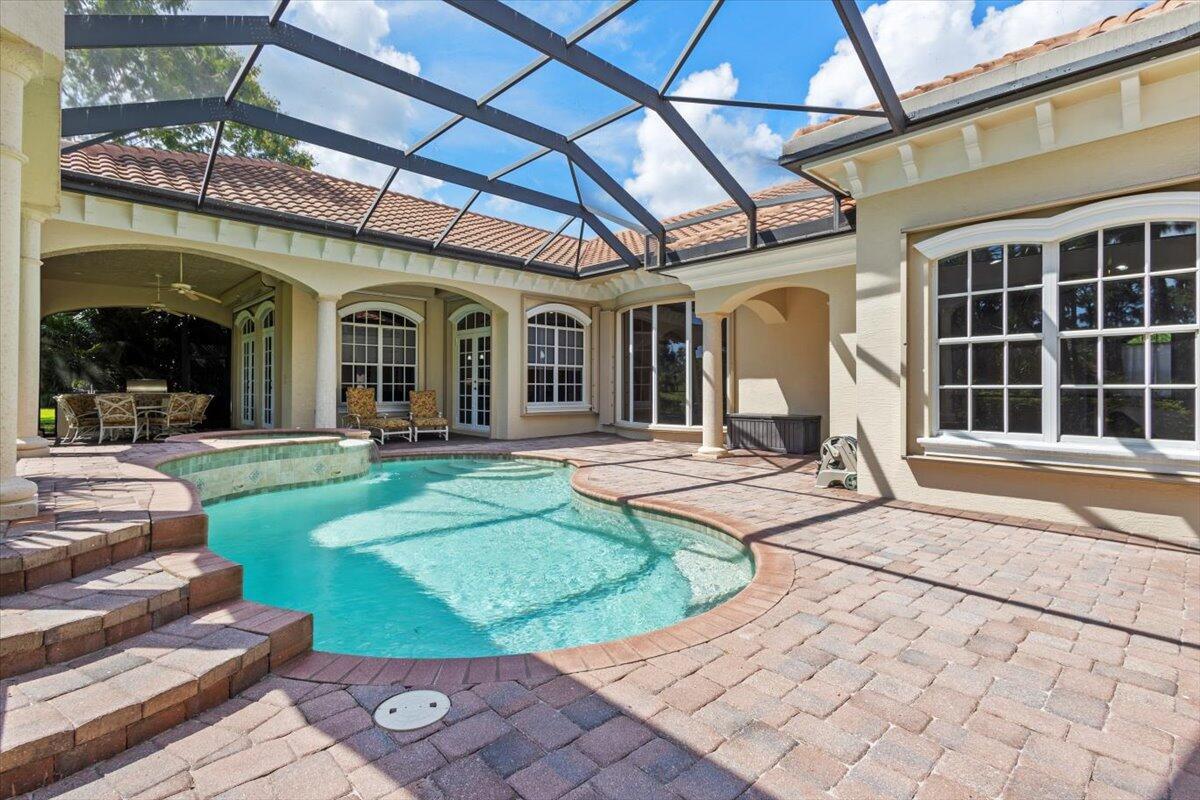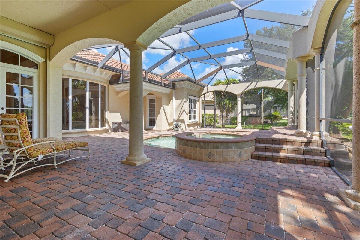 Gorgeous ''Cambridge model at ''Scarborough'' in PGA Village on the 6th hole of the Legacy Golf Course exceptional scenic golf & lake views! This pool home features fabulous curb appeal, grand entrance, stone finish, CBS Construction & New Barrel tile roof in 2019. Hosts 4 BR's, 4 BA's, Den/Office & 3 CG. Details include Volume & Custom tray ceilings, tile flooring, split floor plan & crown molding. Beautiful Gourmet eat in Kitchen boasts large island, breakfast bar, wall oven, gas range, granite counter tops, tile backsplash & walk in pantry. Off the kitchen enjoy a butlers pantry perfect for setting up your coffee bar or cocktails. Grand Master Suite w/sitting area, walk in closets & stunning updated MB with Victoria Albert soaking tub, separate shower, dual sinks, toilet & bidet.