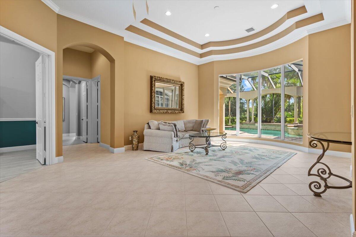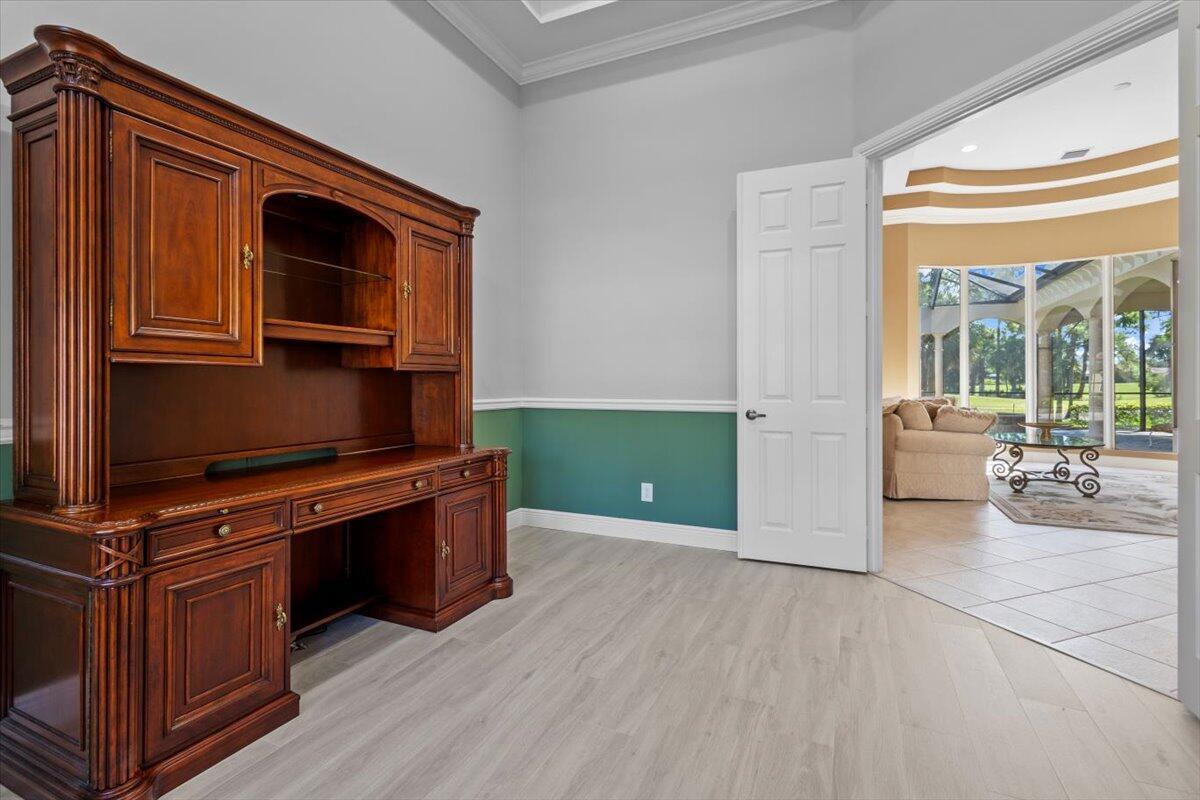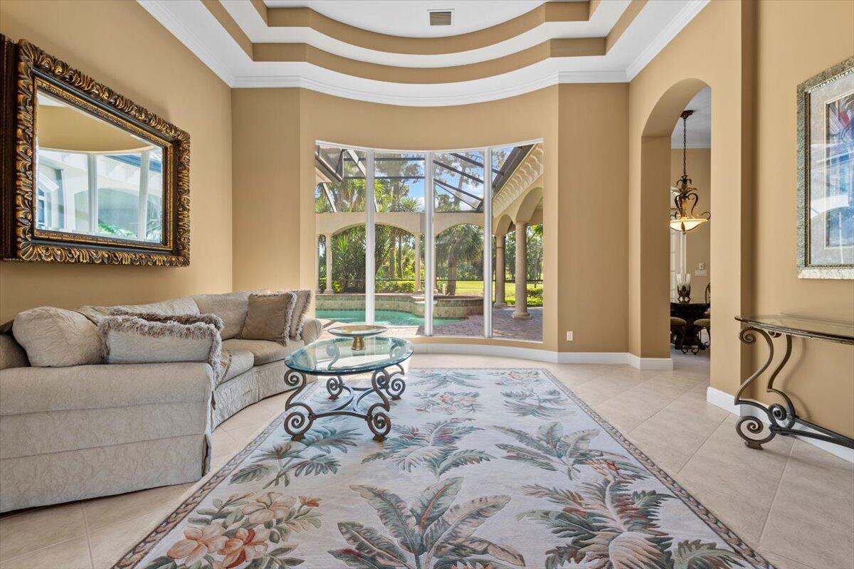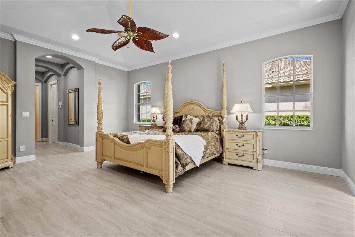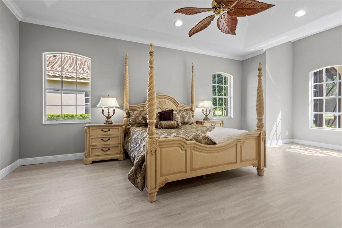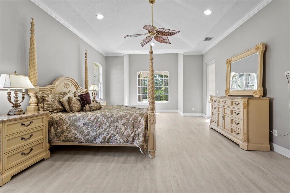 Gorgeous ''Cambridge model at ''Scarborough'' in PGA Village on the 6th hole of the Legacy Golf Course exceptional scenic golf & lake views! This pool home features fabulous curb appeal, grand entrance, stone finish, CBS Construction & New Barrel tile roof in 2019. Hosts 4 BR's, 4 BA's, Den/Office & 3 CG. Details include Volume & Custom tray ceilings, tile flooring, split floor plan & crown molding. Beautiful Gourmet eat in Kitchen boasts large island, breakfast bar, wall oven, gas range, granite counter tops, tile backsplash & walk in pantry. Off the kitchen enjoy a butlers pantry perfect for setting up your coffee bar or cocktails. Grand Master Suite w/sitting area, walk in closets & stunning updated MB with Victoria Albert soaking tub, separate shower, dual sinks, toilet & bidet.