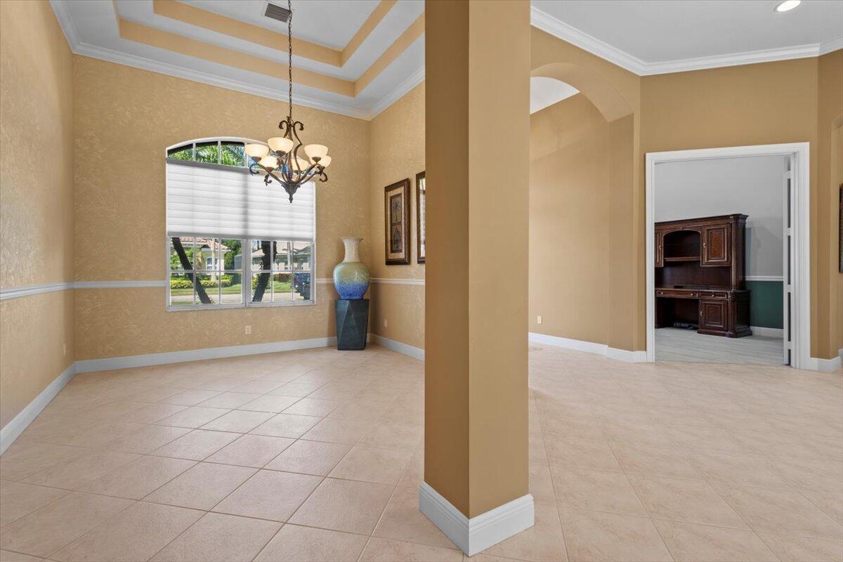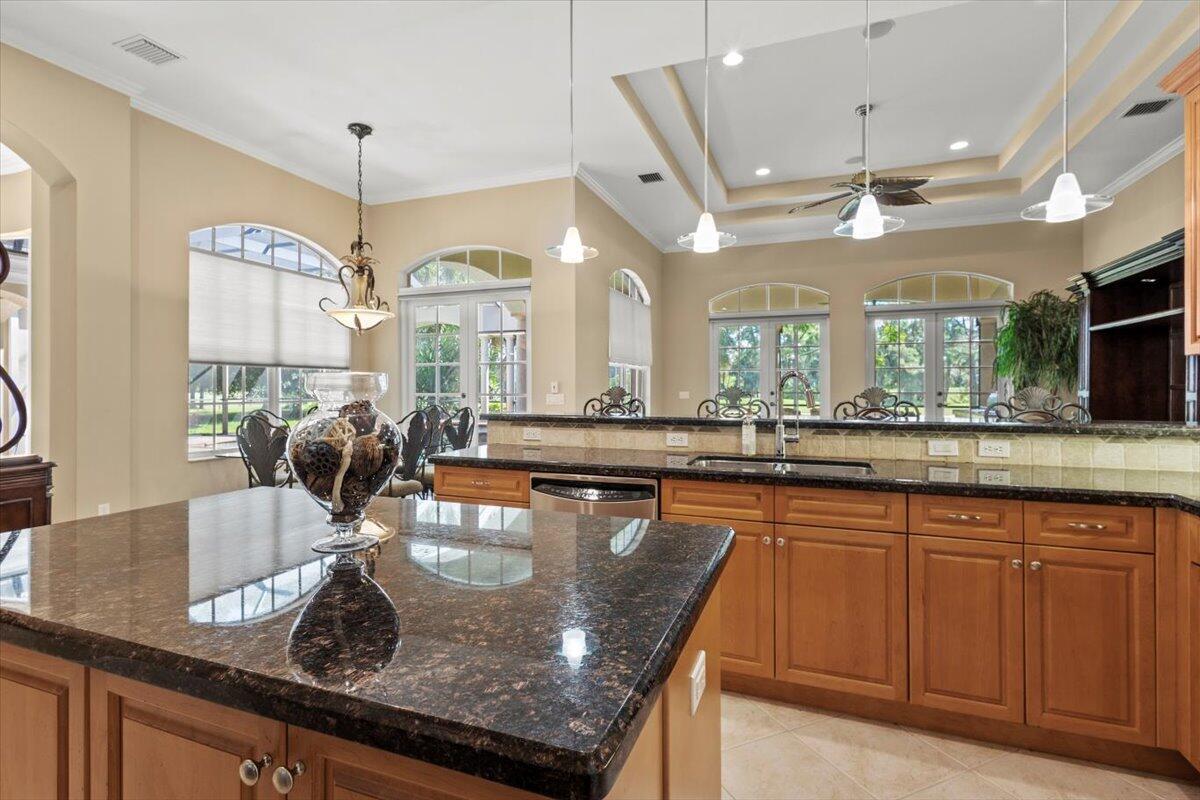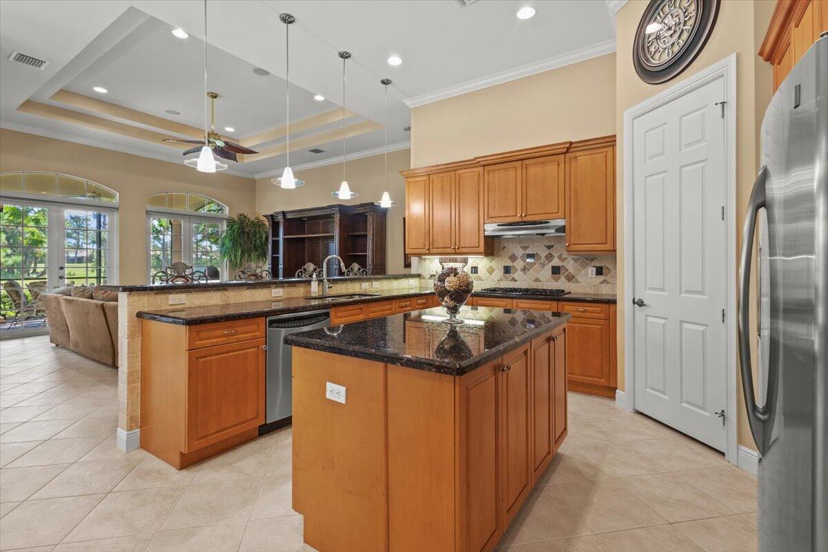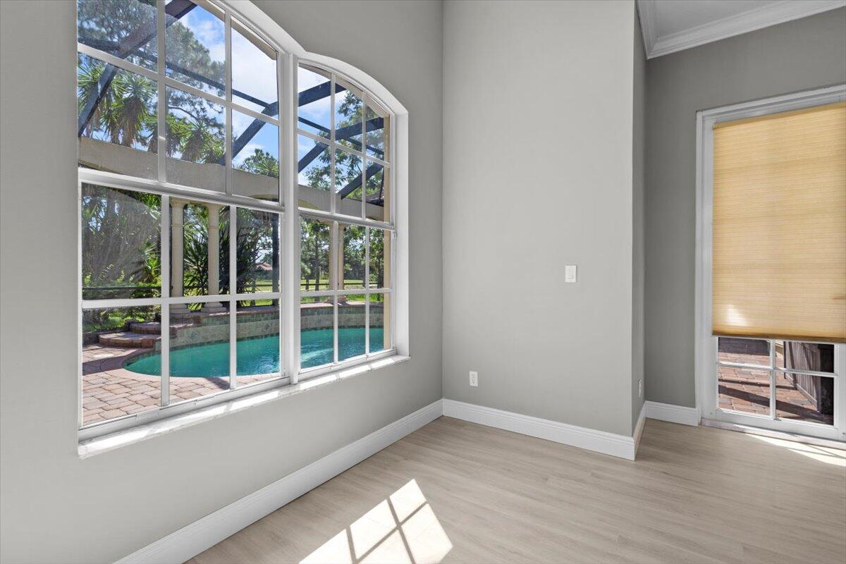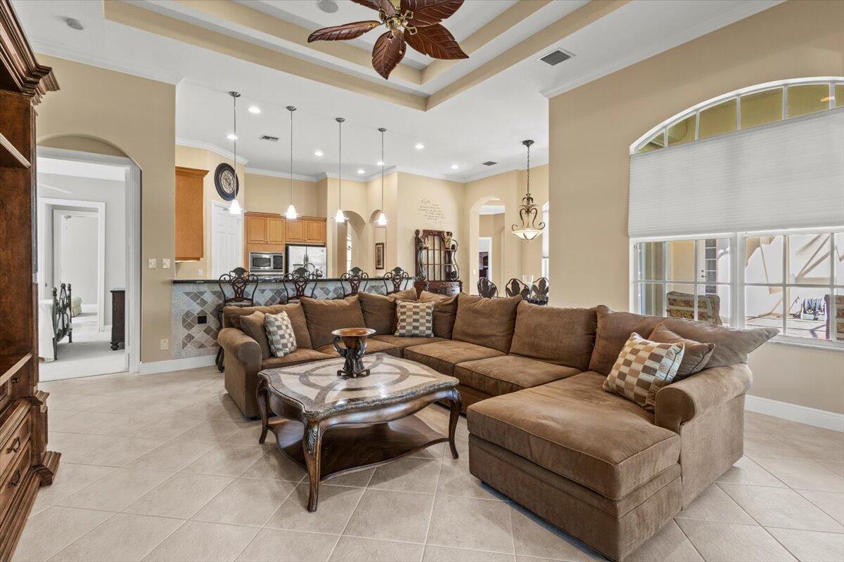 Gorgeous ''Cambridge model at ''Scarborough'' in PGA Village on the 6th hole of the Legacy Golf Course exceptional scenic golf & lake views! This pool home features fabulous curb appeal, grand entrance, stone finish, CBS Construction & New Barrel tile roof in 2019. Hosts 4 BR's, 4 BA's, Den/Office & 3 CG. Details include Volume & Custom tray ceilings, tile flooring, split floor plan & crown molding. Beautiful Gourmet eat in Kitchen boasts large island, breakfast bar, wall oven, gas range, granite counter tops, tile backsplash & walk in pantry. Off the kitchen enjoy a butlers pantry perfect for setting up your coffee bar or cocktails. Grand Master Suite w/sitting area, walk in closets & stunning updated MB with Victoria Albert soaking tub, separate shower, dual sinks, toilet & bidet.