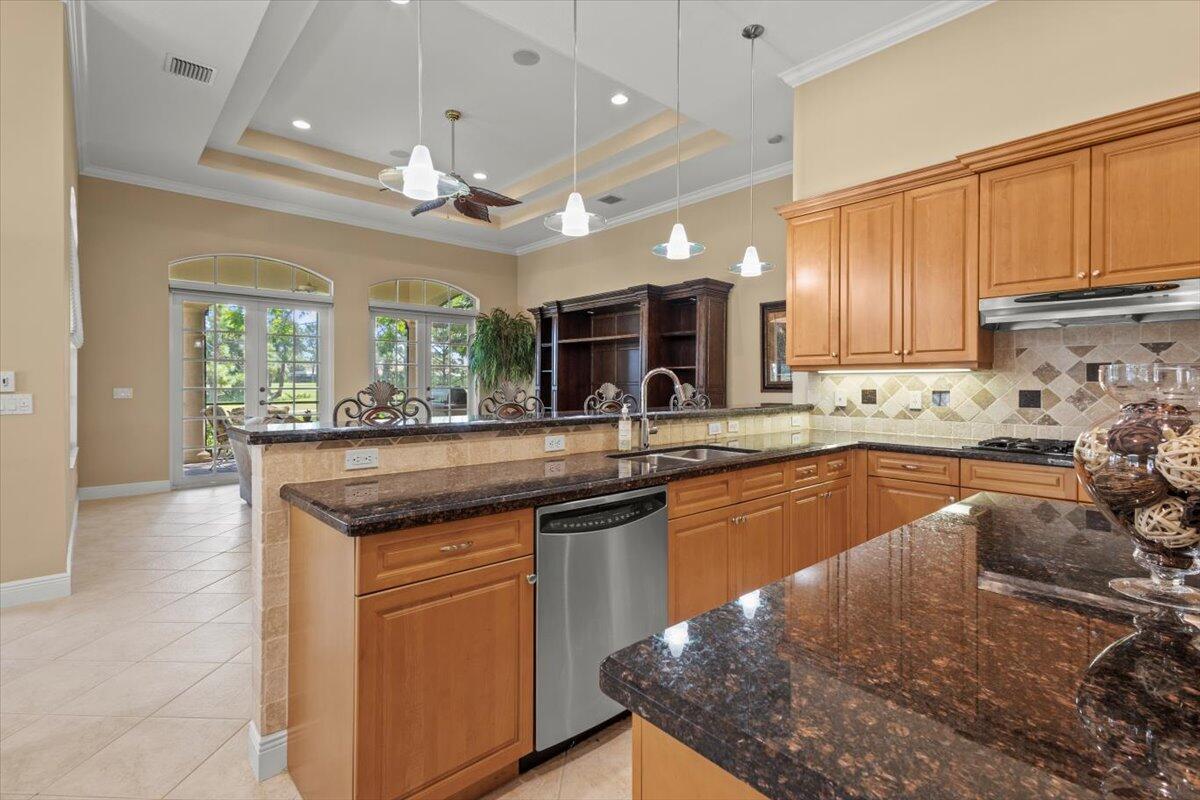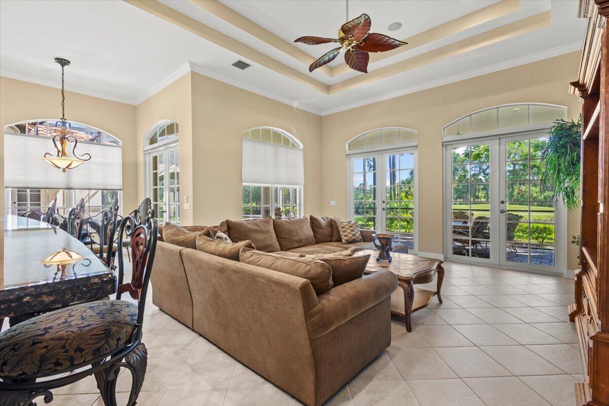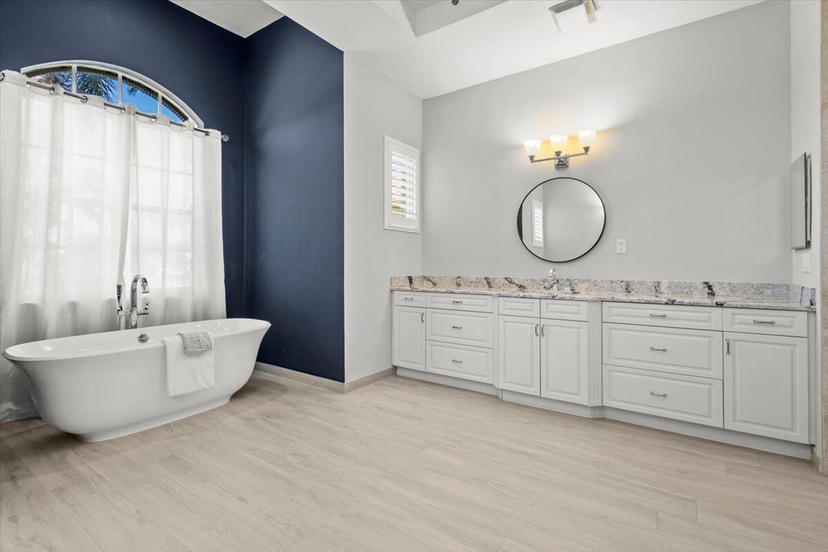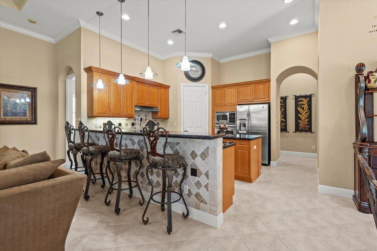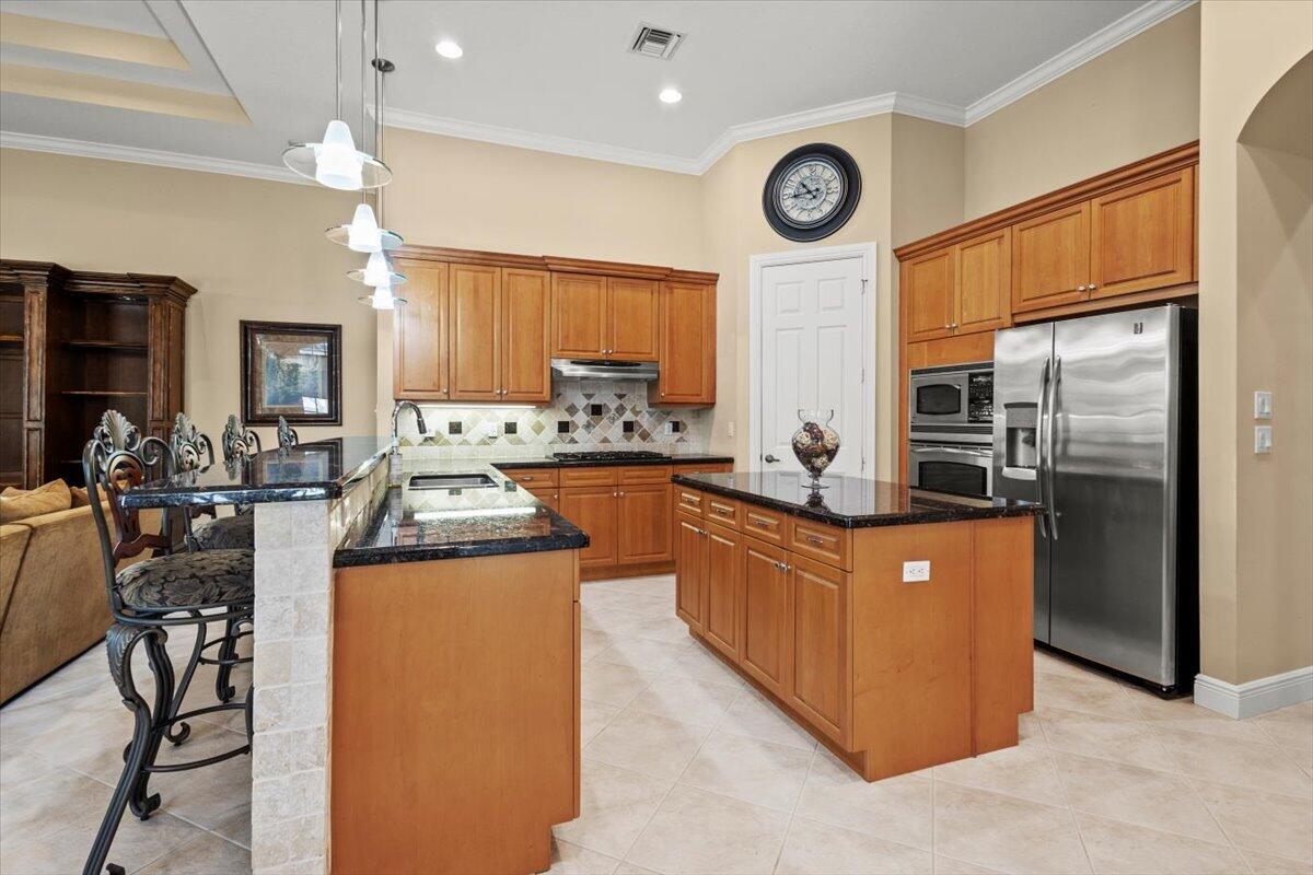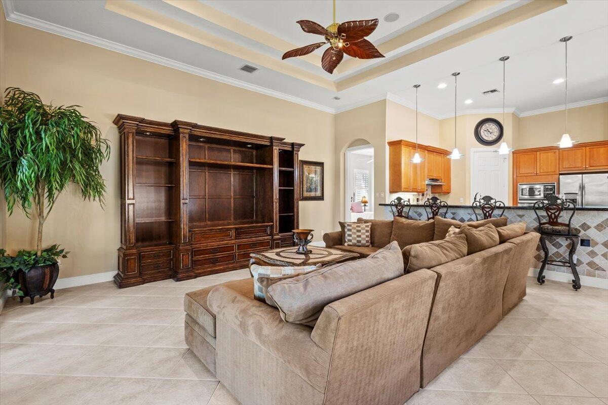 Gorgeous ''Cambridge model at ''Scarborough'' in PGA Village on the 6th hole of the Legacy Golf Course exceptional scenic golf & lake views! This pool home features fabulous curb appeal, grand entrance, stone finish, CBS Construction & New Barrel tile roof in 2019. Hosts 4 BR's, 4 BA's, Den/Office & 3 CG. Details include Volume & Custom tray ceilings, tile flooring, split floor plan & crown molding. Beautiful Gourmet eat in Kitchen boasts large island, breakfast bar, wall oven, gas range, granite counter tops, tile backsplash & walk in pantry. Off the kitchen enjoy a butlers pantry perfect for setting up your coffee bar or cocktails. Grand Master Suite w/sitting area, walk in closets & stunning updated MB with Victoria Albert soaking tub, separate shower, dual sinks, toilet & bidet.