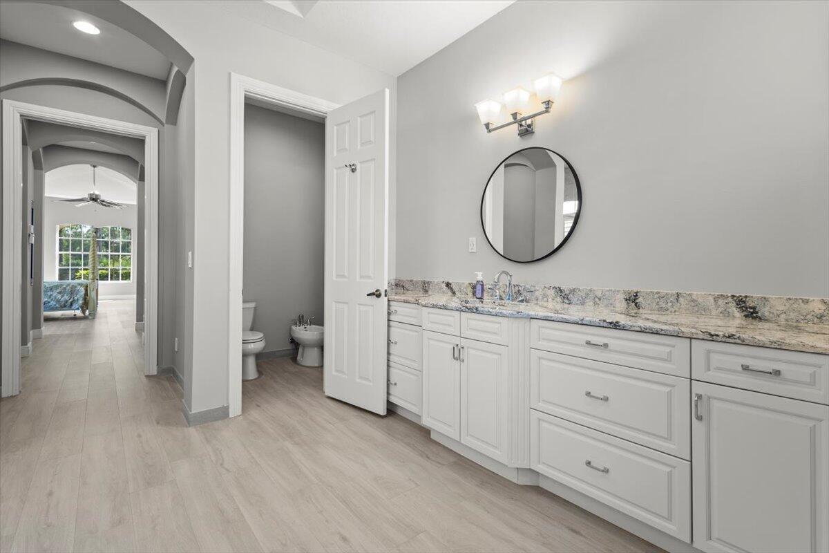 • Interior Feature:BreakfastBar, Bidet, BreakfastArea, DiningArea, SeparateFormalDiningRoom, DualSinks, EatInKitchen, FrenchDoorsAtriumDoors, GardenTubRomanTub, HighCeilings, Pantry, SplitBedrooms, SeparateShower, WalkInClosets, CentralVacuum