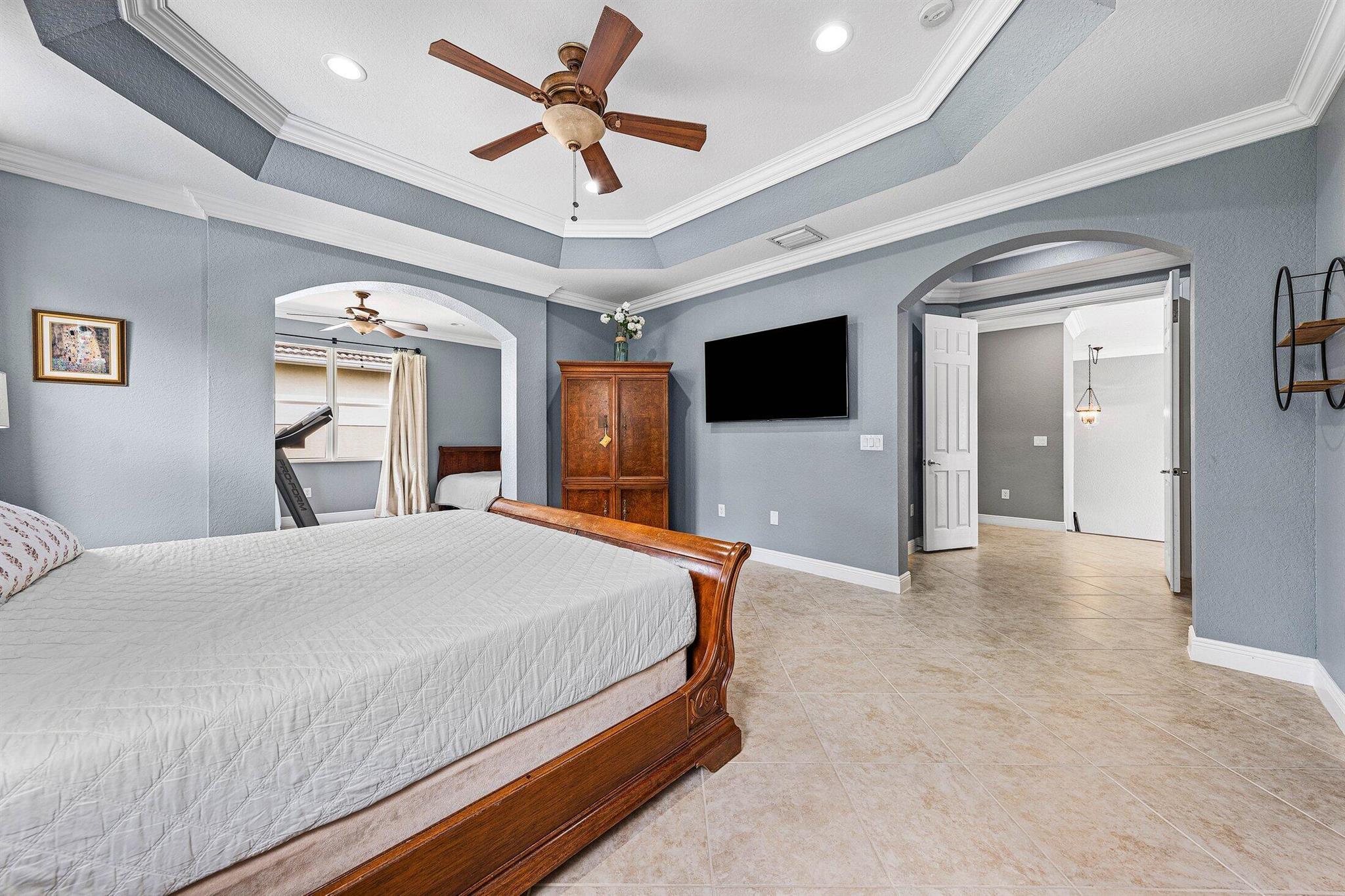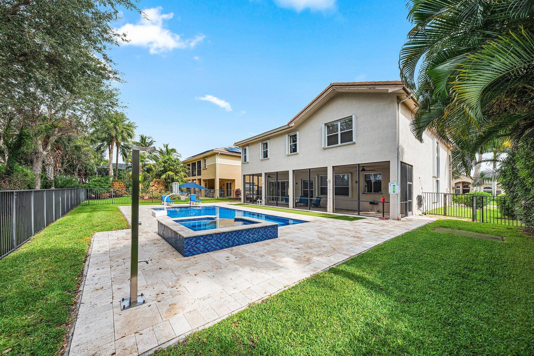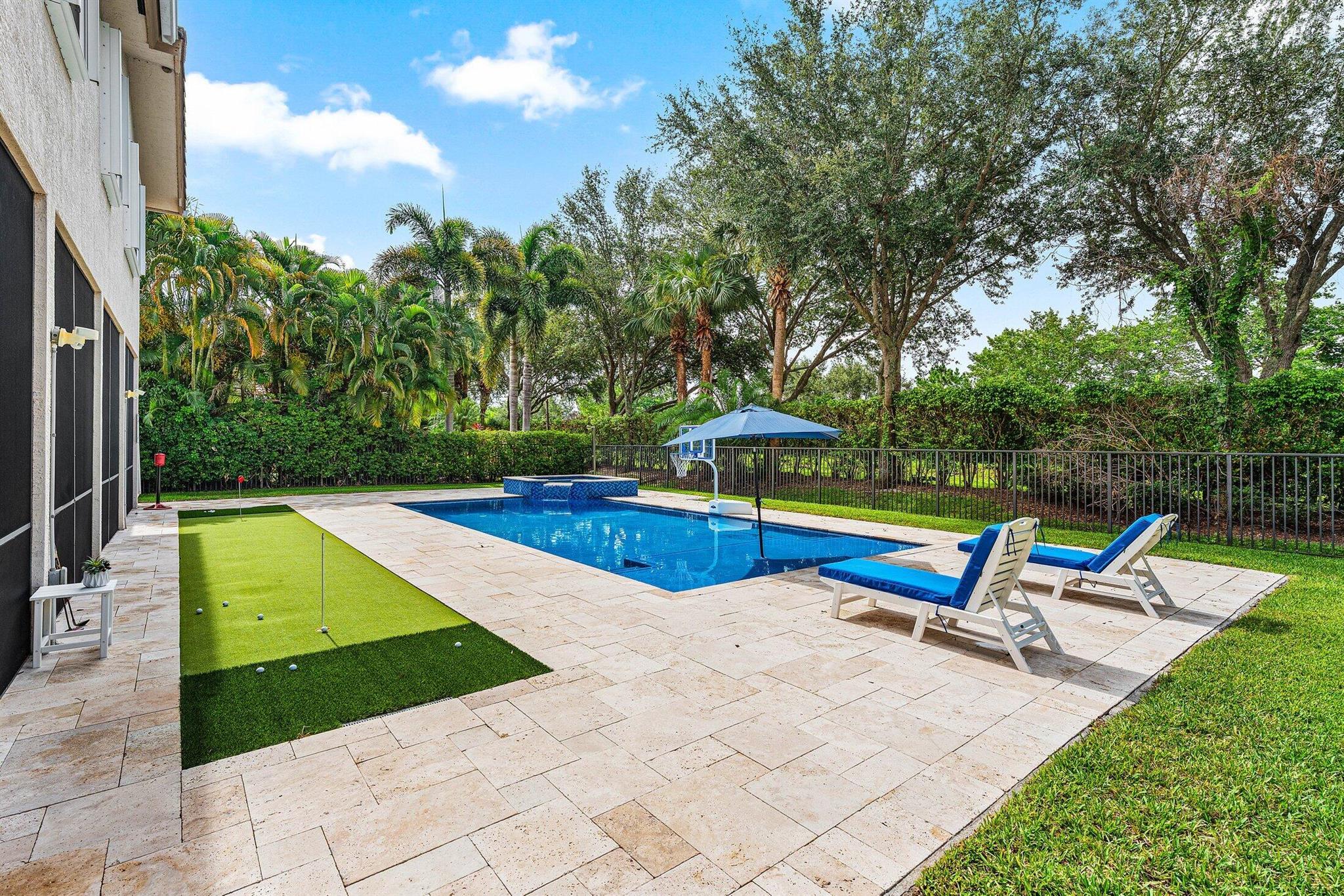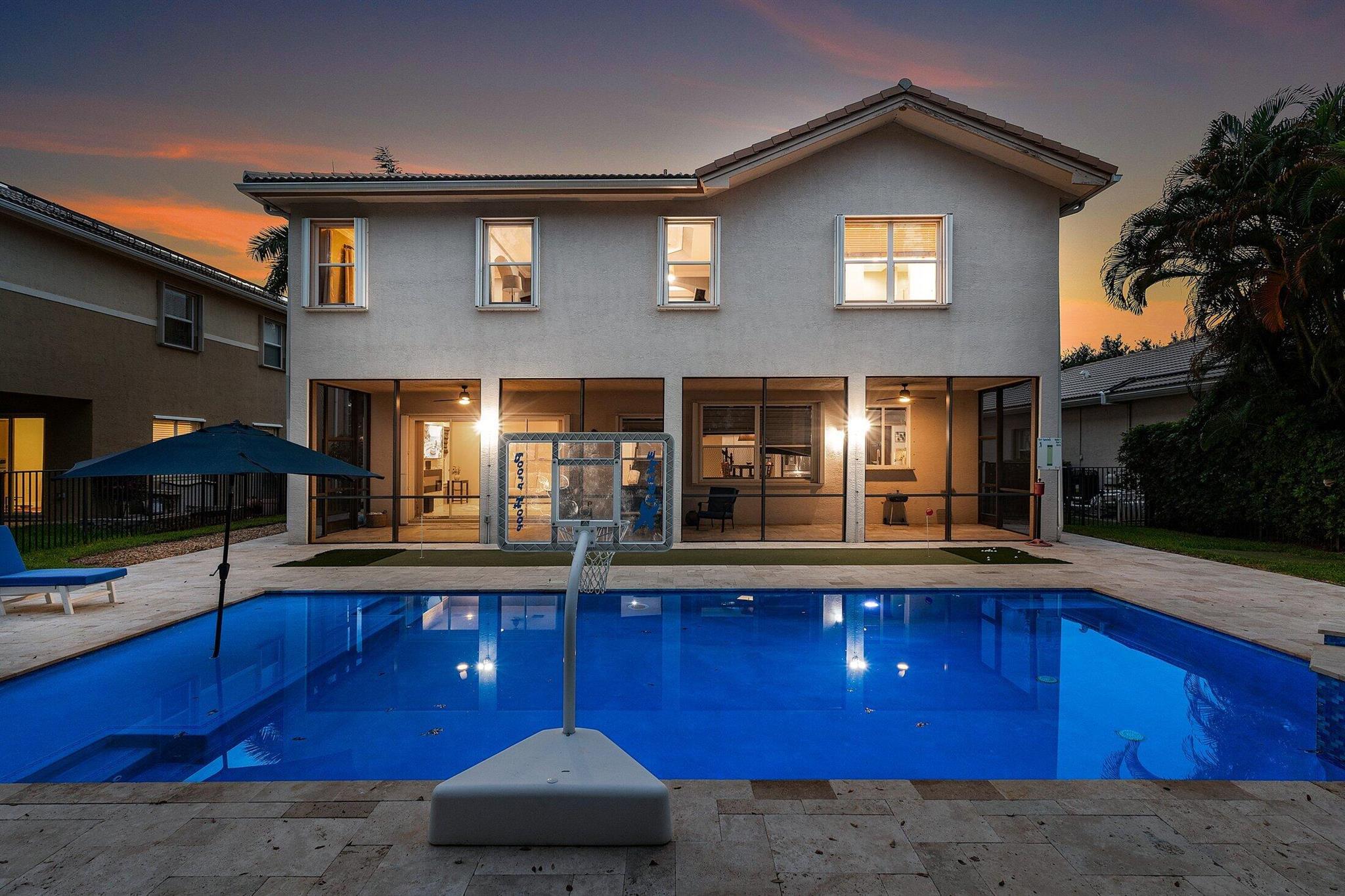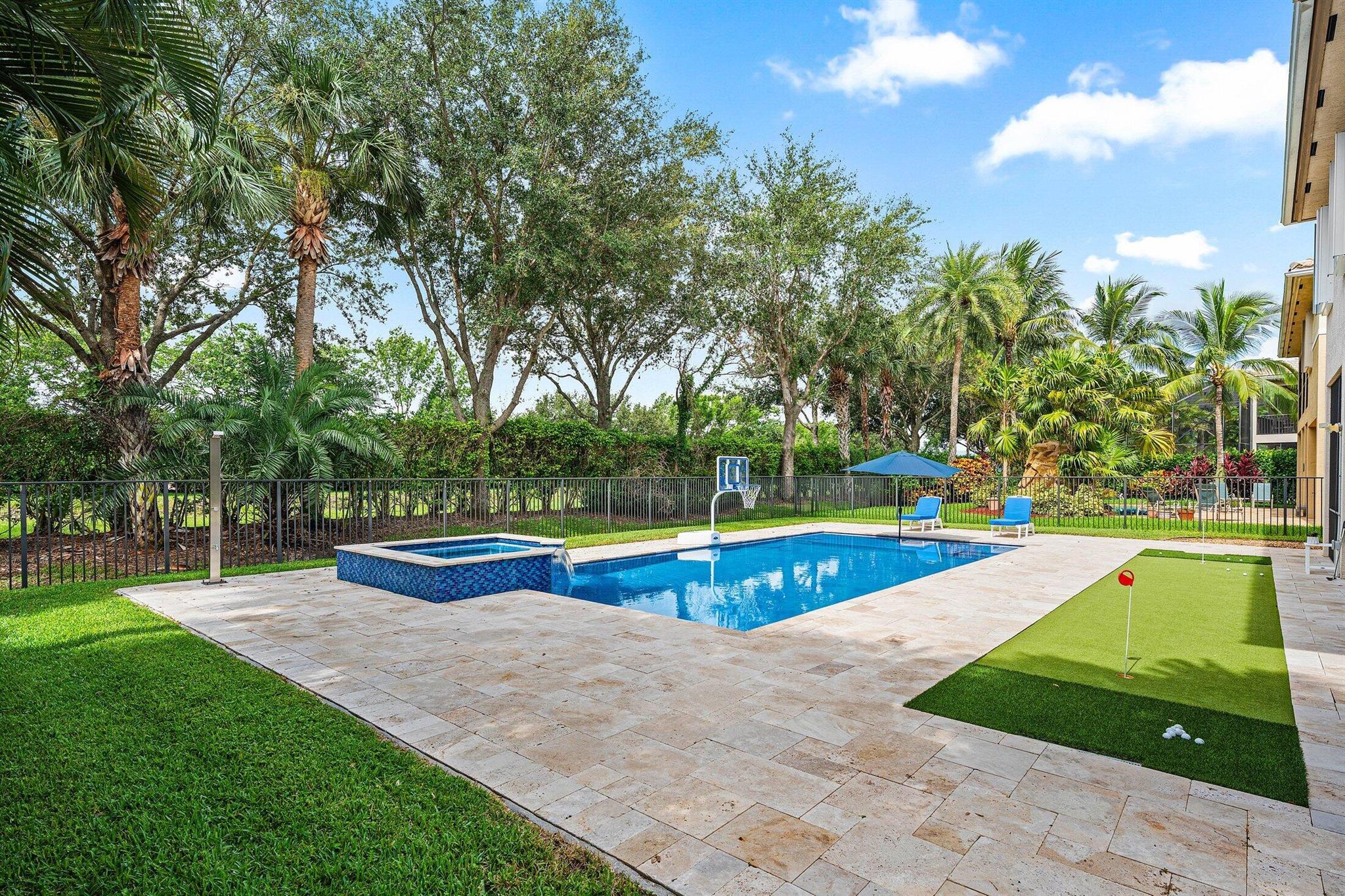 Gorgeous 6 Bedroom Estate with Resort Style Backyard in Canyon Springs. This Home Sits on a Culdesac and Includes Accordion Hurricane Shutters for the Whole Home. Entering You will be Impressed by the Soaring Ceilings and Impressive Natural Light. There is Stunning Millwork and Moldings Throughout. The Gorgeous Kitchen Boasts a Huge Center Island, Rich Wood Cabinetry and Stainless Steel Appliances Including a Double Oven. The Family Room has a Custom Stone Wall with Electric Fireplace. Out Back is Your Dream Backyard with a Huge Screened Patio and Travertine Pavers Overlooking a Heated Pool and Spa with Sunshelf. The Yard has Room to Roam and Even Includes a Custom Putting Green for Golf Enthusiasts. Heading Upstairs the Dramatic Double Entry Staircase Leads to the Huge Primary Suite.