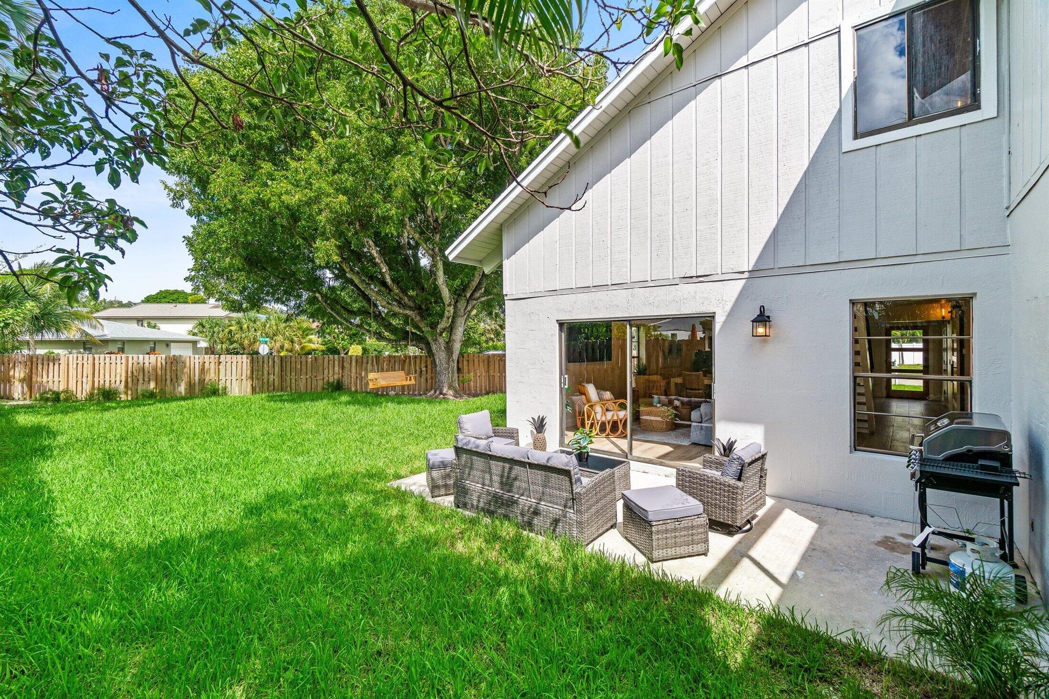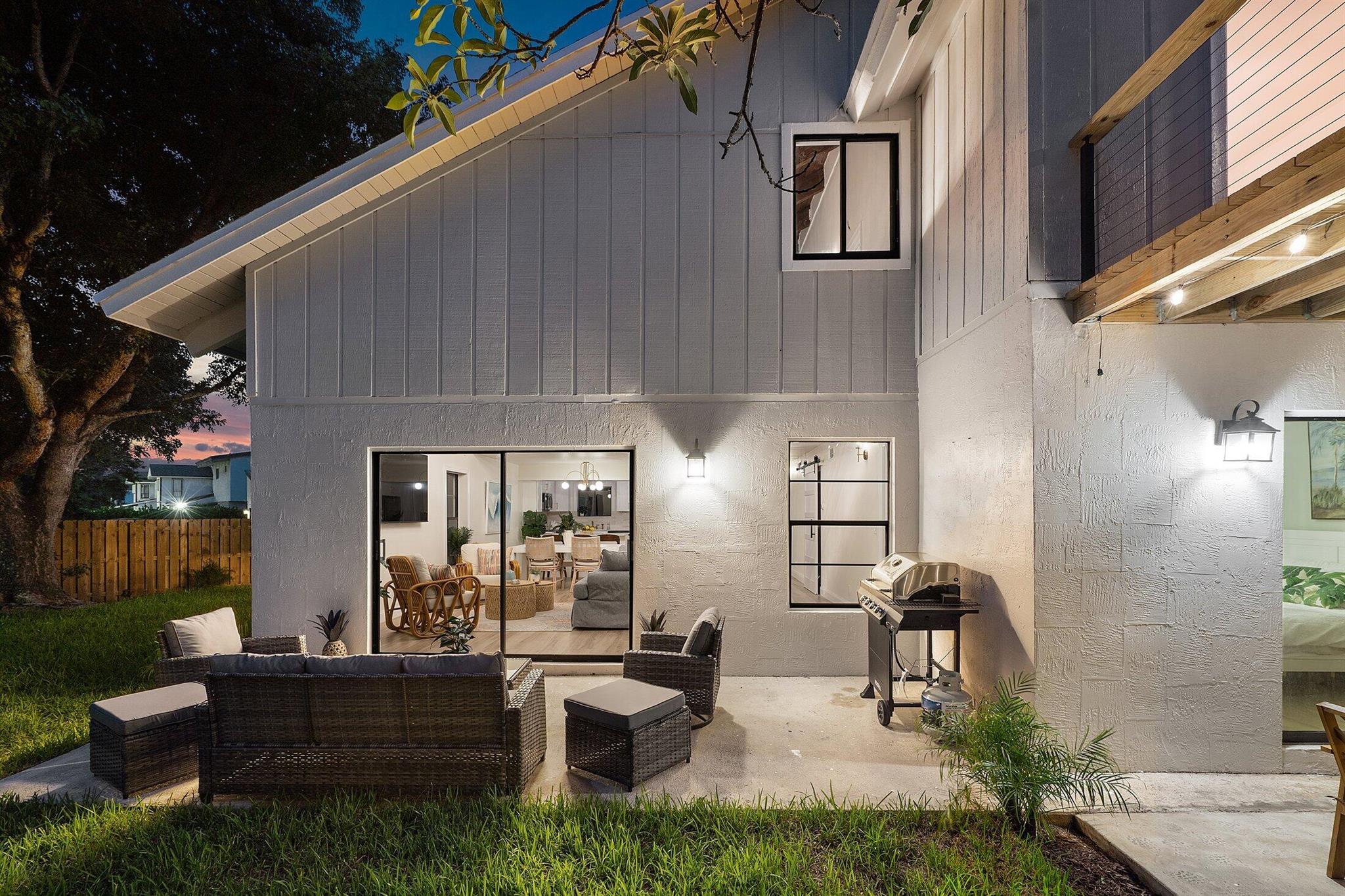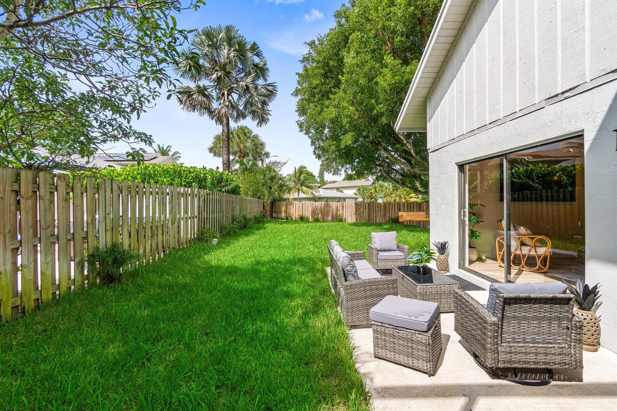 Rare opportunity to own this modern turnkey home with warm coastal vibes on a huge oversized lot near pristine Beaches of Delray Beach. Just a quick ride to downtown this exceptional home comes professionally furnished and decorated along with four beach cruisers! Reconfigured open-kitchen, high-vaulted ceilings, cedar-wood beams, stainless-steel appliances, modern vanities, quartz counters, porcelain-tile floors wall-to-wall, and hurricane garage door are just some of the features this home offers. Master bedroom downstairs with patio. Huge backyard completely fenced-in with gate! Room for pool! Elongated driveway has room for multiple cars. Completely repainted interior and exterior. This gem is perfect for a vacation home, permanent home, long or short term rental. No HOA!