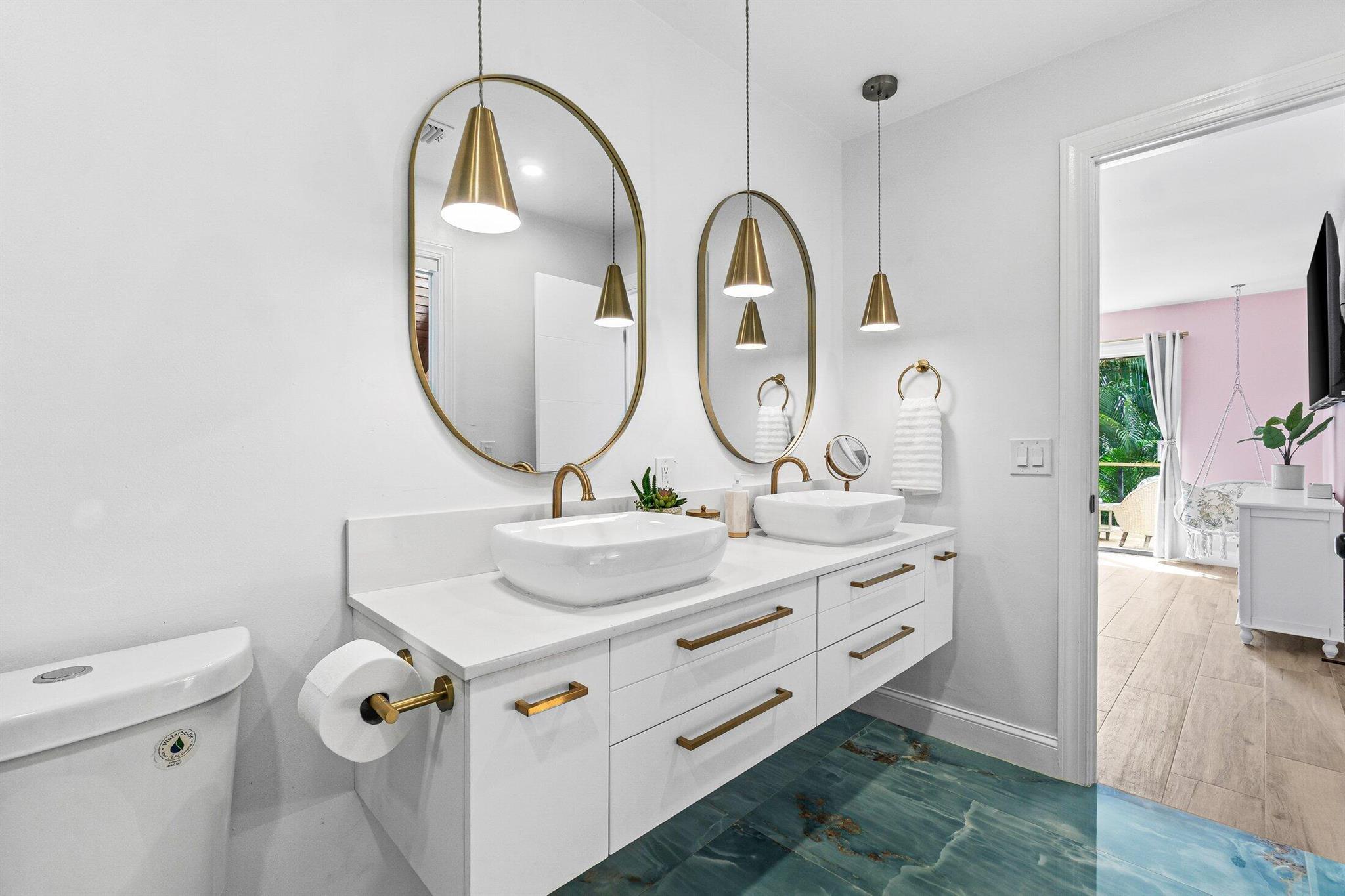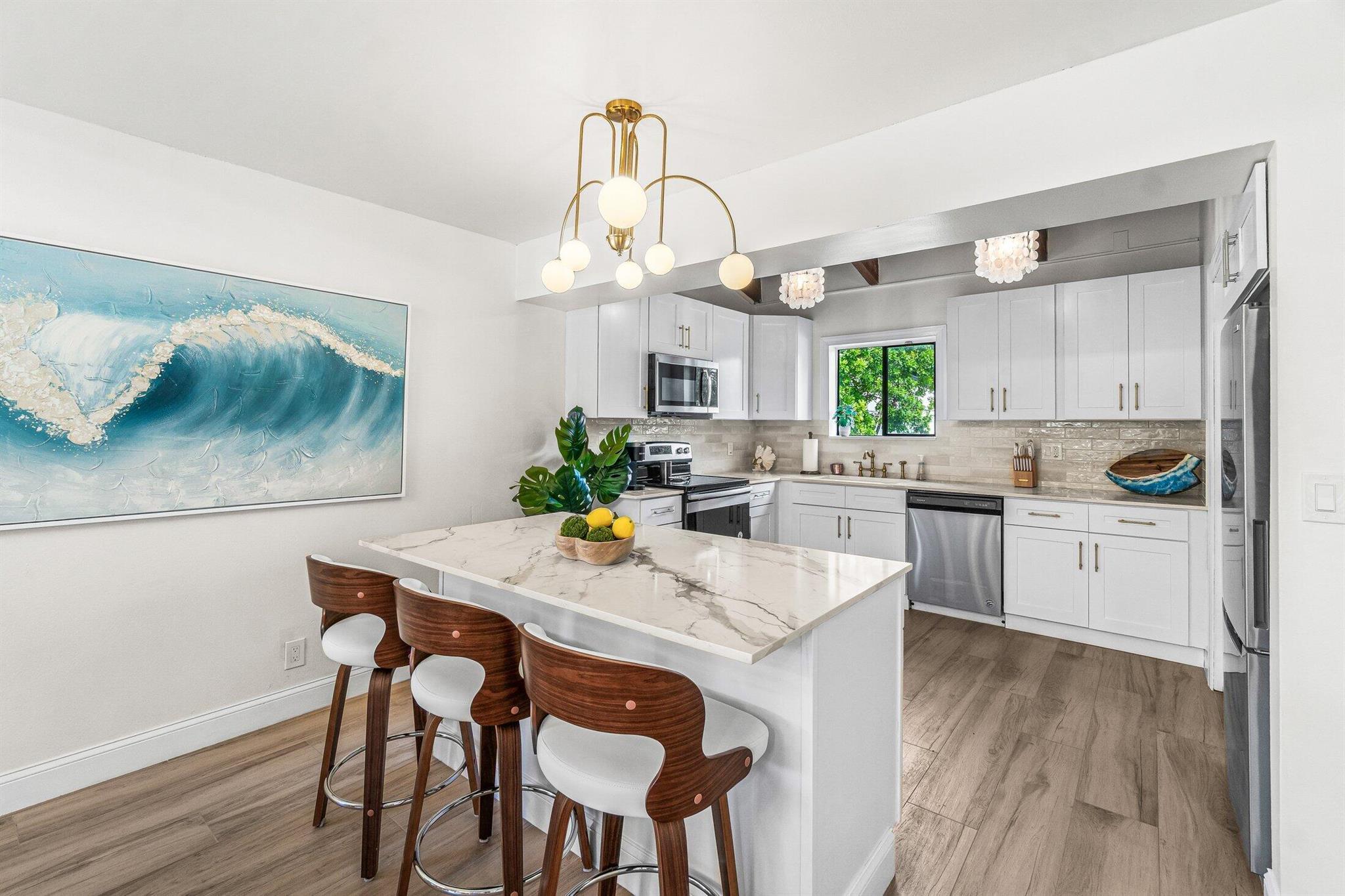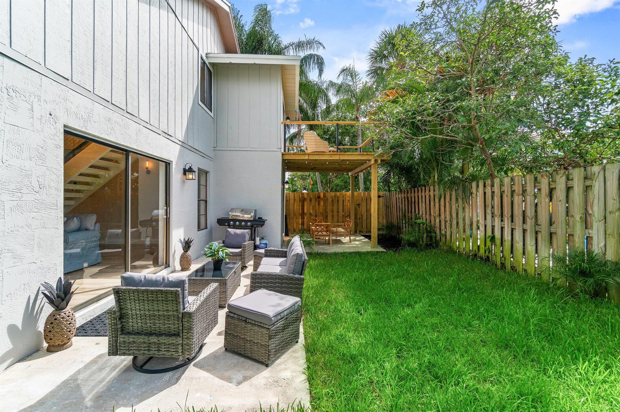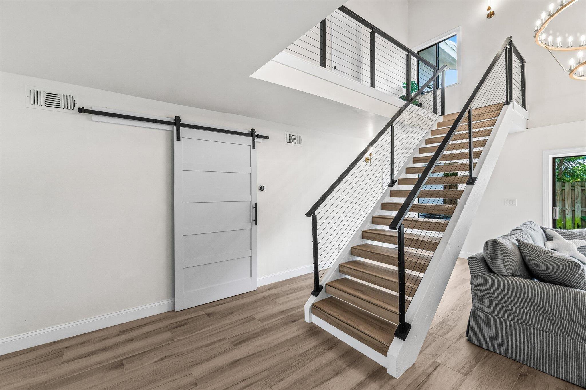 Rare opportunity to own this modern turnkey home with warm coastal vibes on a huge oversized lot near pristine Beaches of Delray Beach. Just a quick ride to downtown this exceptional home comes professionally furnished and decorated along with four beach cruisers! Reconfigured open-kitchen, high-vaulted ceilings, cedar-wood beams, stainless-steel appliances, modern vanities, quartz counters, porcelain-tile floors wall-to-wall, and hurricane garage door are just some of the features this home offers. Master bedroom downstairs with patio. Huge backyard completely fenced-in with gate! Room for pool! Elongated driveway has room for multiple cars. Completely repainted interior and exterior. This gem is perfect for a vacation home, permanent home, long or short term rental. No HOA!