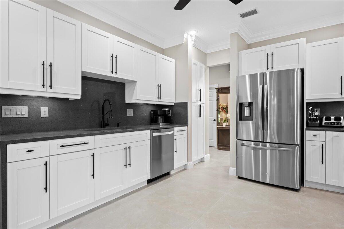 Experience modern luxury & exceptional design in this recently updated home located in the prestigious gated community of Lakefield West. This single-story residence offers 3 spacious bedrooms, each with its own ensuite full bathroom, plus a versatile 4th room that can serve as an office or an additional bedroom.Enjoy breathtaking views of the golf course and tranquil pond from your screened-in patio and sparkling inground pool.No detail was overlooked in the recent renovation, which includes: a new roof (2024), new flooring throughout, brand-new kitchen, beautifully updated bathrooms, new A/C, pool pump, lighting fixtures, and fresh interior paint.Additional features include expansive living and family rooms for privacy and flow. The home is zoned for top-rated Wellington schools.