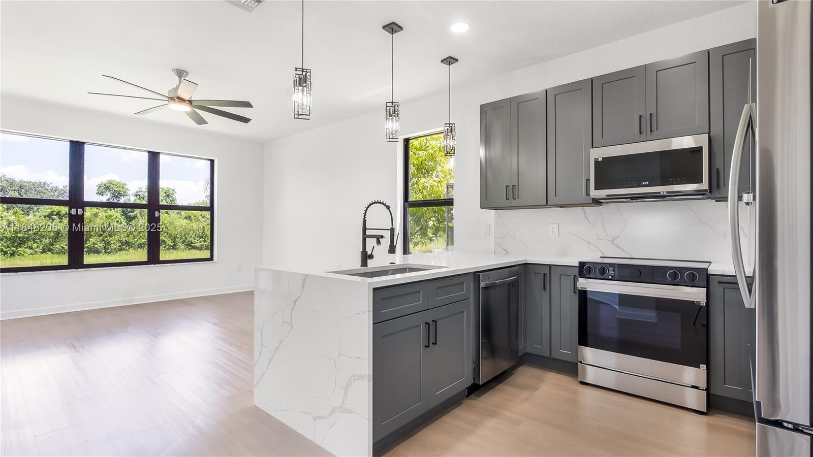 Fully Renovated 4BR/3BA Lakefront Home – Move-In Ready! New roof (2025), hurricane-impact windows and doors (2025), new HVAC system and water heater (2025), and luxury vinyl plank flooring (2025) throughout. Kitchen fully renovated with granite countertops, cabinets, and smart stainless-steel appliances All three bathrooms newly updated, including a spa-like primary suite for ultimate relaxation. Conveniently, there’s a guest bedroom and full bath on the first floor. Step outside to your private backyard oasis with stunning lake views, ideal for entertaining or peaceful evenings. Additional upgrades include new epoxy-coated garage floors. Centrally located near top-rated schools, shopping, dining, and major highways. Don’t miss this turnkey waterfront gem. Schedule your showing today!