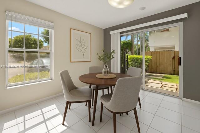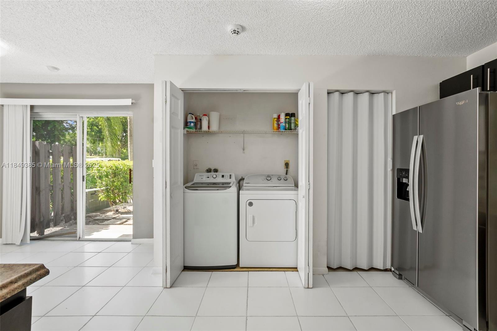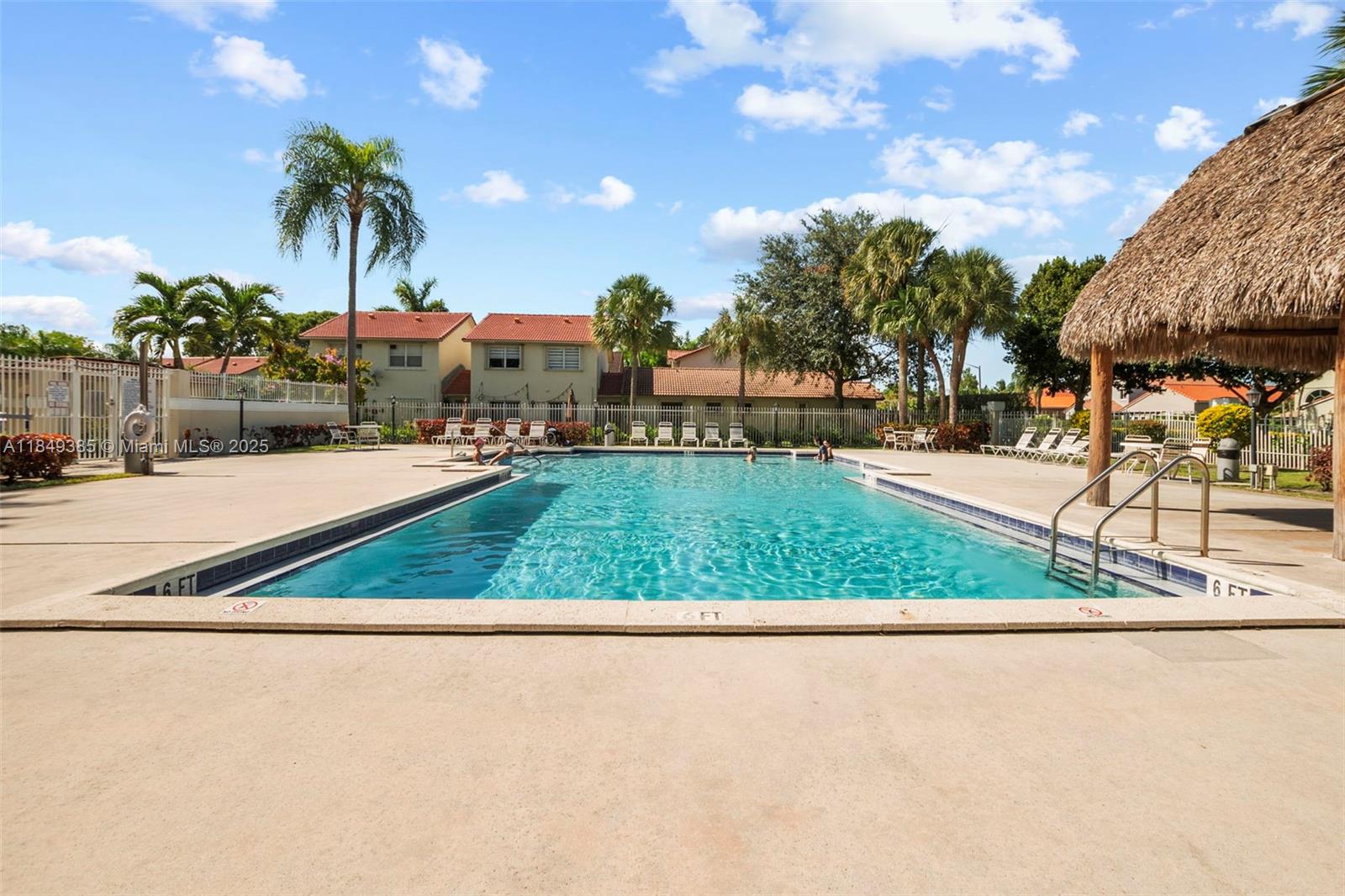 Courtyard-style corner unit townhome featuring foyer entrance, open living and dining area, a spacious kitchen with breakfast area and laundry closet and updated bathrooms. Tile on the first floor, carpet upstairs, and high ceilings on the second level with generously sized bedrooms. Roof is approx. 1.5 years old; appliances and water heater under 5 years. Enjoy a private backyard and separate storage room. Pet-friendly community with pool and playground. One Assigned Parking Space with plenty of additional parking. Prime location near Pembroke Lakes Mall, Memorial West Hospital, Restaurants, Shopping Centers, A+ Schools, major highways, and I-75.