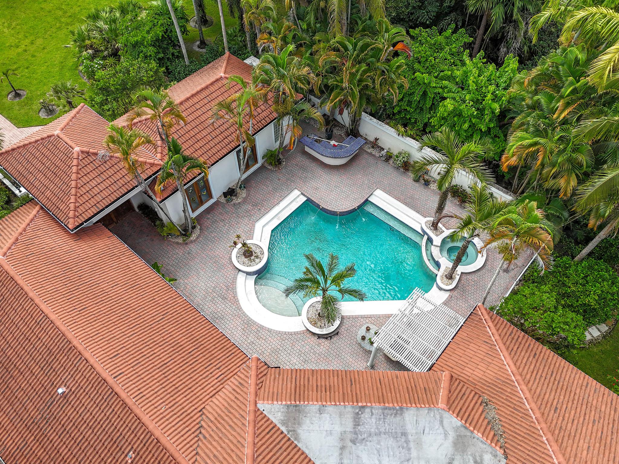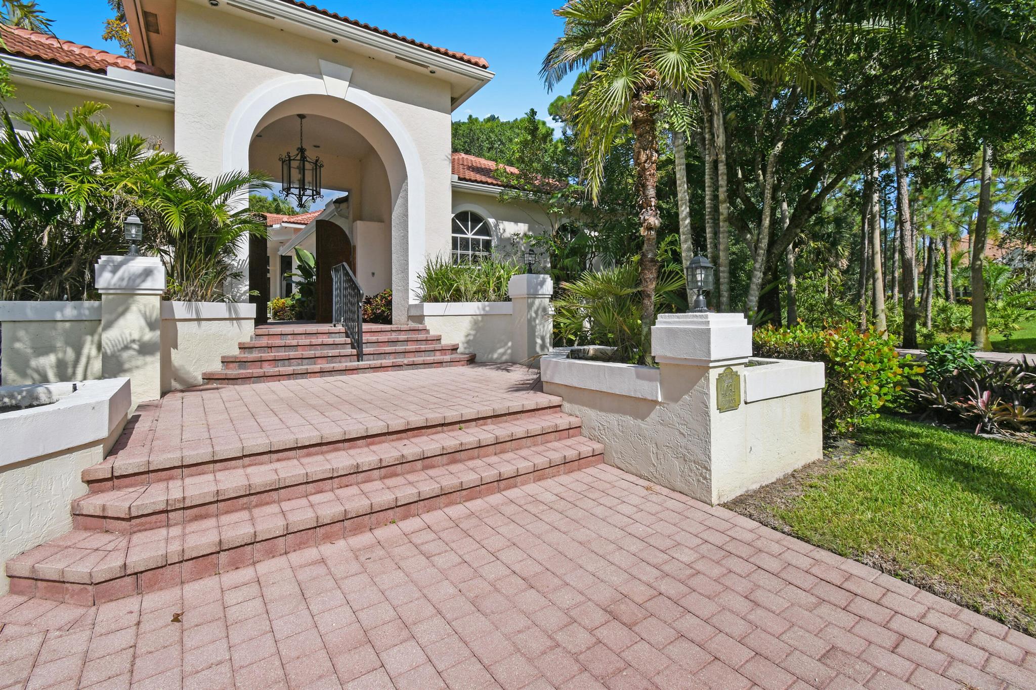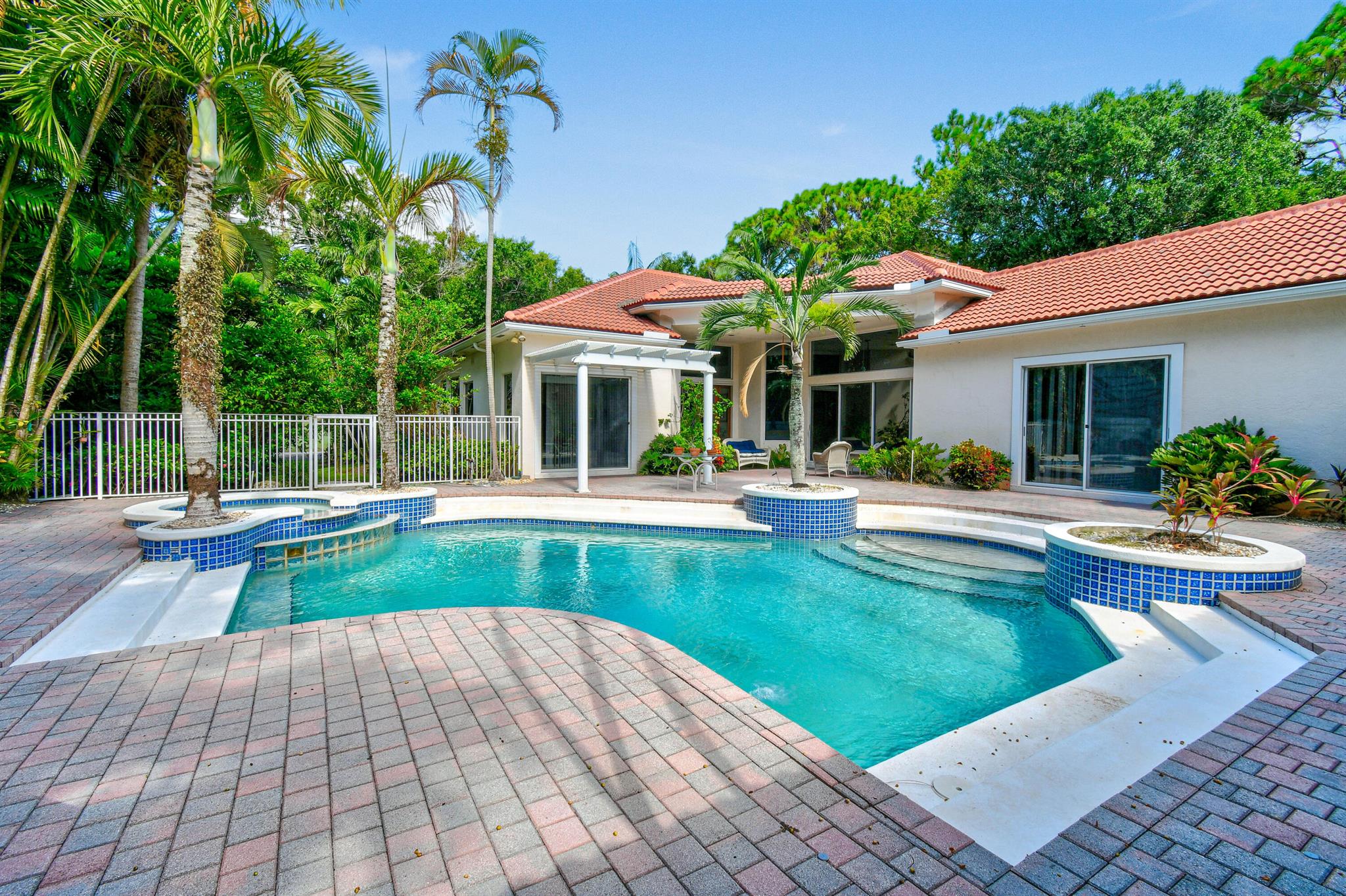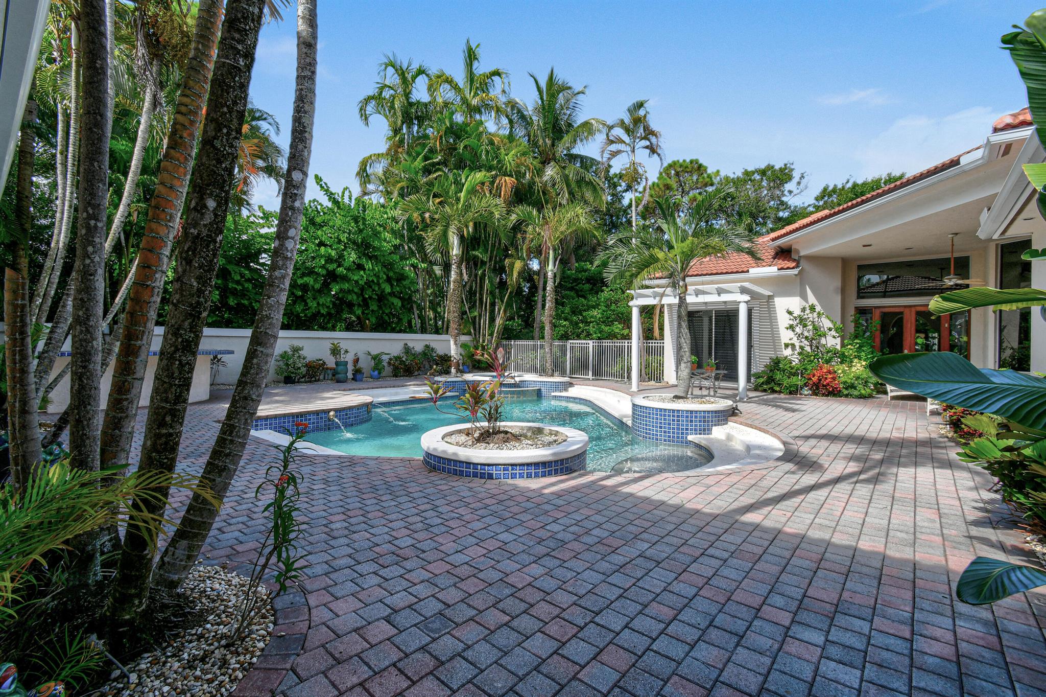 This home is in Old Trail located in Ranch Colony, a gated luxury community. An acre-plus courtyard home featuring a hand-carved imported doors. Three bedroom and three baths, with a guest house surrounding the pool with a spa. Fourteen-foot ceilings, a formal living room, a dining room, and a spacious primary bedroom. Enjoy the privacy and security of Old Trail and join Jonathan's Landing's and play three golf courses. New roof in 2022. Drive 25 minutes to the beach and 40 minutes to Palm Beach Airport.