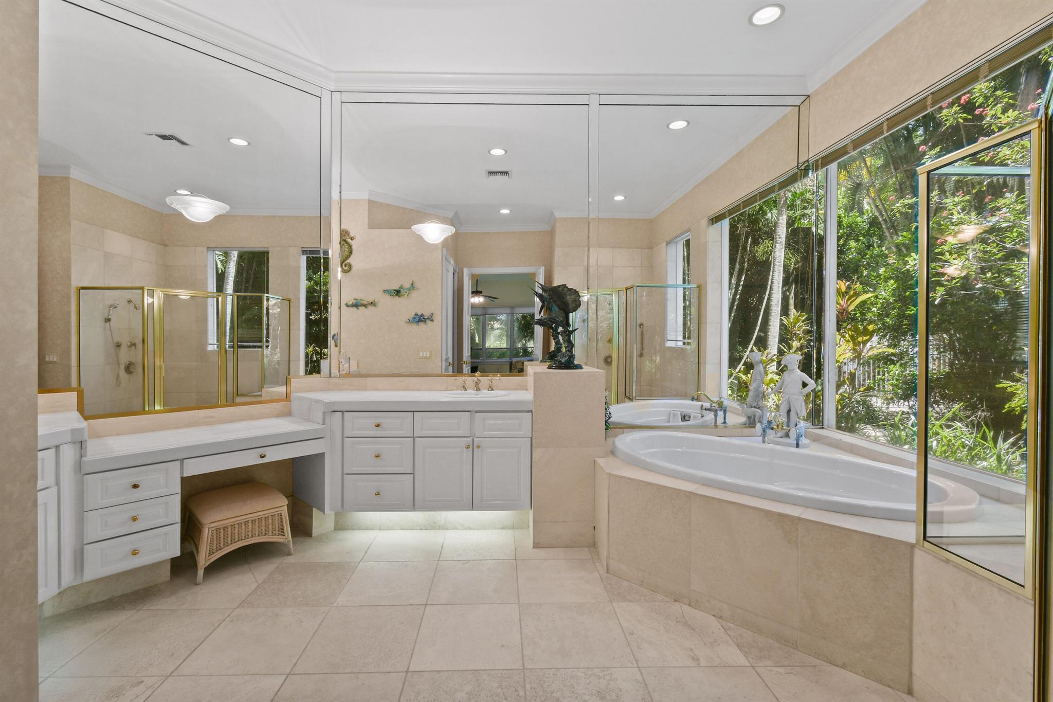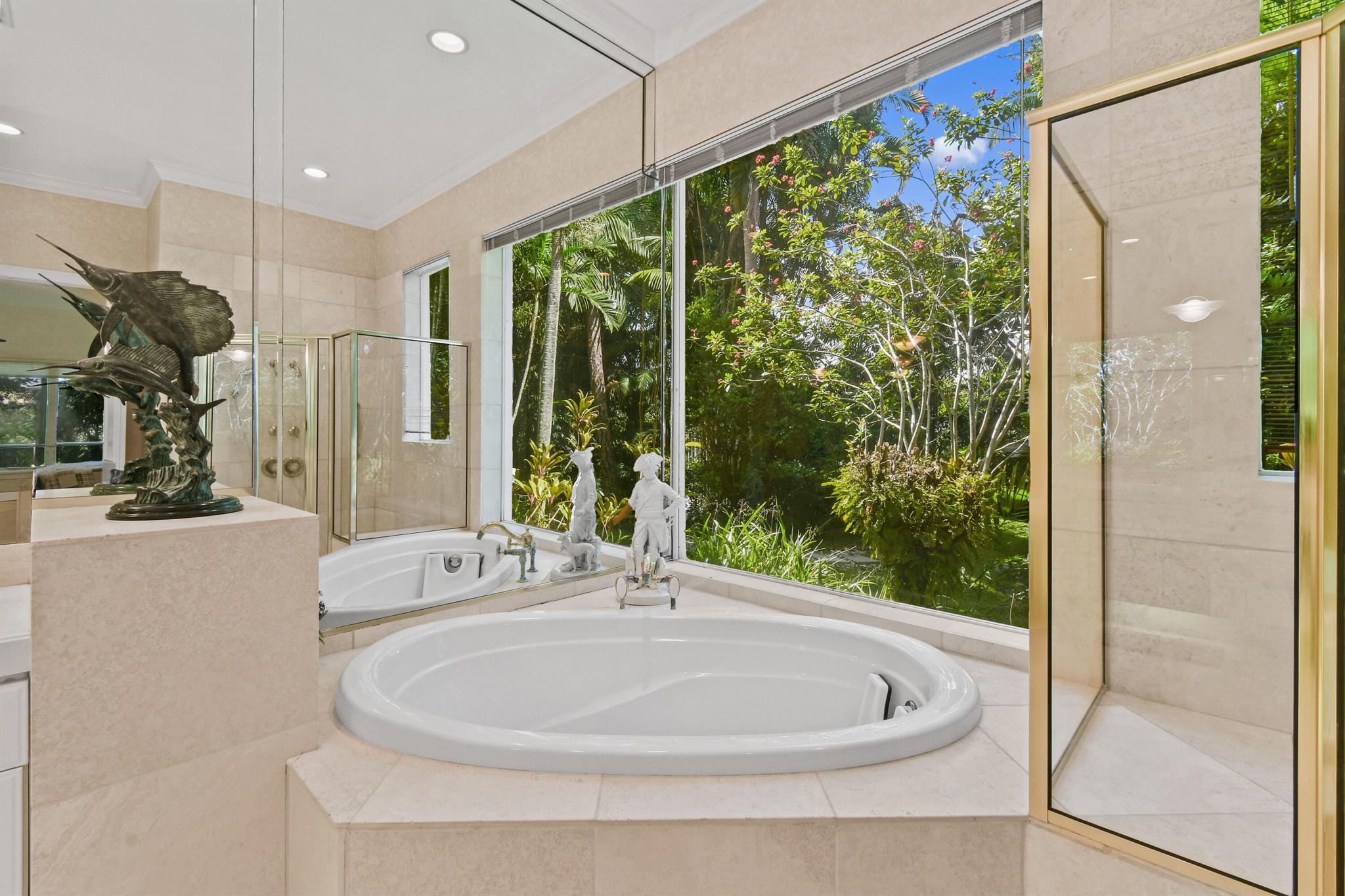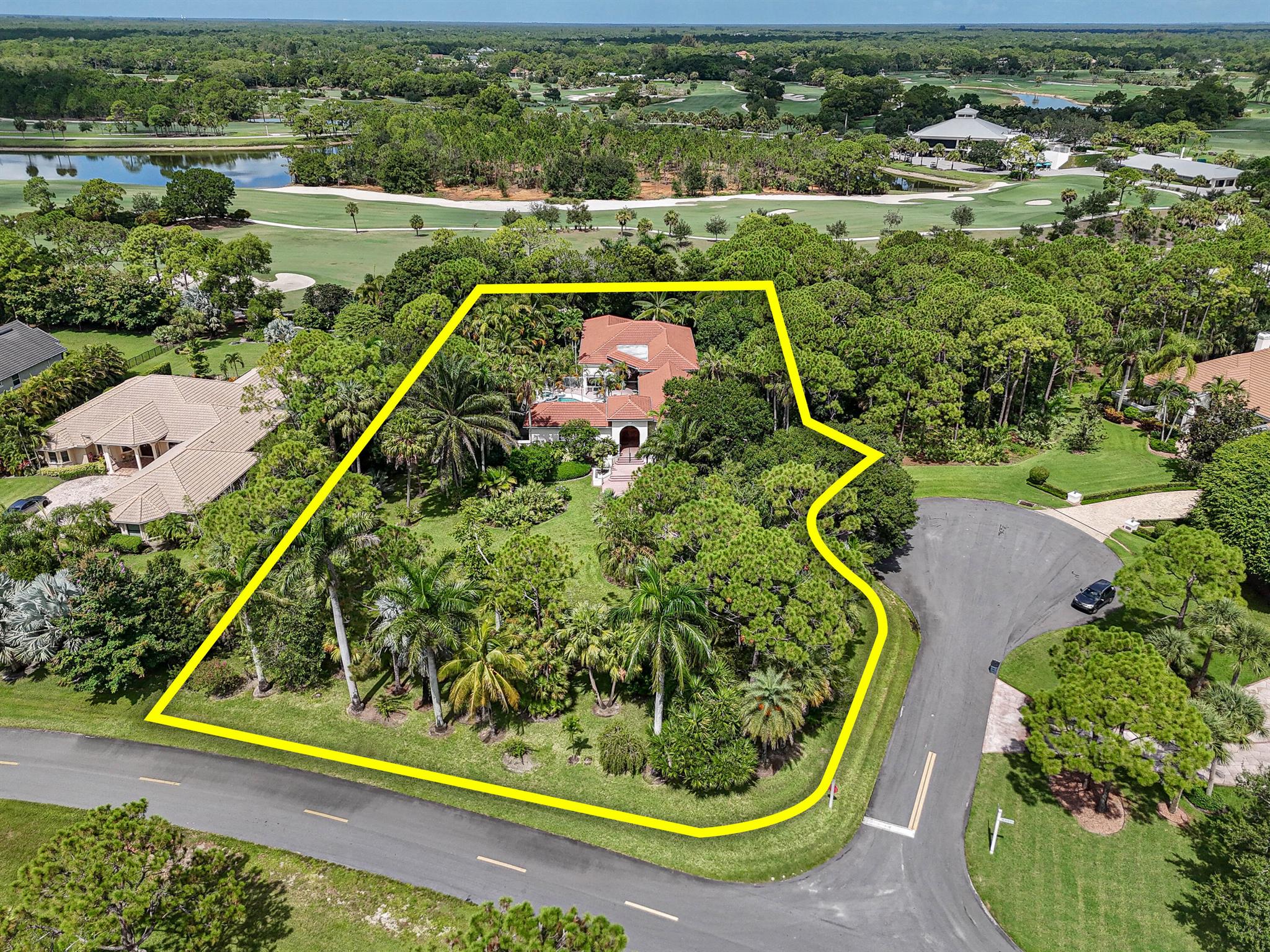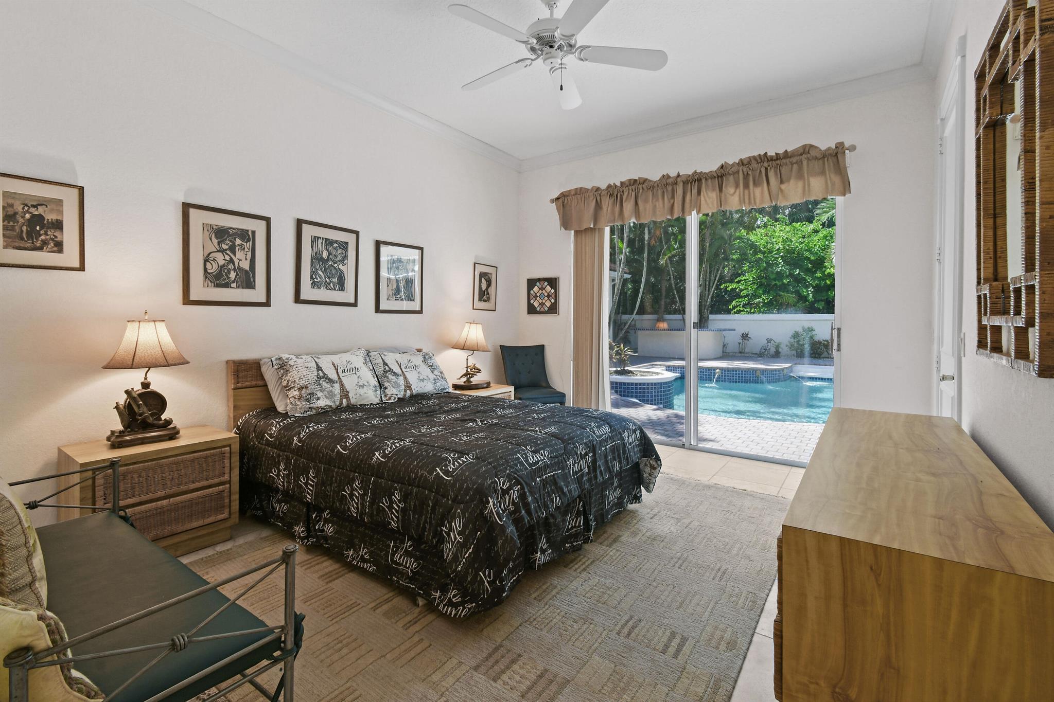 This home is in Old Trail located in Ranch Colony, a gated luxury community. An acre-plus courtyard home featuring a hand-carved imported doors. Three bedroom and three baths, with a guest house surrounding the pool with a spa. Fourteen-foot ceilings, a formal living room, a dining room, and a spacious primary bedroom. Enjoy the privacy and security of Old Trail and join Jonathan's Landing's and play three golf courses. New roof in 2022. Drive 25 minutes to the beach and 40 minutes to Palm Beach Airport.