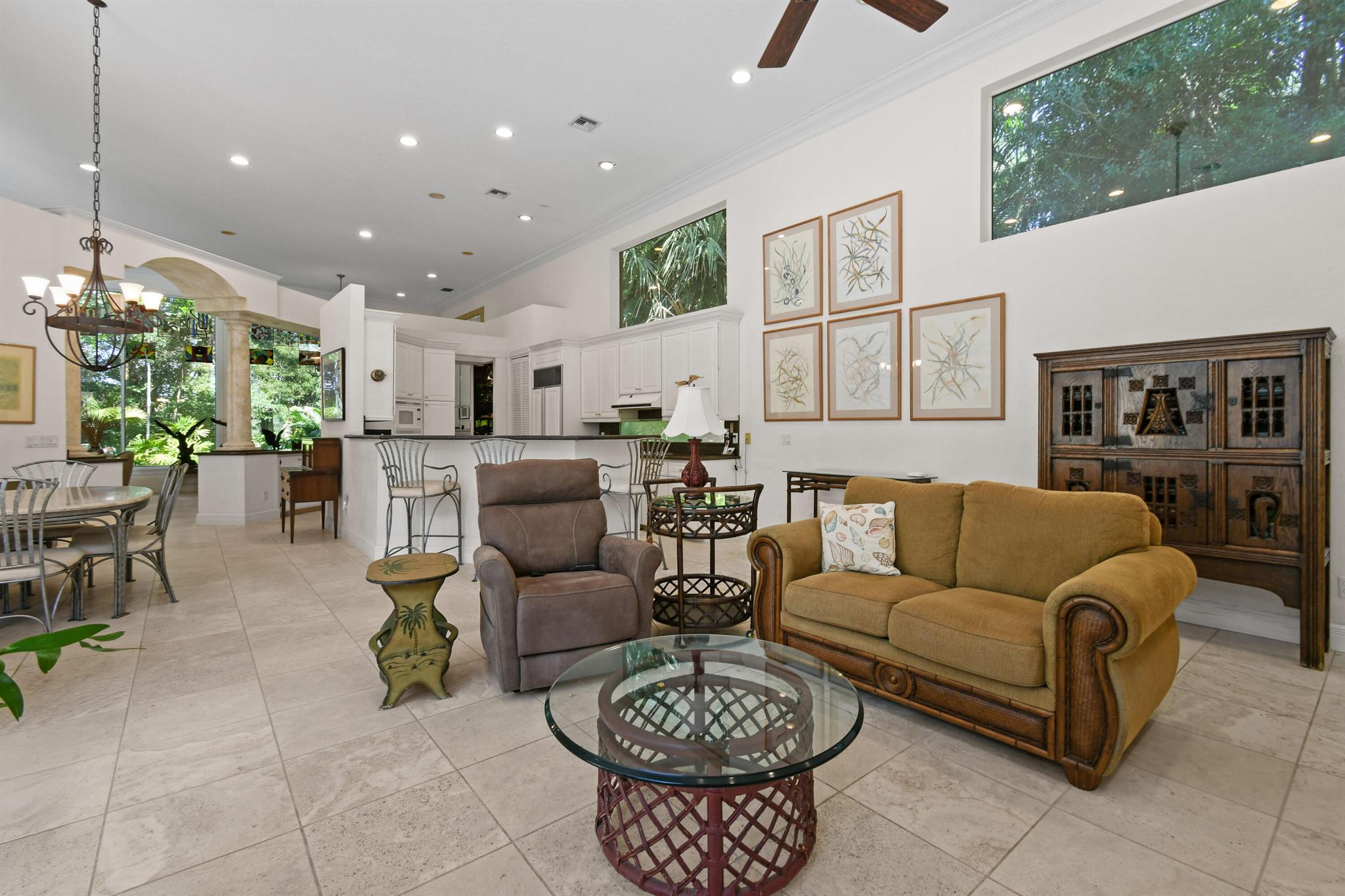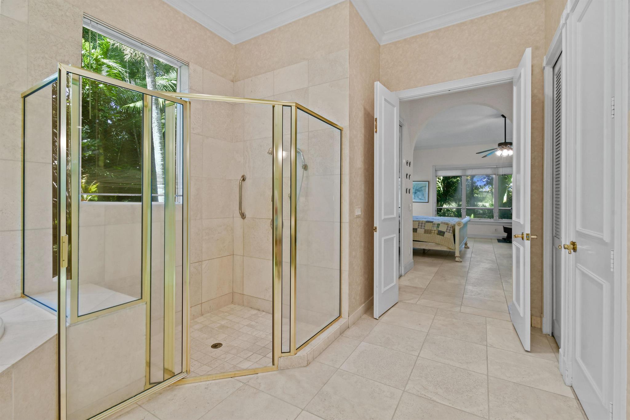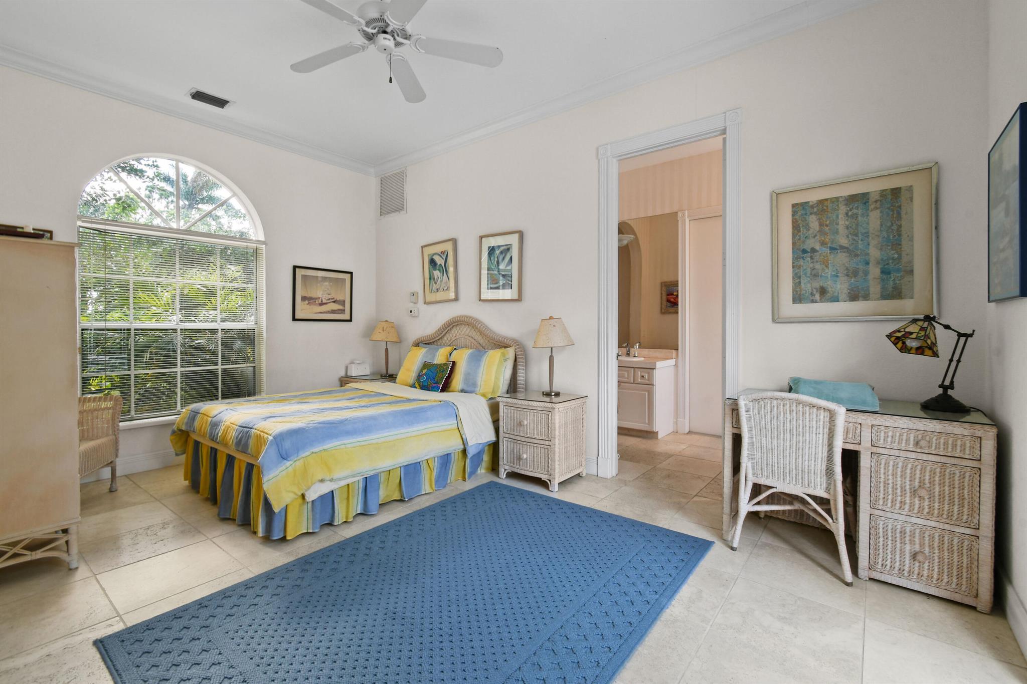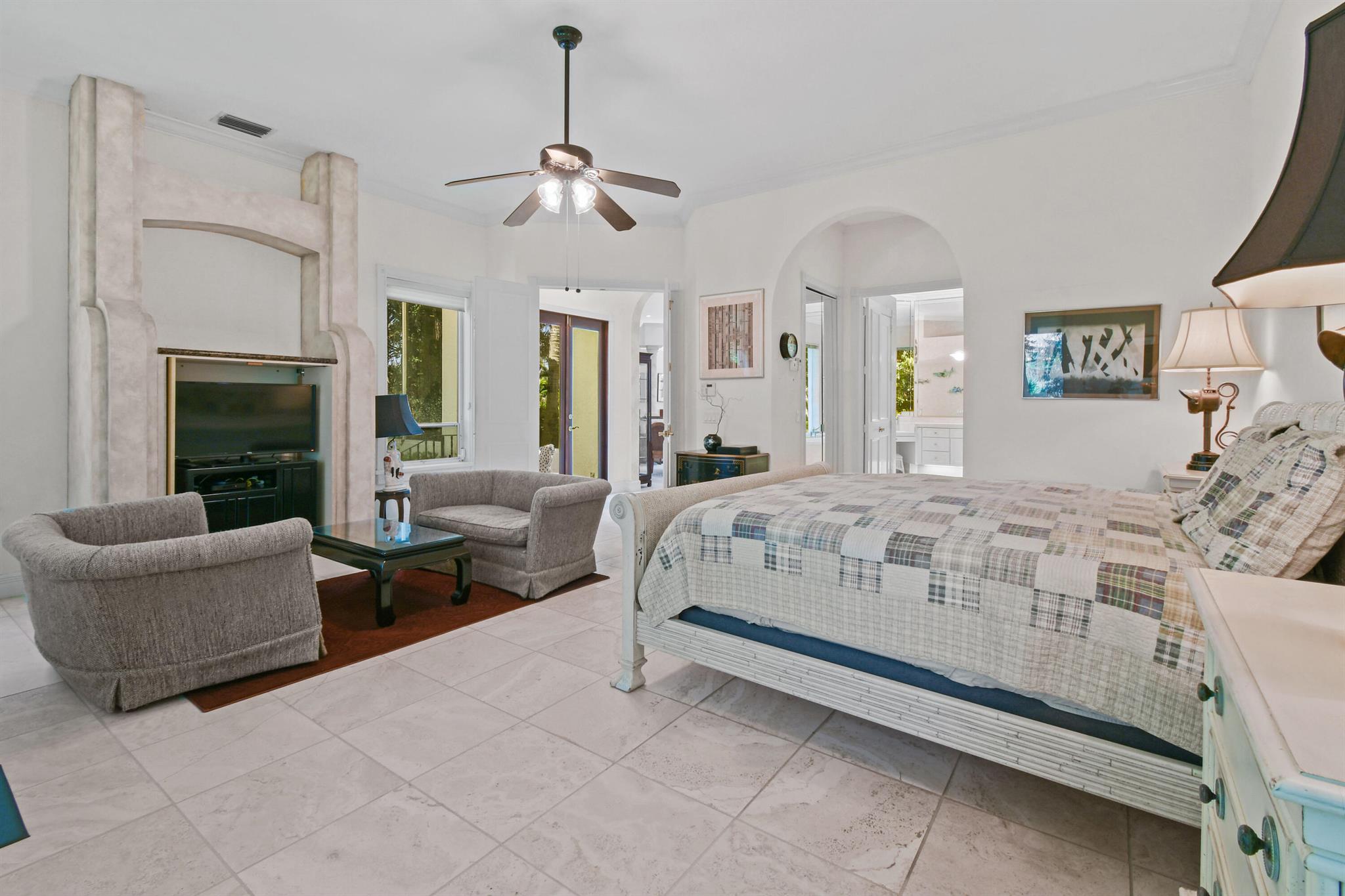 This home is in Old Trail located in Ranch Colony, a gated luxury community. An acre-plus courtyard home featuring a hand-carved imported doors. Three bedroom and three baths, with a guest house surrounding the pool with a spa. Fourteen-foot ceilings, a formal living room, a dining room, and a spacious primary bedroom. Enjoy the privacy and security of Old Trail and join Jonathan's Landing's and play three golf courses. New roof in 2022. Drive 25 minutes to the beach and 40 minutes to Palm Beach Airport.