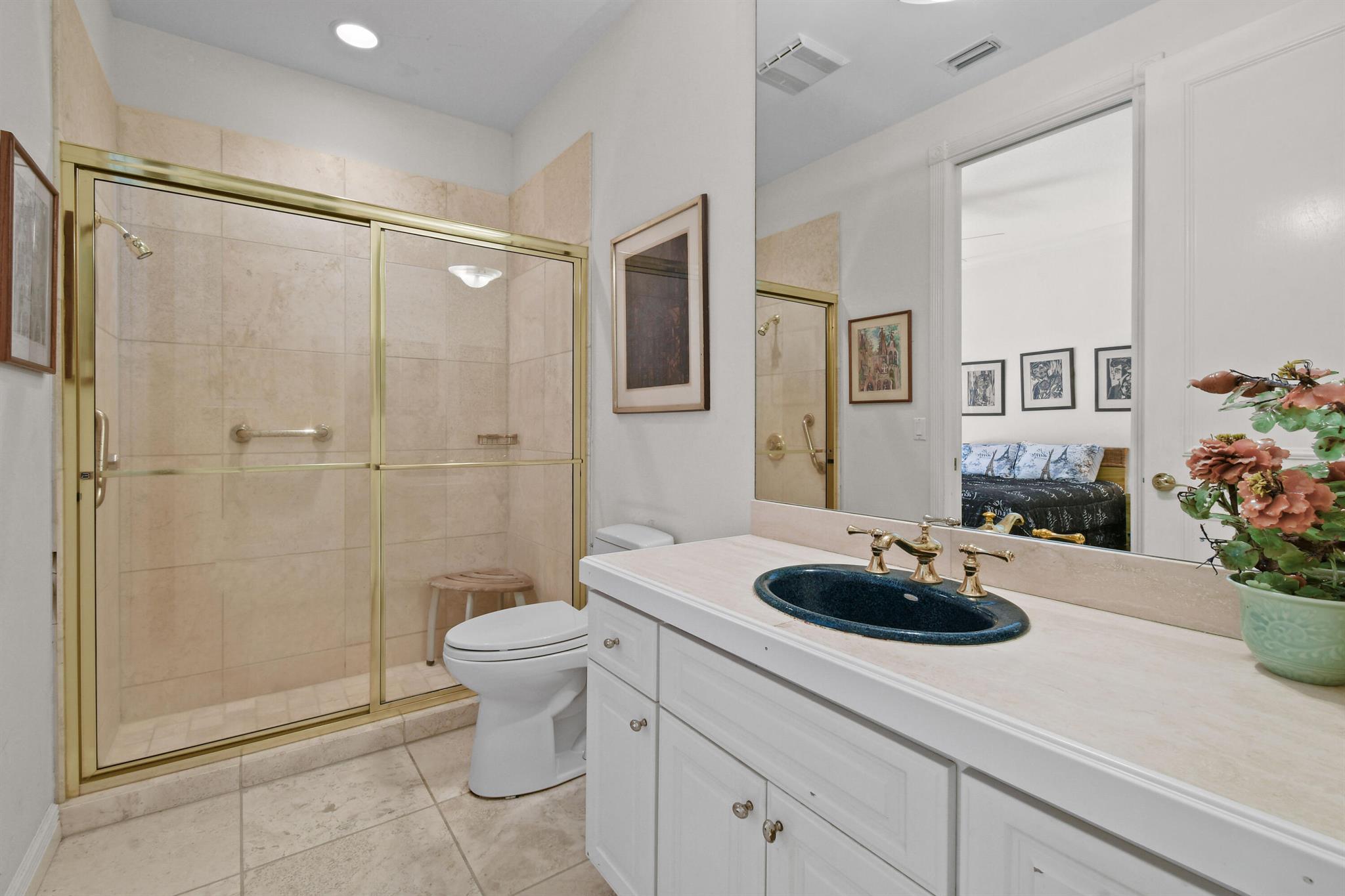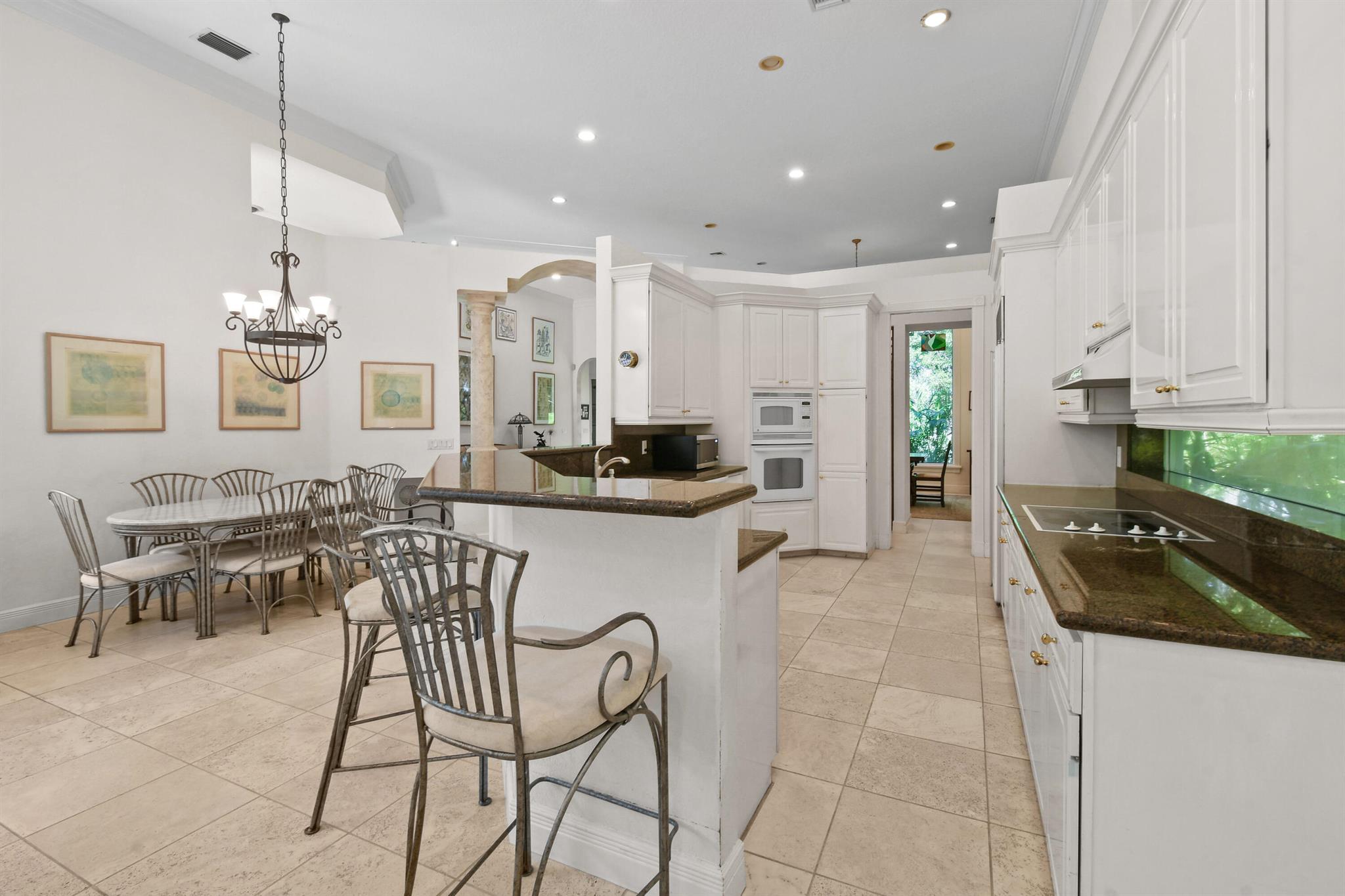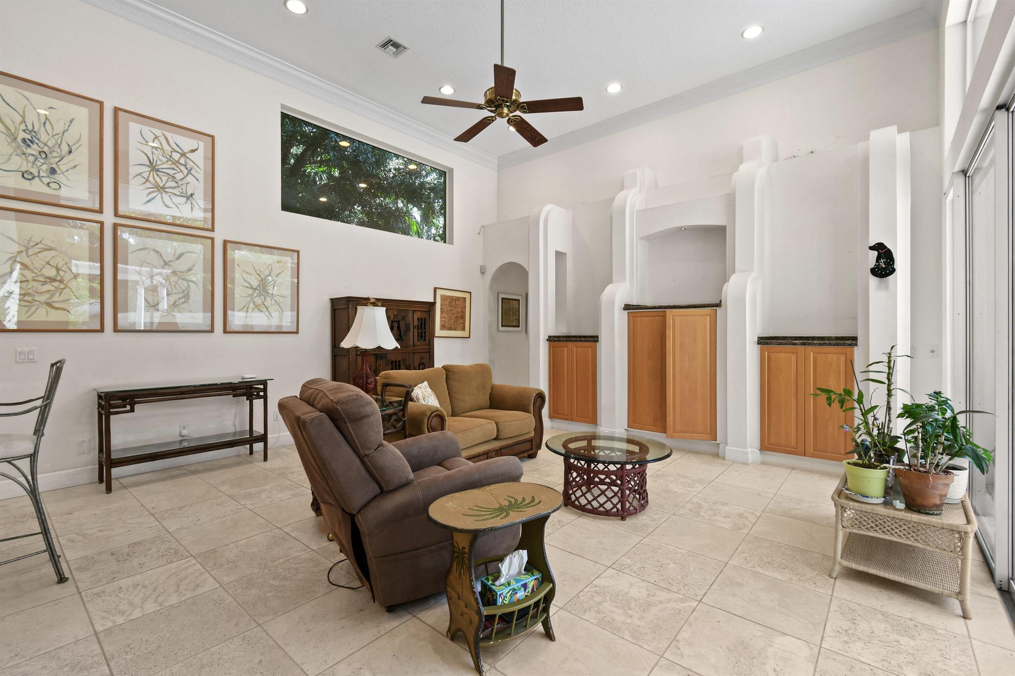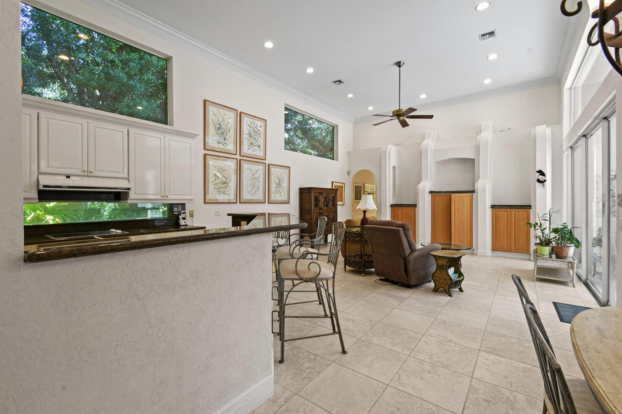 This home is in Old Trail located in Ranch Colony, a gated luxury community. An acre-plus courtyard home featuring a hand-carved imported doors. Three bedroom and three baths, with a guest house surrounding the pool with a spa. Fourteen-foot ceilings, a formal living room, a dining room, and a spacious primary bedroom. Enjoy the privacy and security of Old Trail and join Jonathan's Landing's and play three golf courses. New roof in 2022. Drive 25 minutes to the beach and 40 minutes to Palm Beach Airport.