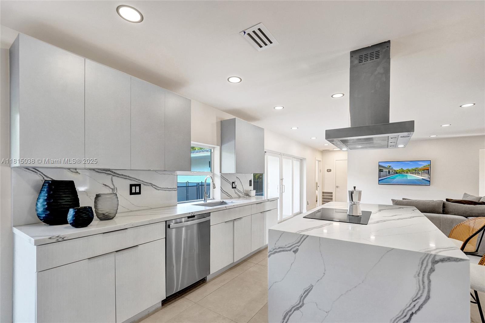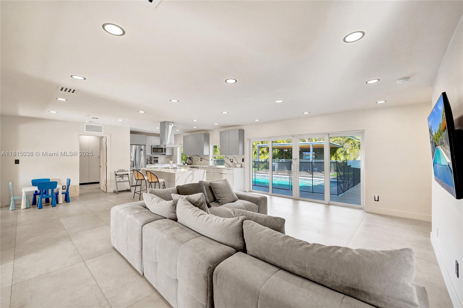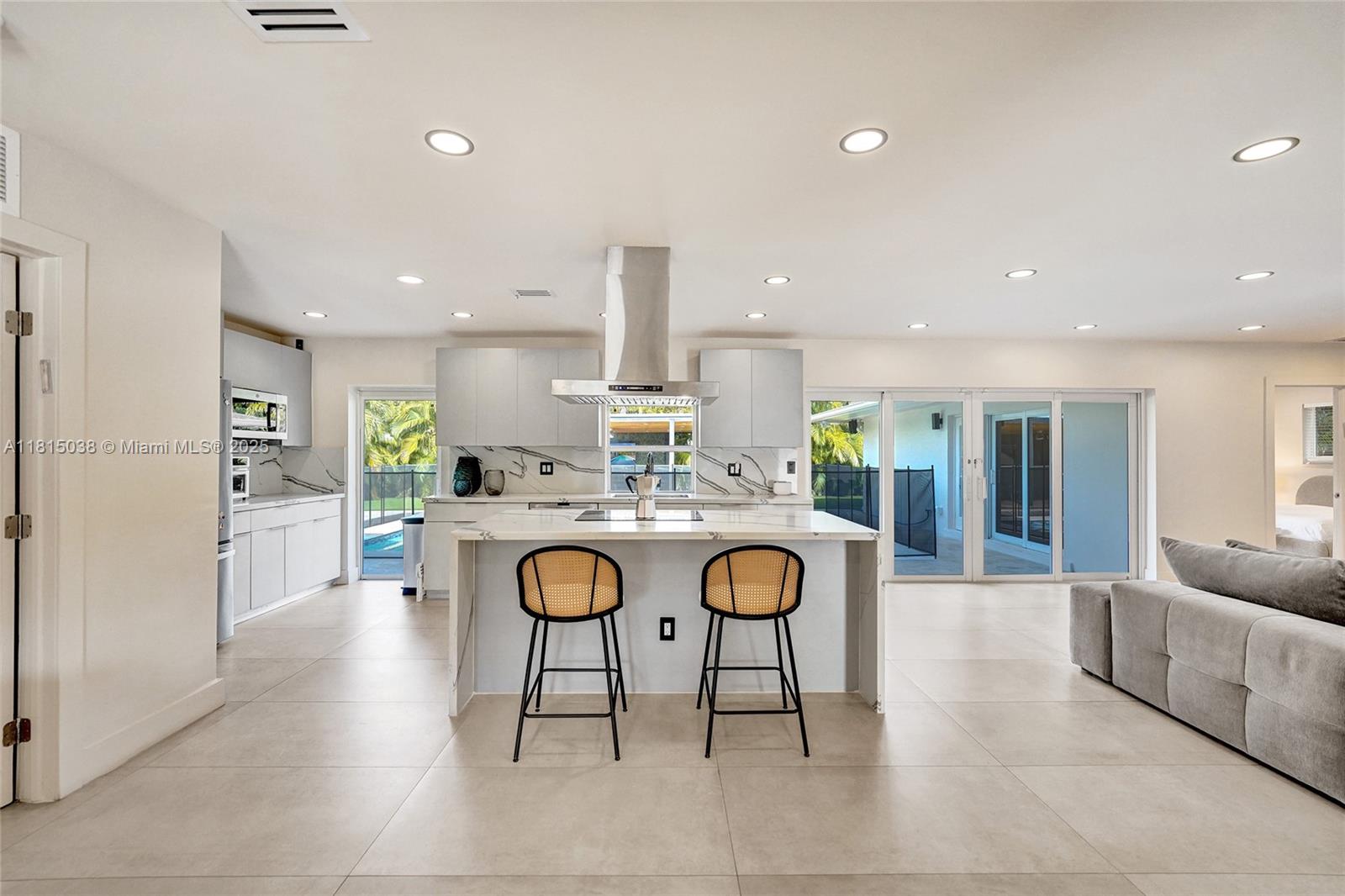 This stunning 4-bedroom, 3.5-bath home is move-in ready and has been tastefully renovated throughout, including fully remodeled bathrooms, kitchen, and living spaces with top-of-the-line upgrades. Boasting over 2,100 sqft, the backyard is a true oasis with multiple outdoor entertainment areas, a brand-new heated pool, and a cabana bath. Additional features include a new washer and dryer, A/C, electric water heater, impact windows, sound system, Tesla charging station, security cameras, custom-made closets, pantry, artificial grass, a new gazebo, and updated plumbing with plans and permits. Nestled in a beautiful gated community, this is truly a one-of-a-kind property you don’t want to miss!