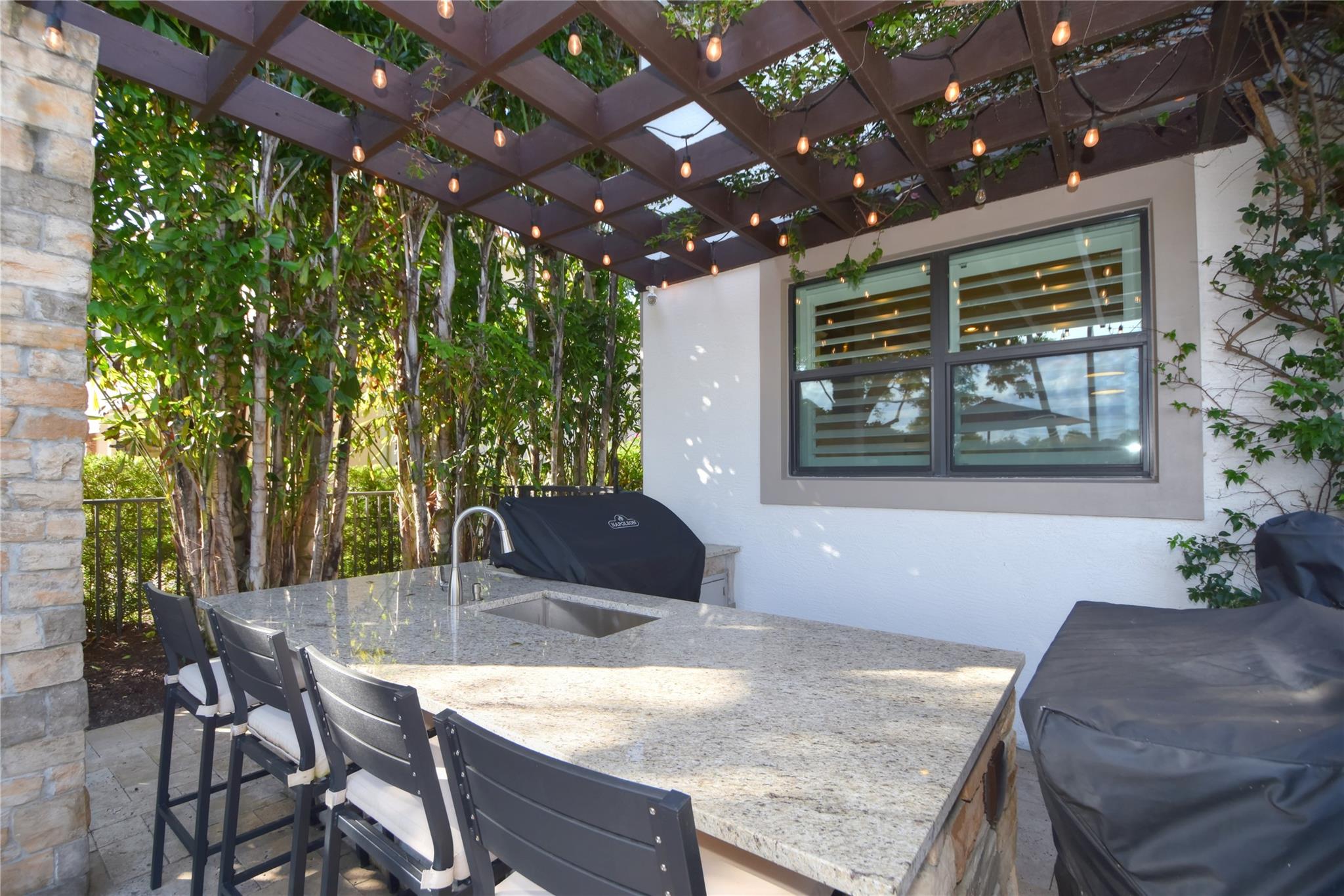 Nestled on the golf course & water in Parkland Golf & Country Club this exquisite home is an entertainers paradise with a heated, LED lighted pool & new summer kitchen. The 5BR/5.5BA/3CAR is a masterclass in luxury with a meticulously designed living space, custom closets & marble floors. The open plan includes a gourmet kitchen with Sub-Zero refrigerator, propane cooktop, large center island & hosting-style bar with ice machine. The primary bedroom is its own sanctuary with office, balcony & a spa inspired en-suite. Control4 with speakers throughout, custom lighting features, security system, impact doors & windows and fenced professionally landscaped yard with mosquito misting system are just a few of the many upgrades included in this Bolano model. Continued in broker remarks.