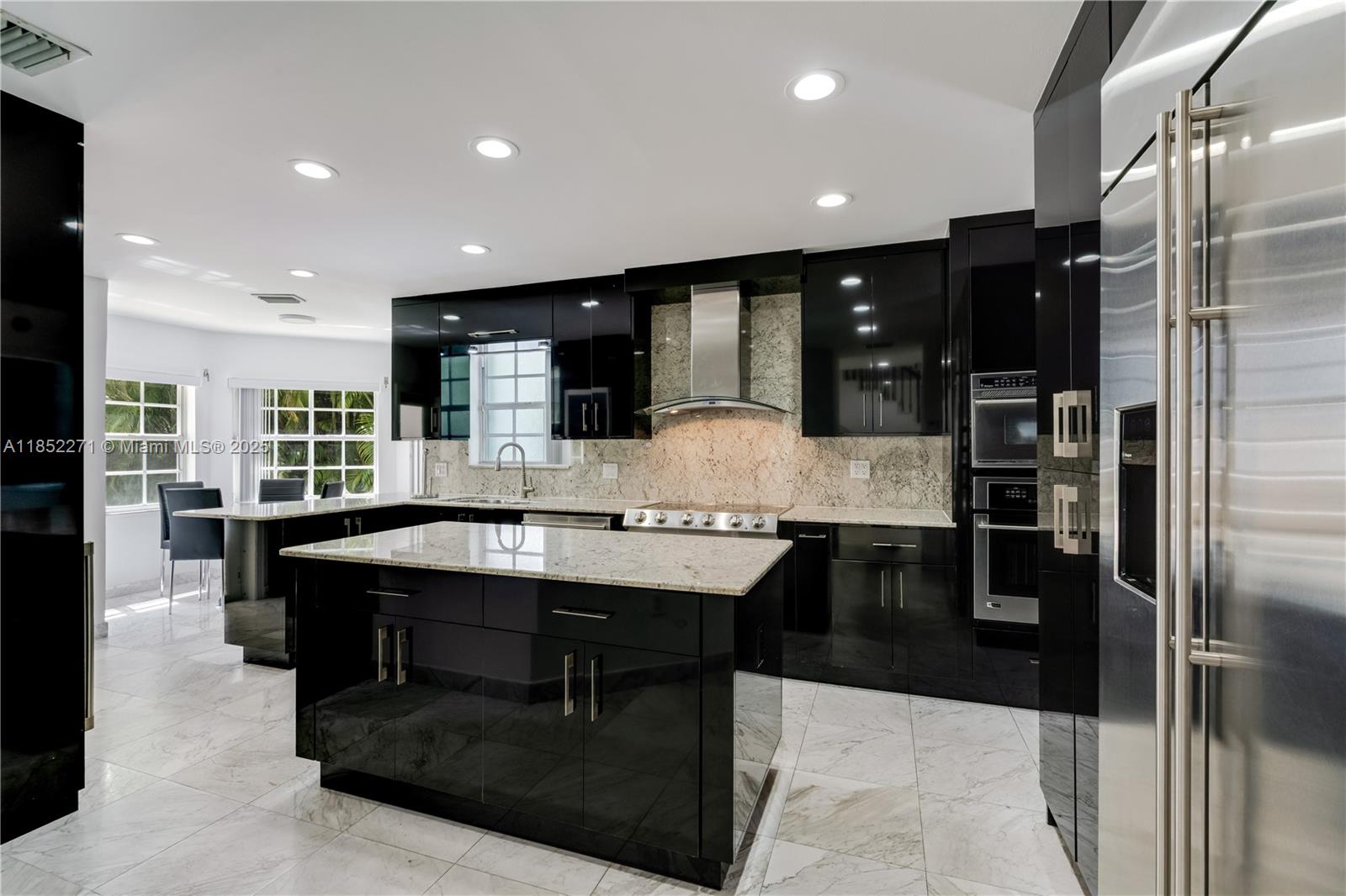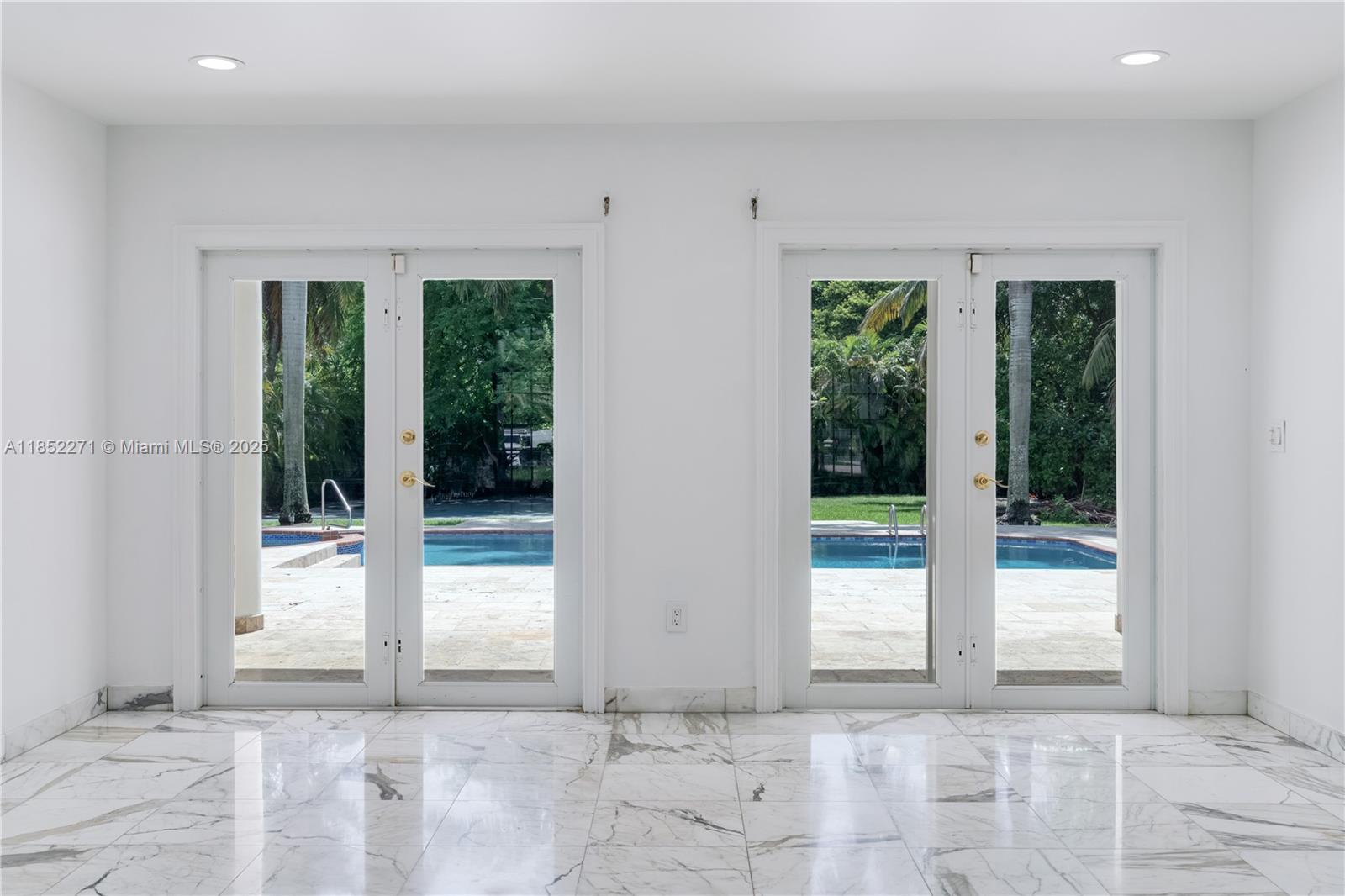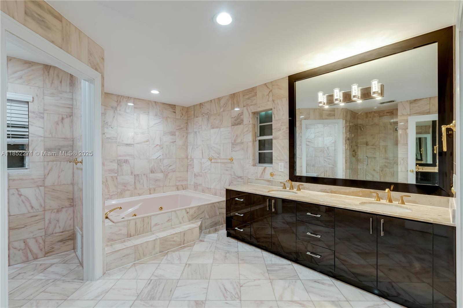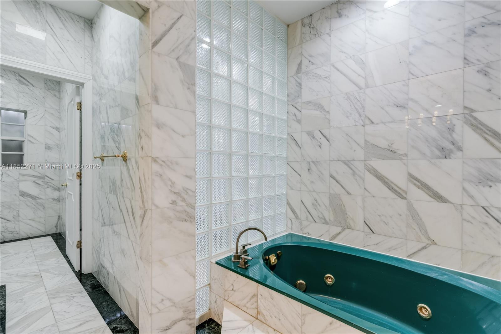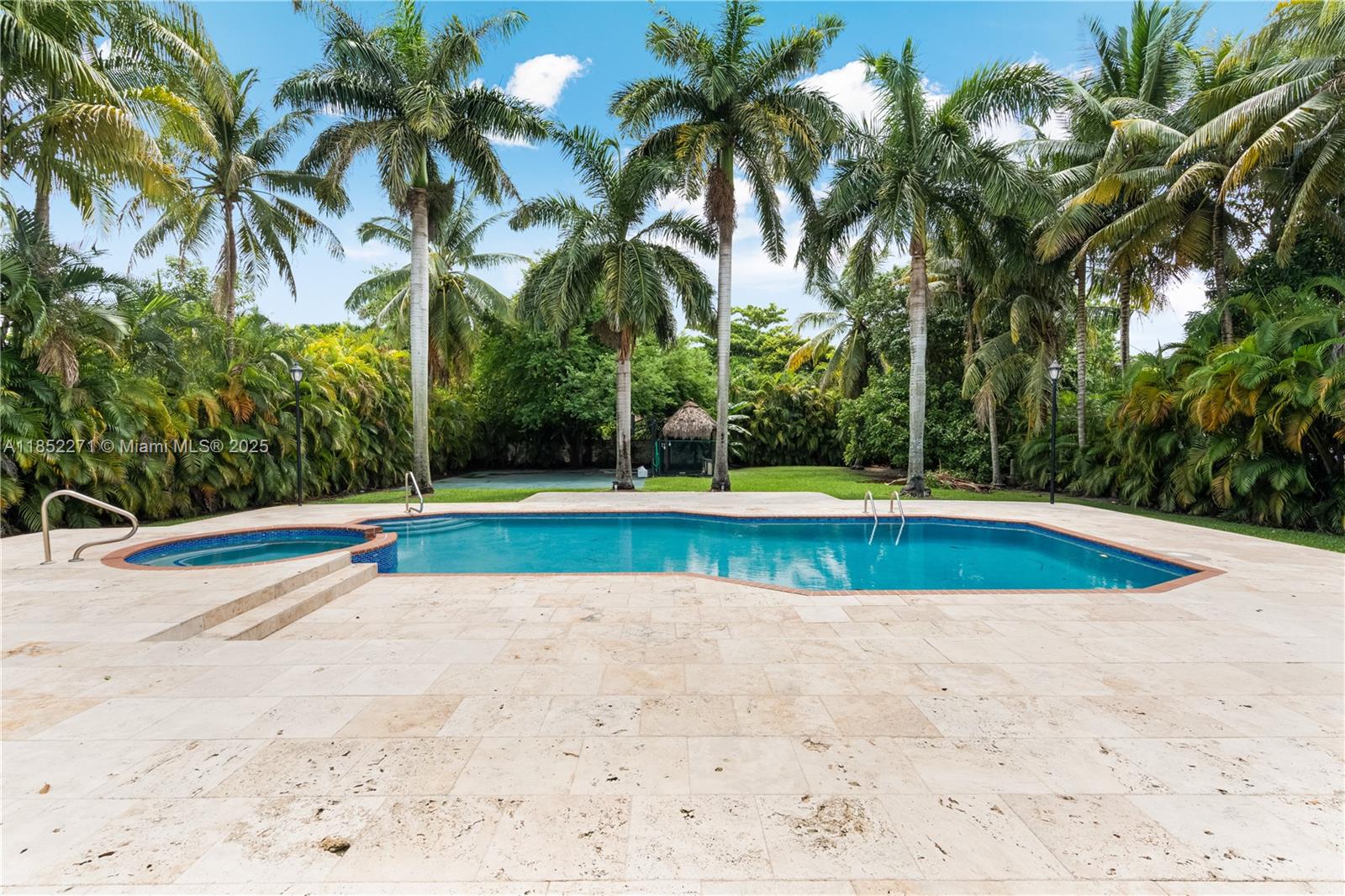 This unique residence is set behind private gates on a spacious 30,492 s/f lot, featuring a stunning circular driveway that leads to a porte-cochere entrance and a 2-car garage. Built on an elevated site, the home offers 6,723 total s/f with 5 bedrooms, 5 bathrooms, and a separate office. Upstairs, you’ll find a Jack & Jill layout and two master bedrooms—both with access to a large shared balcony, perfect for enjoying morning coffee or evening sunsets. Recent updates include a renovated kitchen, new fencing, sprinkler system, and recent tenting. The pool has been newly resurfaced with fresh plaster and includes a jacuzzi for added relaxation. Interior features include elegant Carrera marble floors, grand entrance columns, and a electric generator. Located near top-rated A+ schools.