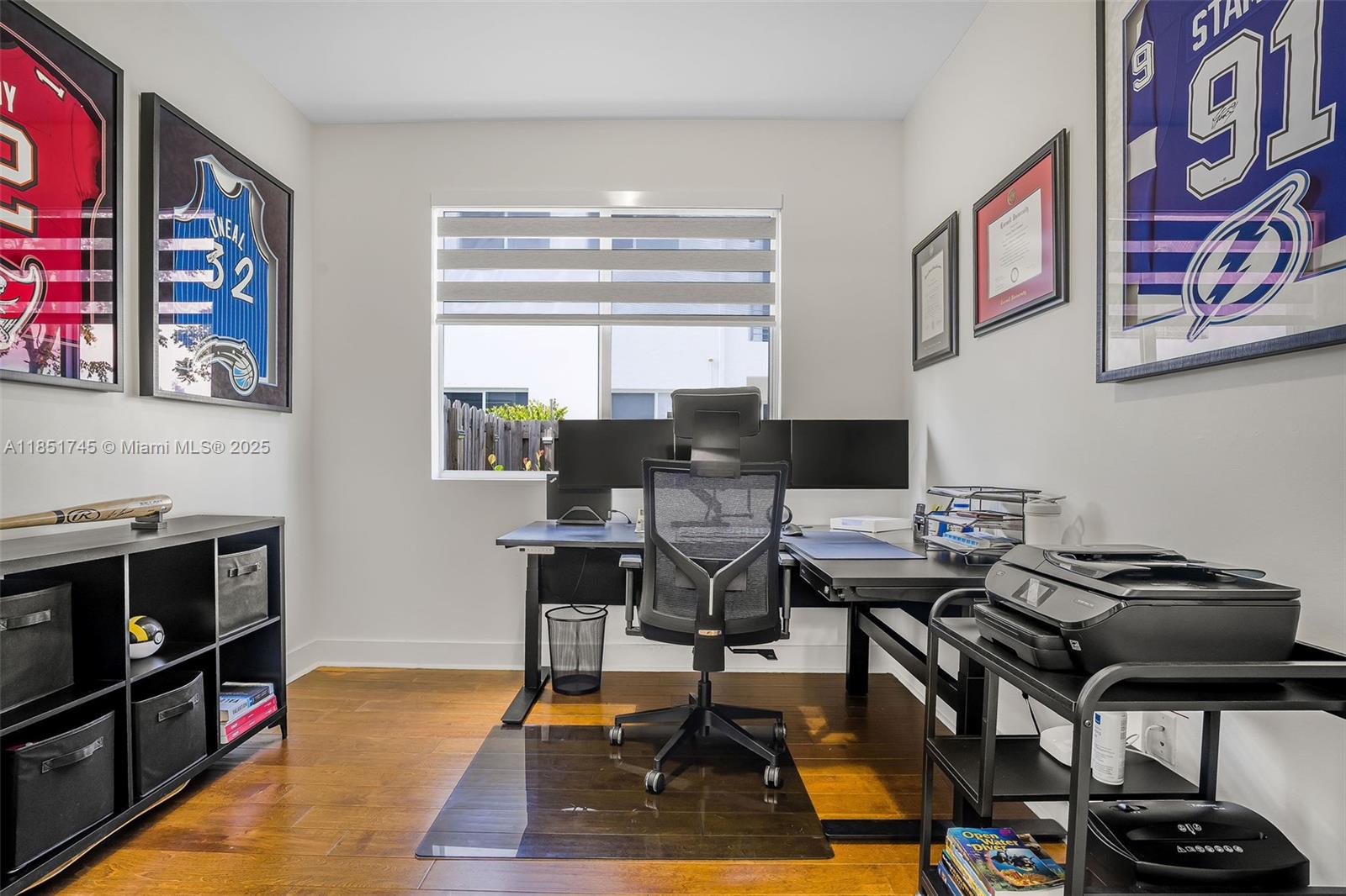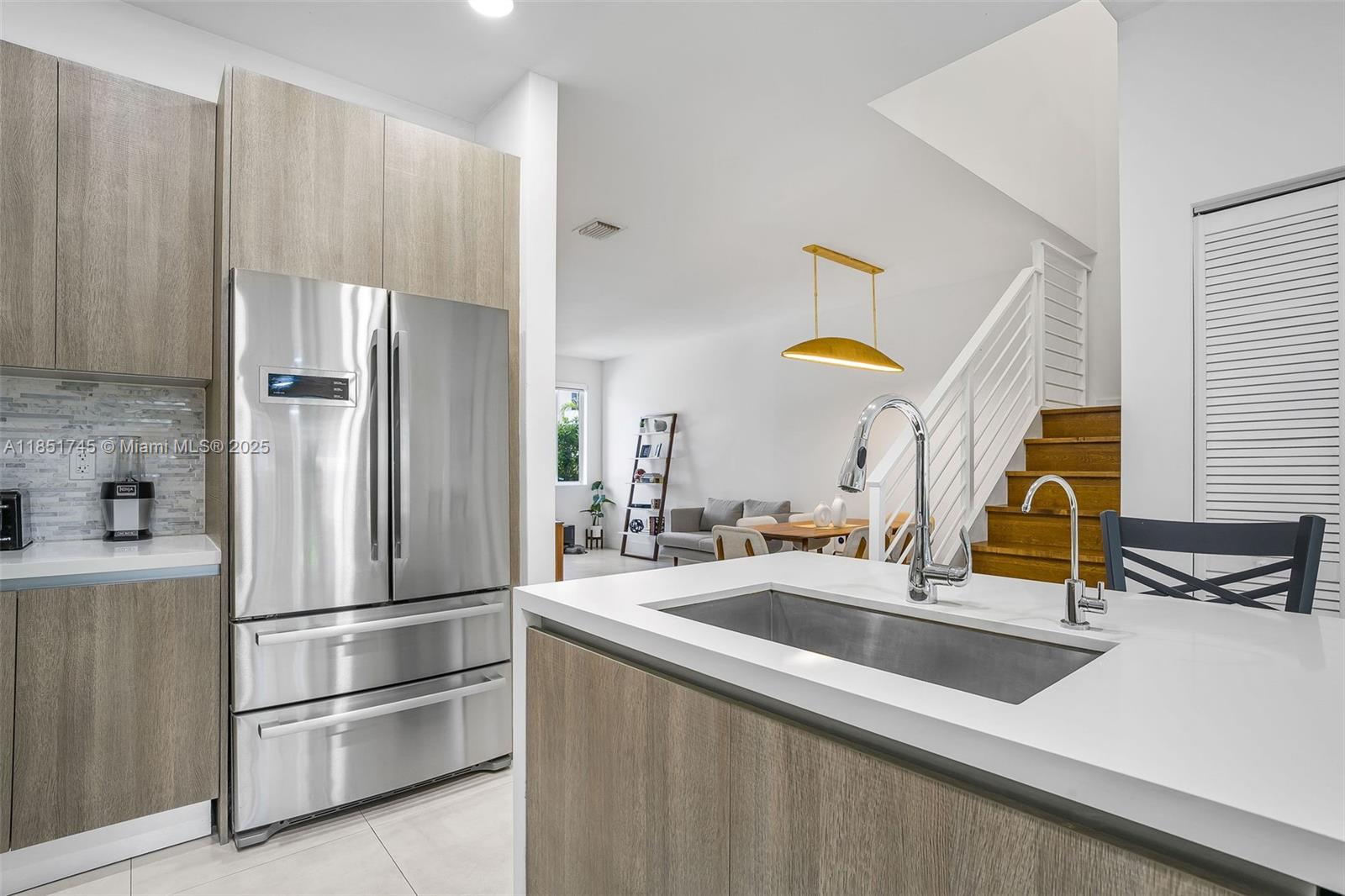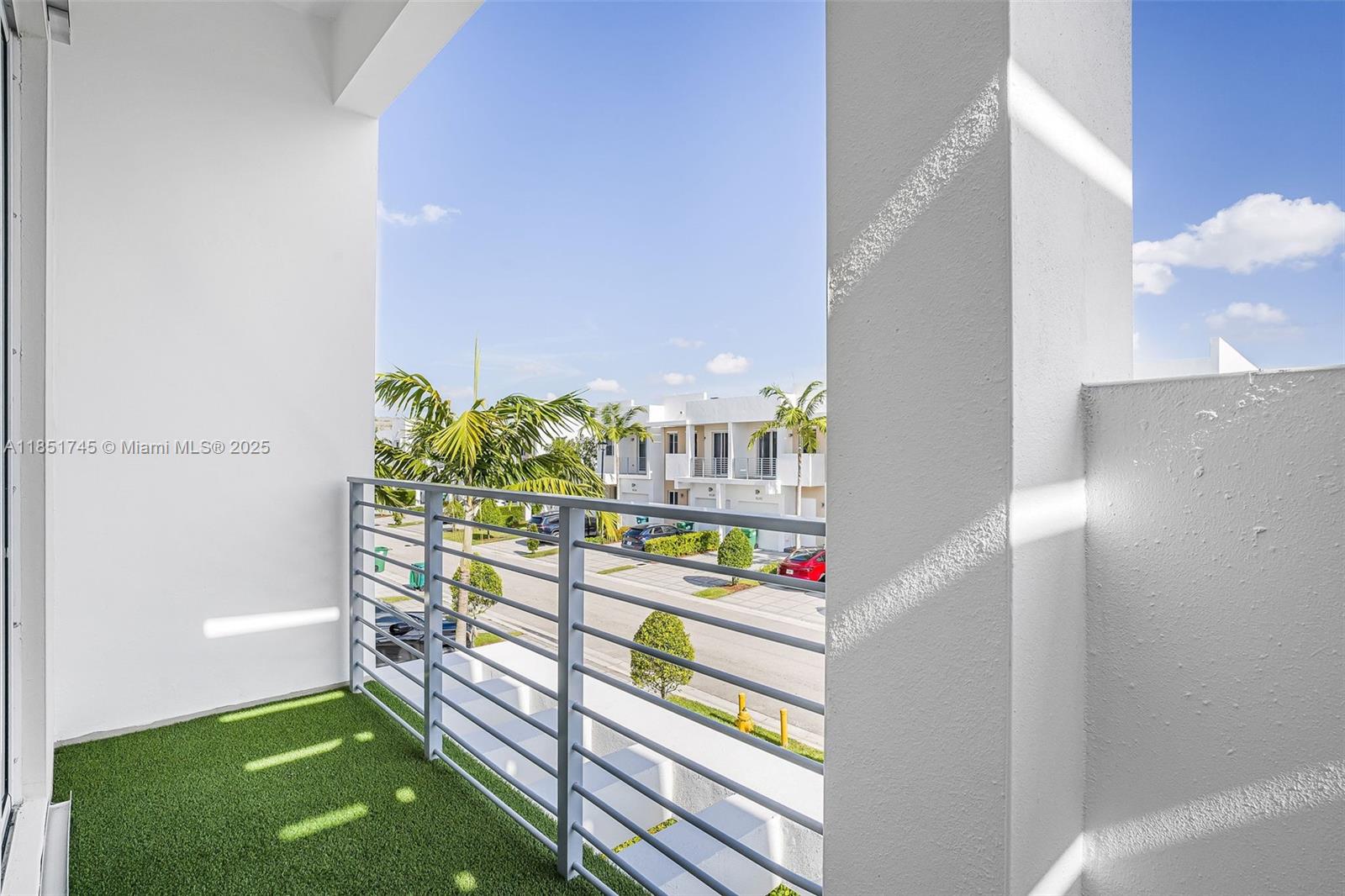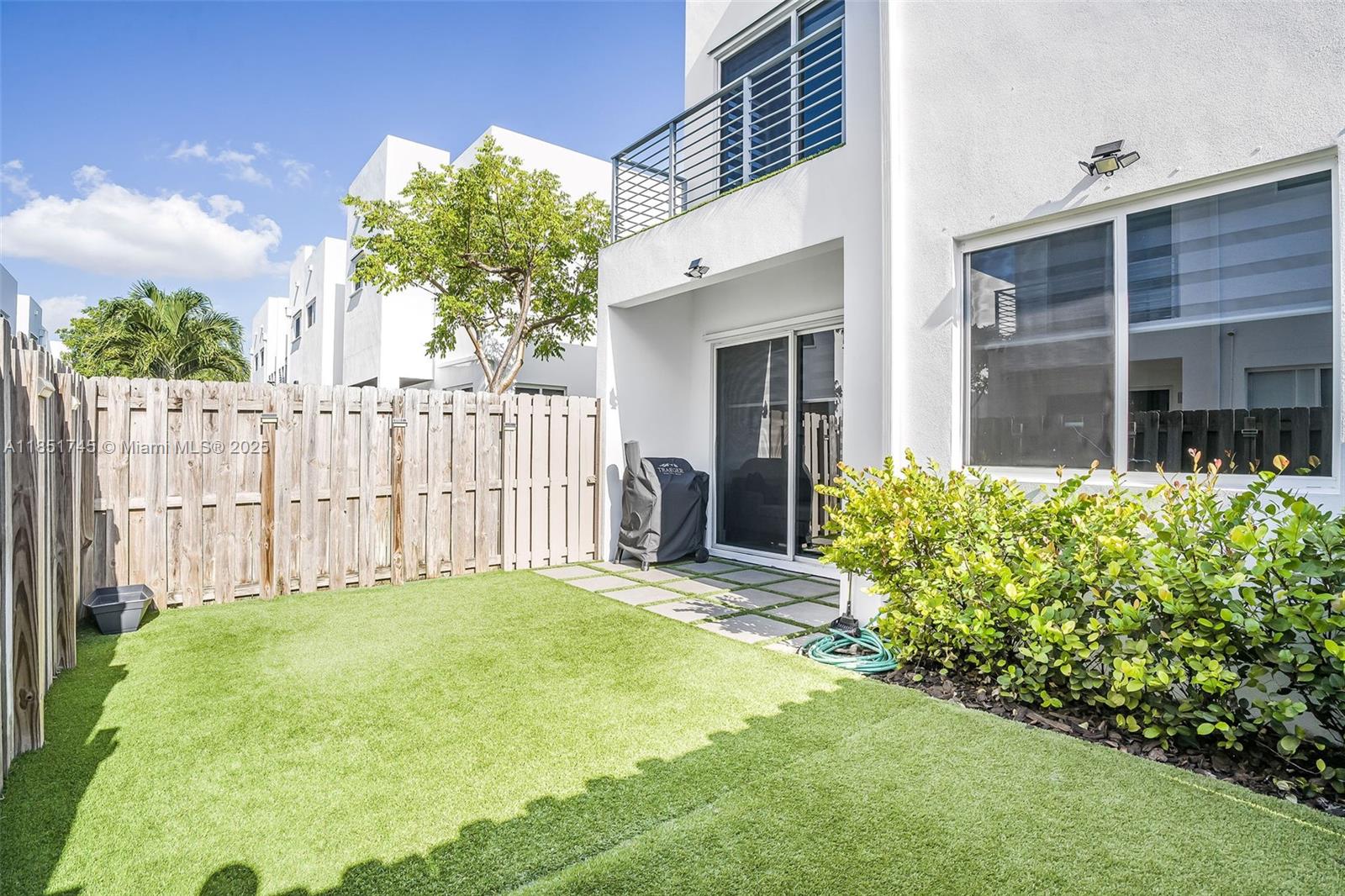 Two-story corner townhome located in the gated community of Neovita in Doral. Built with concrete construction and modern design, this home offers an open layout and a kitchen with contemporary finishes, a built-in wine cooler and recently updated amenities (e.g., dishwasher, faucet, garbage disposal, RO purifier). The exterior was recently painted, and a new garage door opener was installed. The home includes 4 bedrooms and 3 full bathrooms, with tile flooring on the first level and wood flooring upstairs. The backyard features artificial turf for easy maintenance, and the garage has been set up as a home gym with an EV charger. Bedrooms include dual-layer zebra blinds. HOA dues cover cable, internet, and access to the community clubhouse with a pool, gym, game room, kitchen, and more.