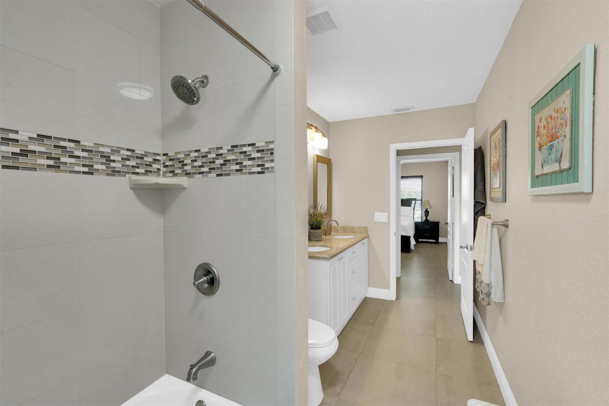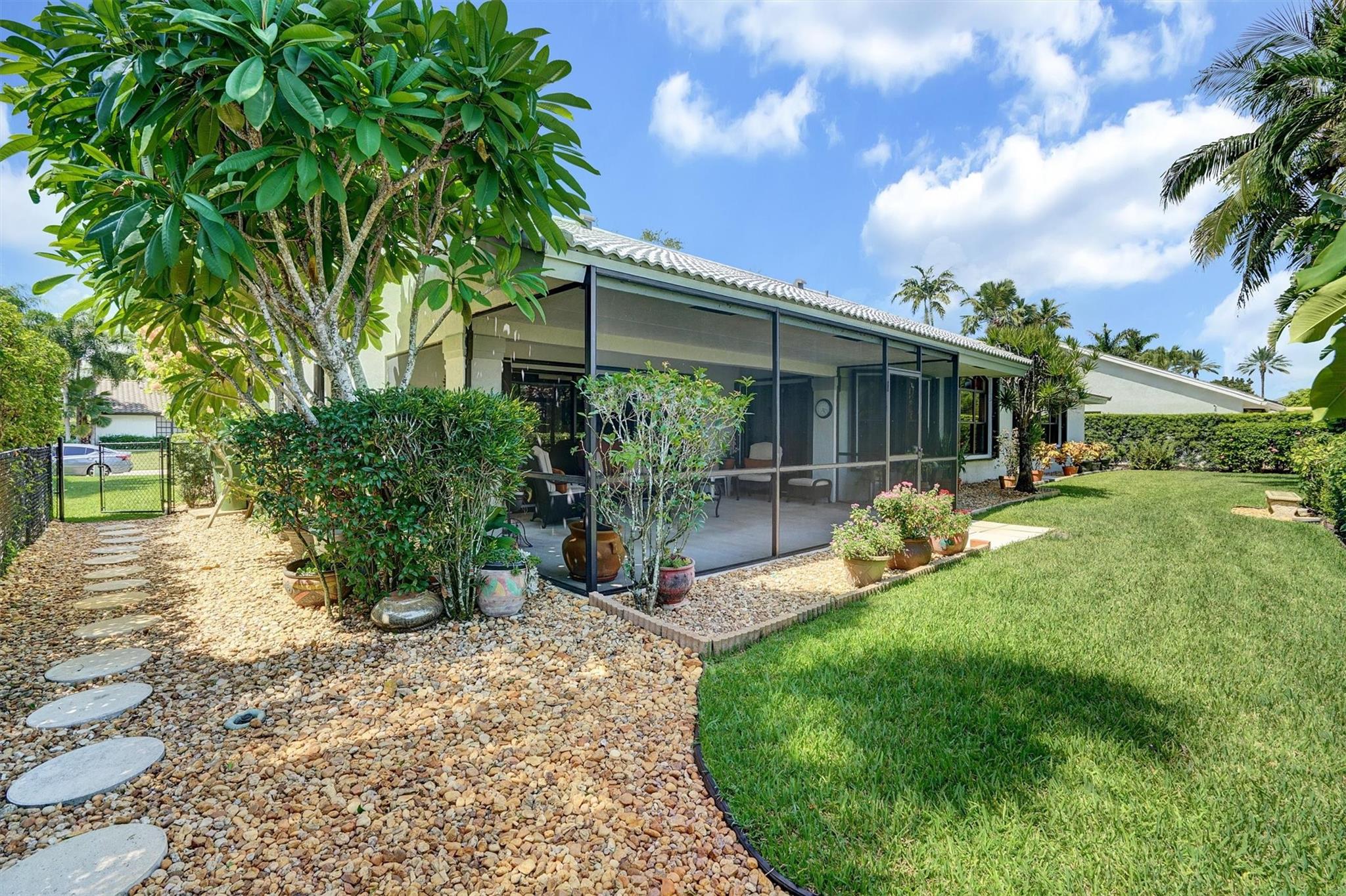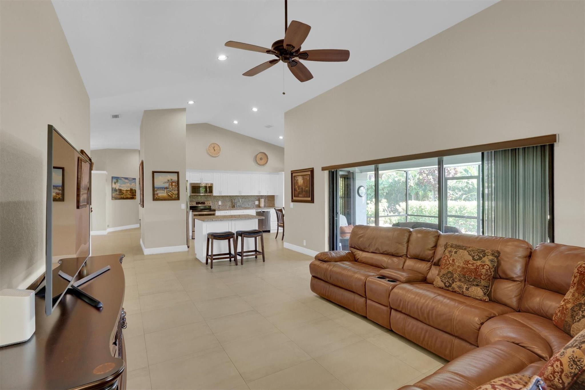 Don't miss out on this beautiful, fully remodeled, move in ready home in the sought-after Pasadena Estates! This beautifully upgraded residence features a spacious open-concept layout with 3 bedrooms and 2.5 bathrooms. Versatile office space can be converted into a full bedroom. Enjoy the elegance of textured walls and ceilings, stunning tile flooring throughout, and a modern design that blends comfort and style. Equipped with accordion shutters for quick and easy storm protection, offering peace of mind. Enjoy year-round living in the spacious enclosed patio, perfect for relaxing or entertaining. Large backyard, professionally manicured grounds surround the home, offering privacy and a beautiful view.