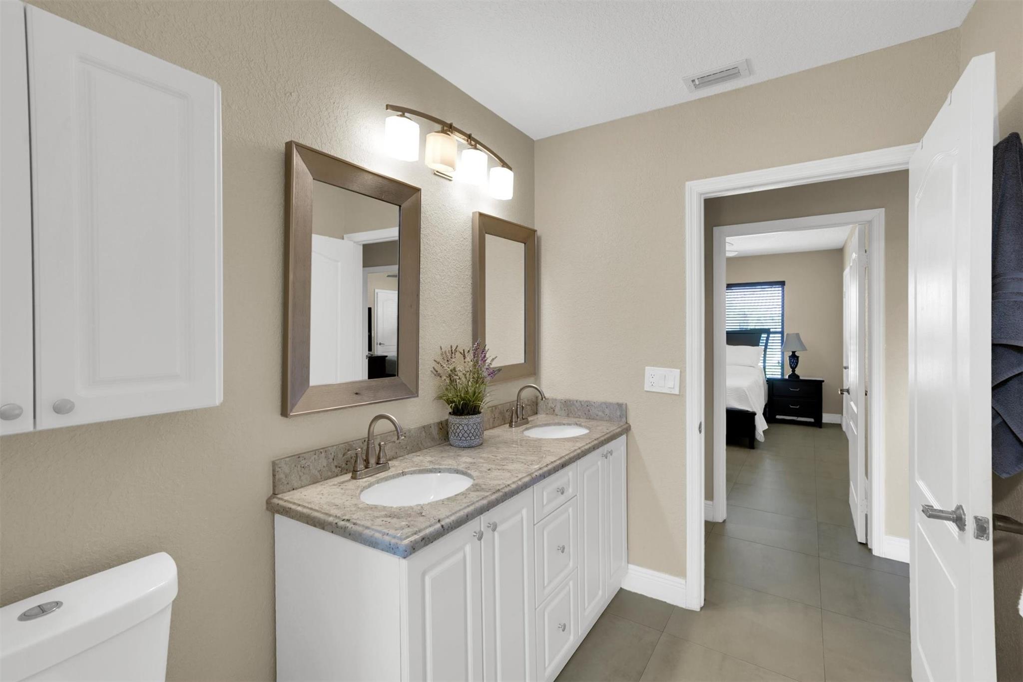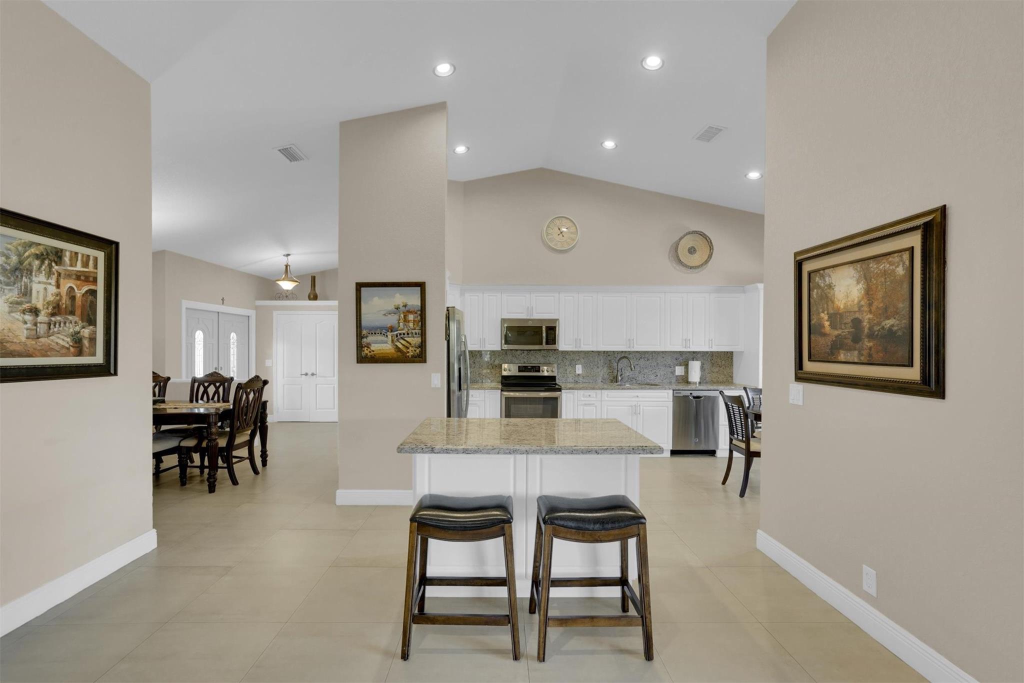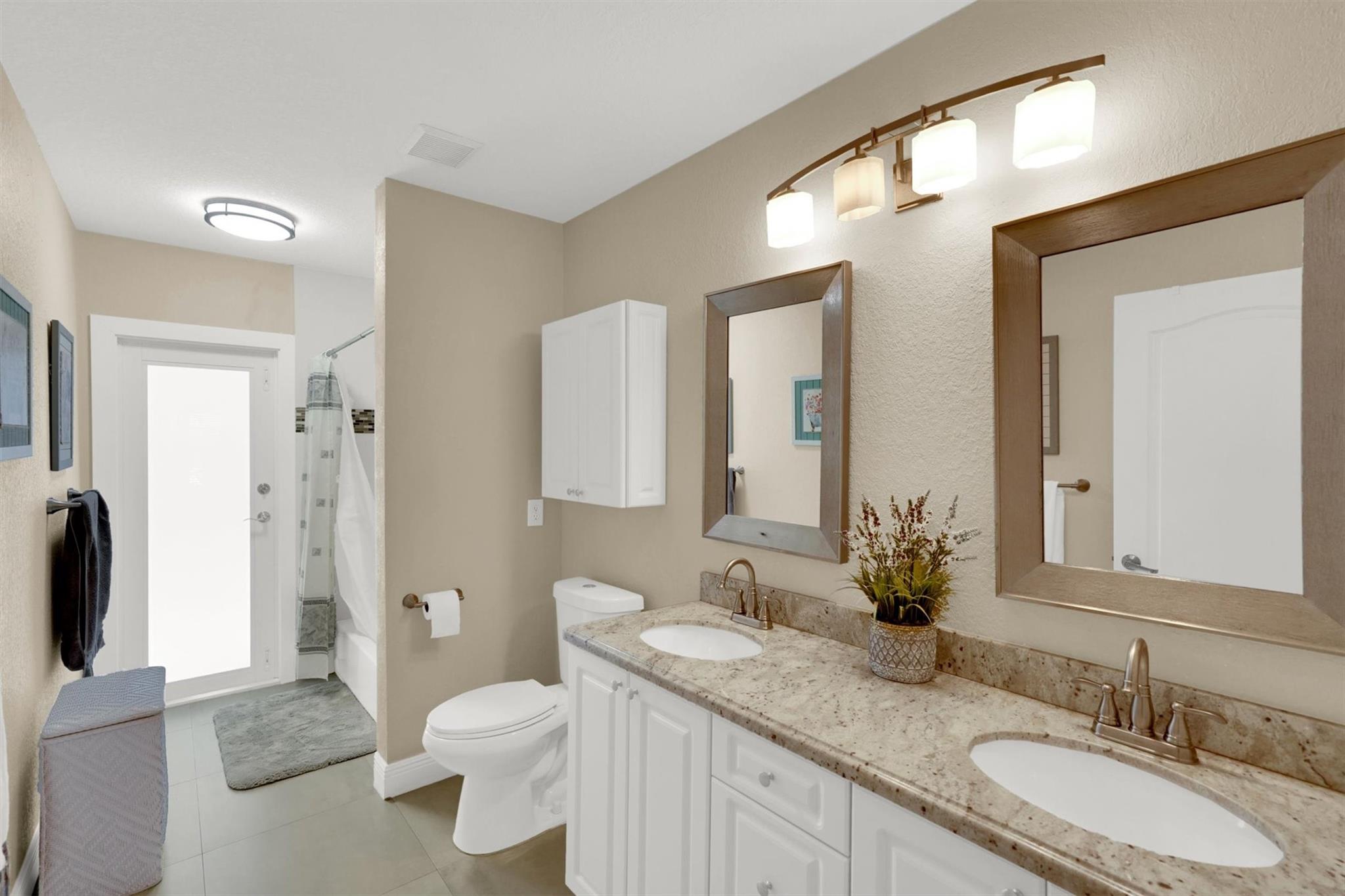 Don't miss out on this beautiful, fully remodeled, move in ready home in the sought-after Pasadena Estates! This beautifully upgraded residence features a spacious open-concept layout with 3 bedrooms and 2.5 bathrooms. Versatile office space can be converted into a full bedroom. Enjoy the elegance of textured walls and ceilings, stunning tile flooring throughout, and a modern design that blends comfort and style. Equipped with accordion shutters for quick and easy storm protection, offering peace of mind. Enjoy year-round living in the spacious enclosed patio, perfect for relaxing or entertaining. Large backyard, professionally manicured grounds surround the home, offering privacy and a beautiful view.