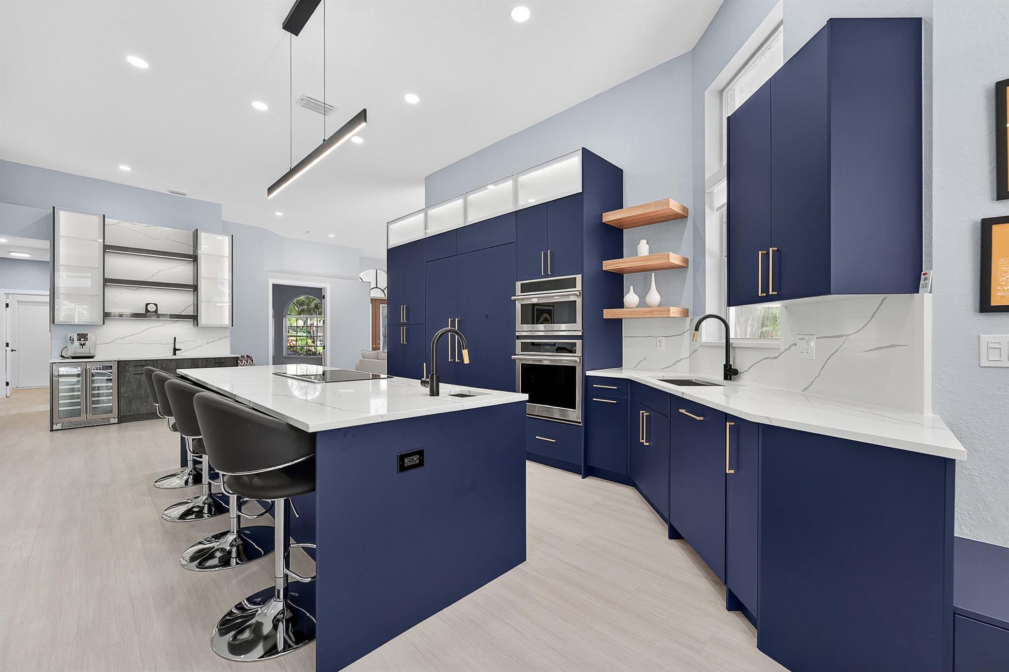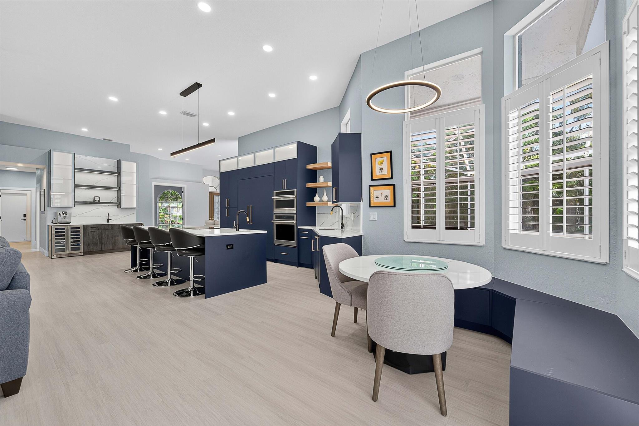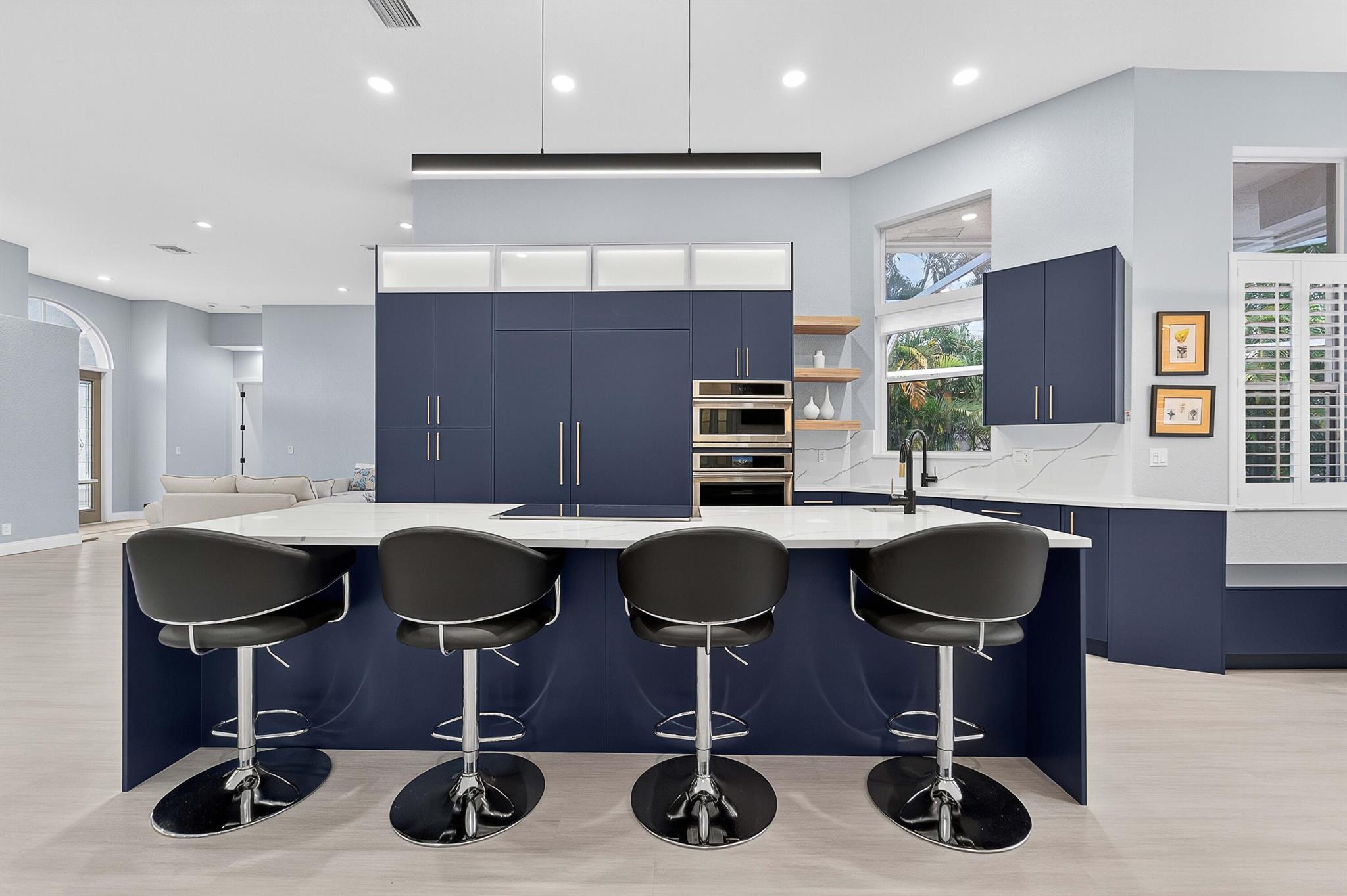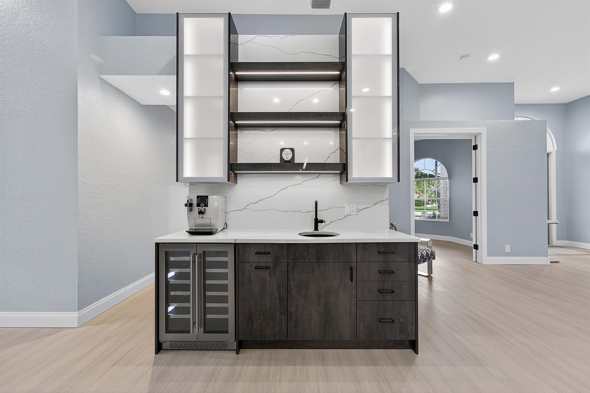 Step into your private oasis! This home is situated on an expansive 1/3-acre corner lot in the heart of Stonebridge Country Club. The stunning single-story masterpiece offers the perfect blend of luxury, privacy, and comfort. From the moment you arrive, the grand circular driveway welcomes you to a beautifully reimagined residence where every detail has been thoughtfully curated. Completely renovated from top to bottom, this 4-bedroom, 3-bath home features a show-stopping designer kitchen with top-of-the-line appliances, high-end custom cabinetry, quartz countertops, a sleek coffee bar with elegant recessed lighting throughout. Multiple spaces for relaxation include formal living room, dinning and family room. The spa-inspired bathrooms boast premium finishes and stylish touches that