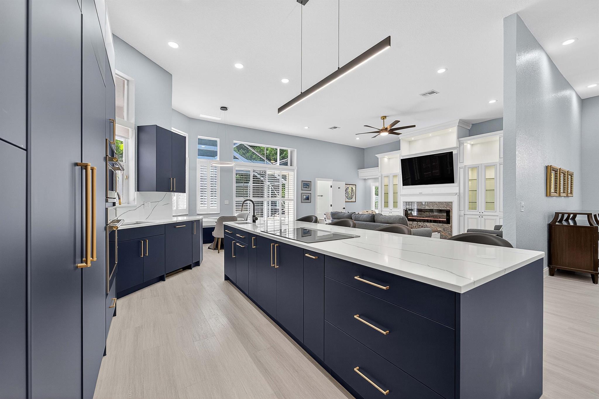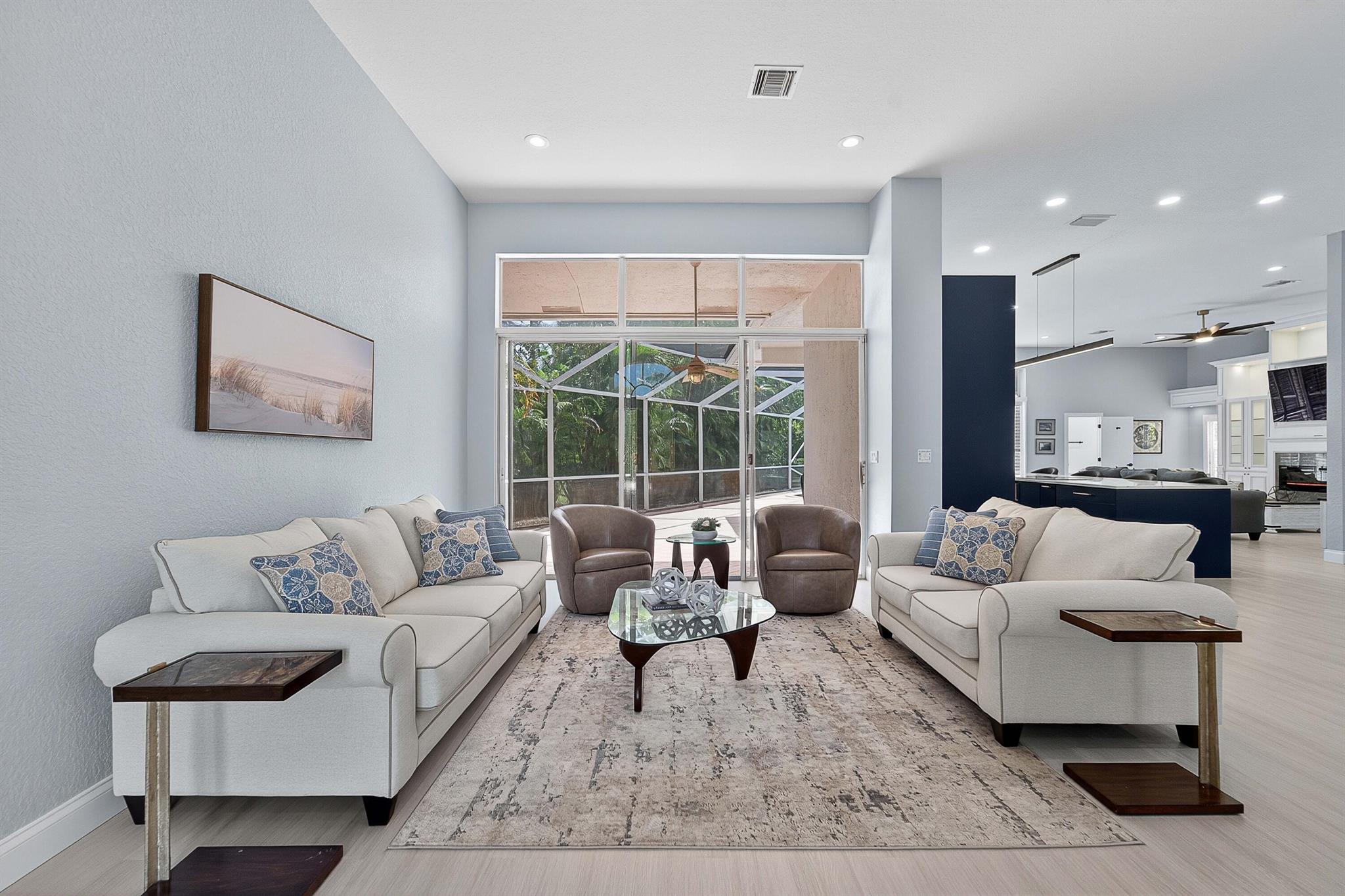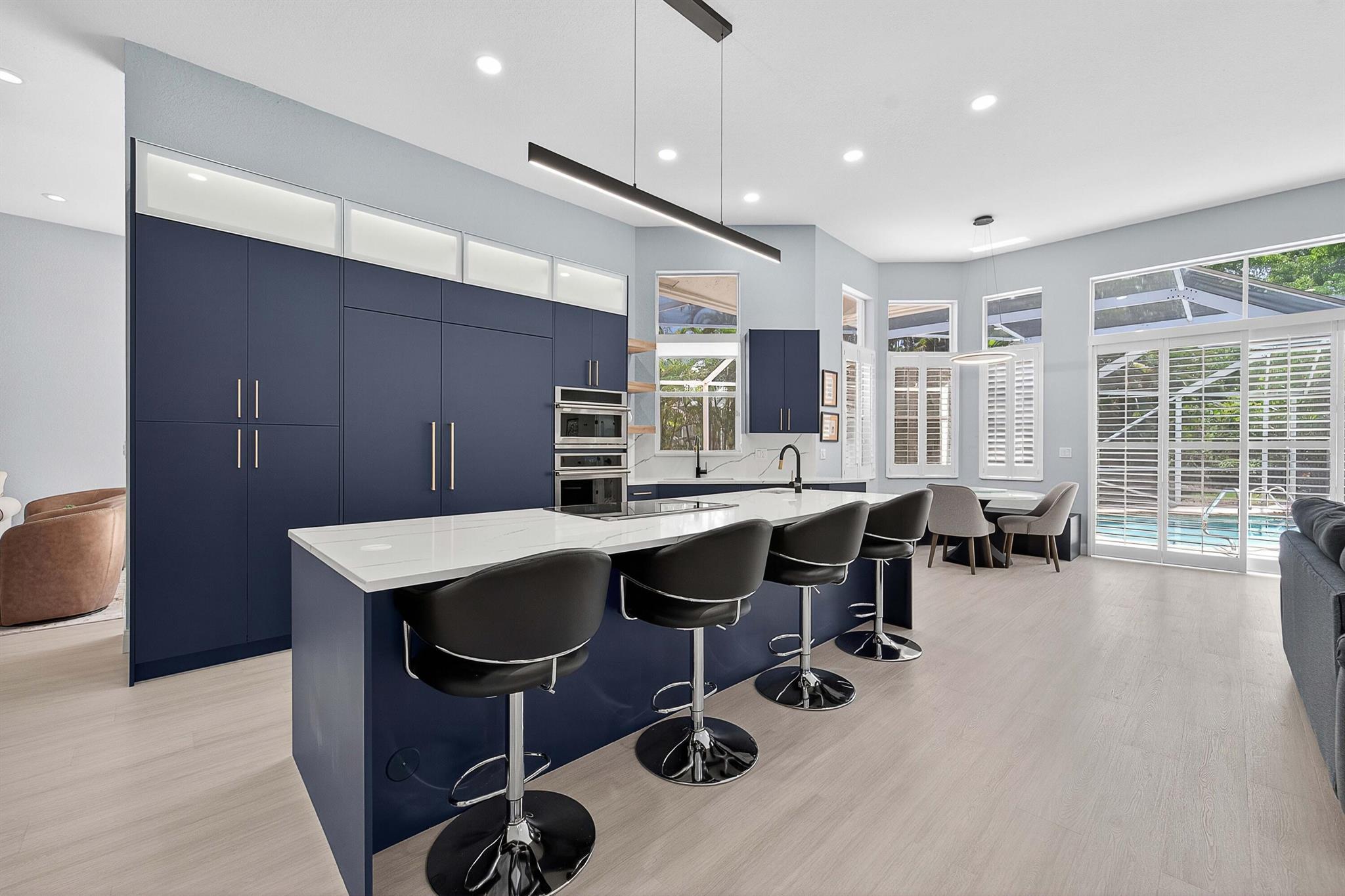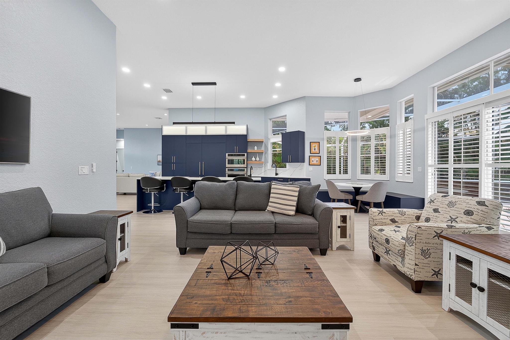 Step into your private oasis! This home is situated on an expansive 1/3-acre corner lot in the heart of Stonebridge Country Club. The stunning single-story masterpiece offers the perfect blend of luxury, privacy, and comfort. From the moment you arrive, the grand circular driveway welcomes you to a beautifully reimagined residence where every detail has been thoughtfully curated. Completely renovated from top to bottom, this 4-bedroom, 3-bath home features a show-stopping designer kitchen with top-of-the-line appliances, high-end custom cabinetry, quartz countertops, a sleek coffee bar with elegant recessed lighting throughout. Multiple spaces for relaxation include formal living room, dinning and family room. The spa-inspired bathrooms boast premium finishes and stylish touches that