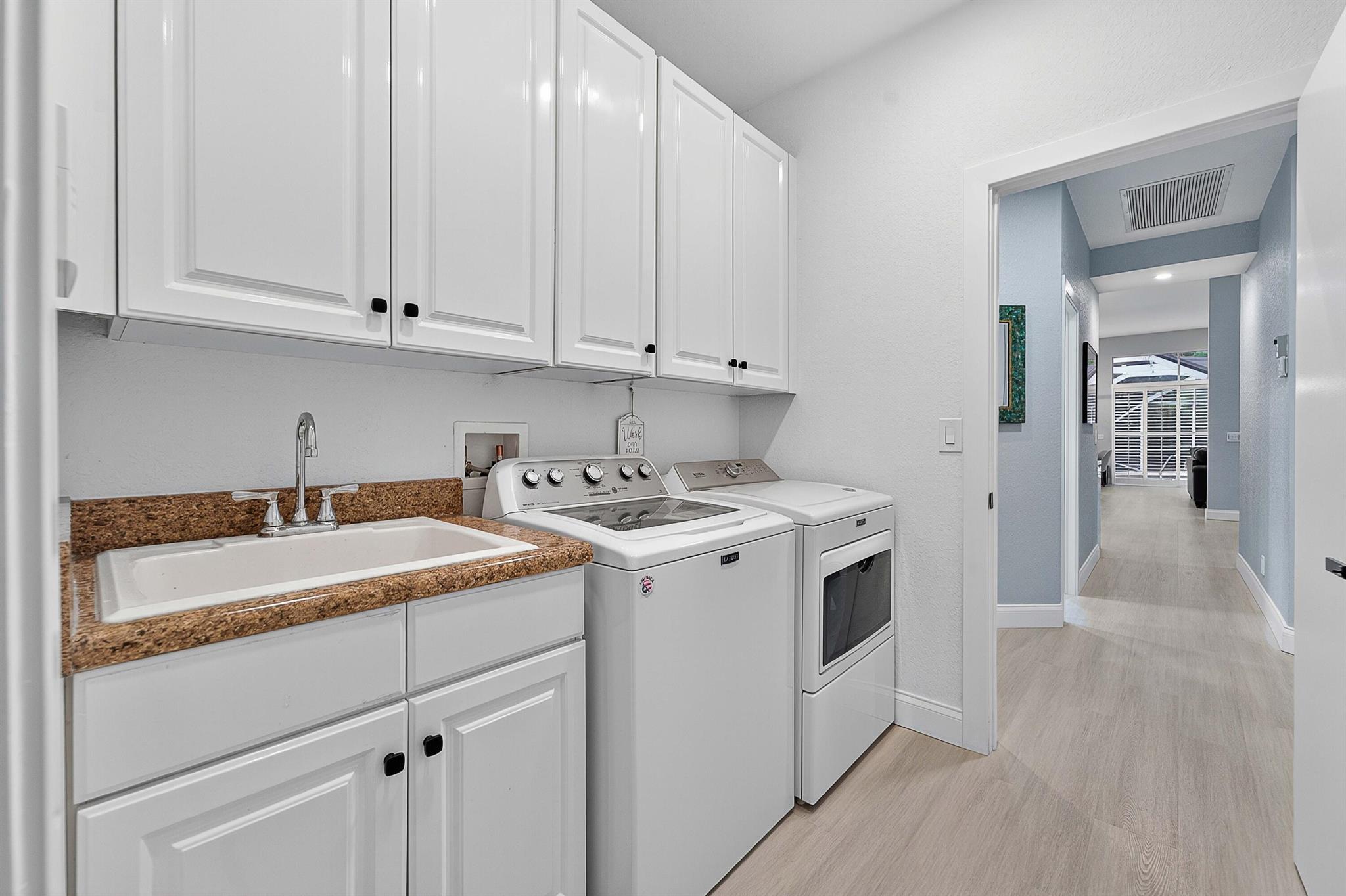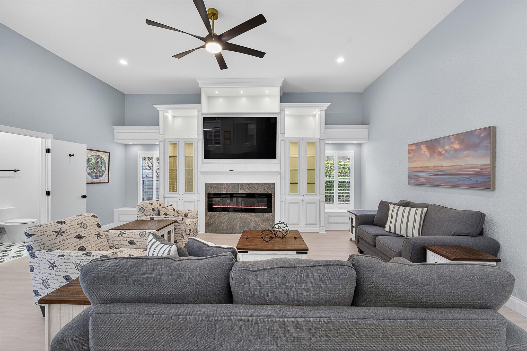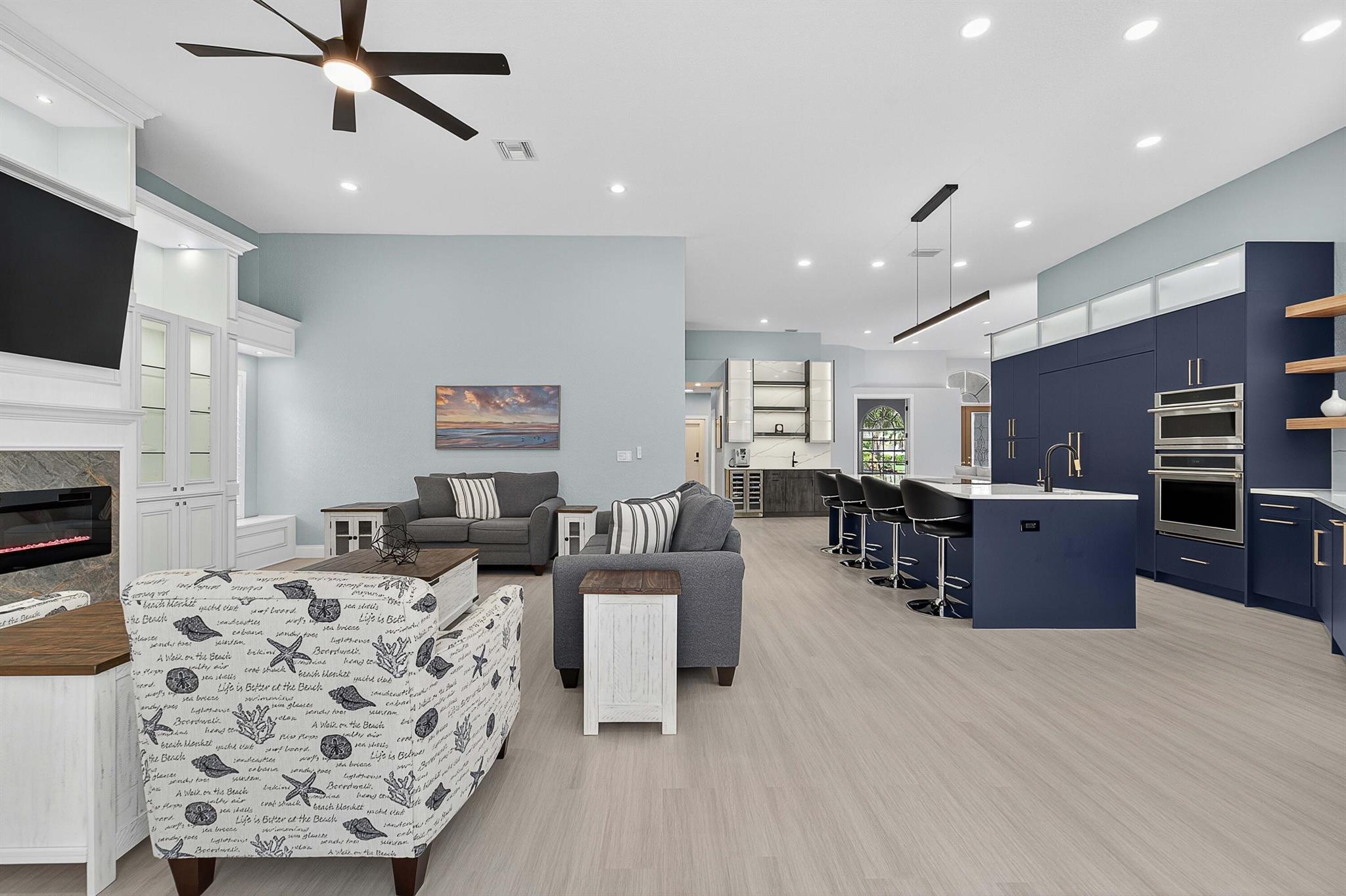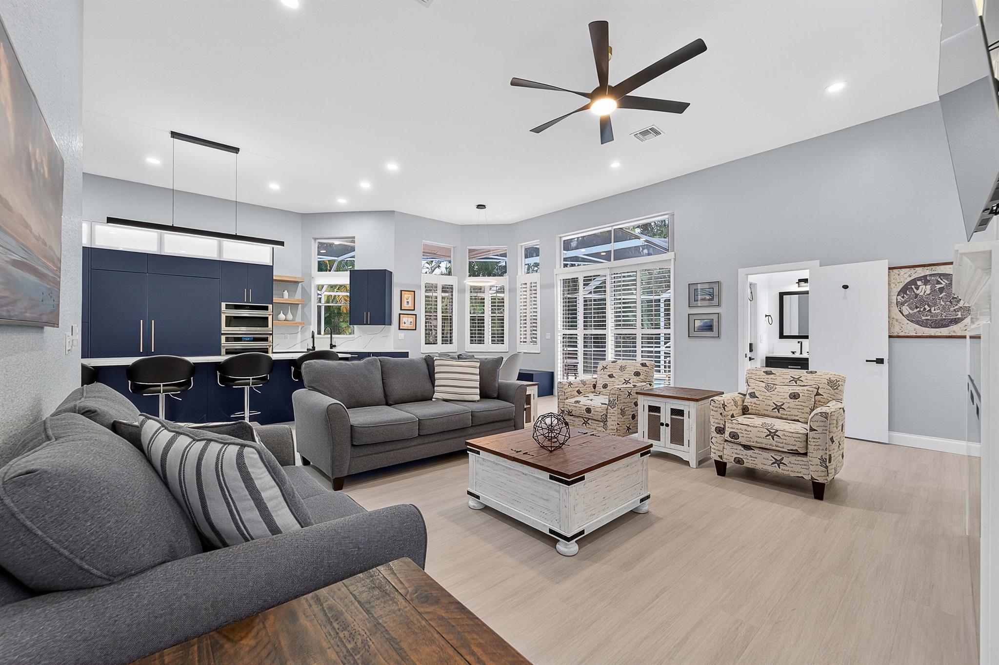 Step into your private oasis! This home is situated on an expansive 1/3-acre corner lot in the heart of Stonebridge Country Club. The stunning single-story masterpiece offers the perfect blend of luxury, privacy, and comfort. From the moment you arrive, the grand circular driveway welcomes you to a beautifully reimagined residence where every detail has been thoughtfully curated. Completely renovated from top to bottom, this 4-bedroom, 3-bath home features a show-stopping designer kitchen with top-of-the-line appliances, high-end custom cabinetry, quartz countertops, a sleek coffee bar with elegant recessed lighting throughout. Multiple spaces for relaxation include formal living room, dinning and family room. The spa-inspired bathrooms boast premium finishes and stylish touches that
