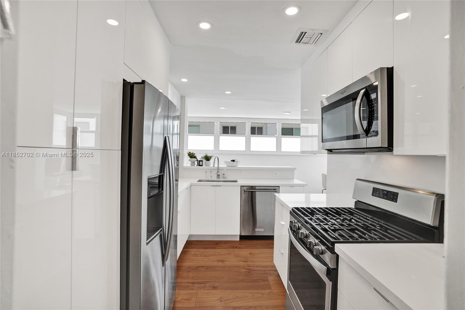 Beautifully updated tri-level townhouse in The Habitat, an exclusive 5-unit boutique community tucked away on a quiet, gated cul-de-sac. Soaring vaulted ceilings and floor-to-ceiling impact windows fill the open-concept living space with natural light. Enjoy seamless indoor-outdoor living with a private garden courtyard, spacious entertaining terrace, and access to a shared community pool. Features include a 2-car garage with tesla charger, updated interiors, and hurricane-impact windows throughout.