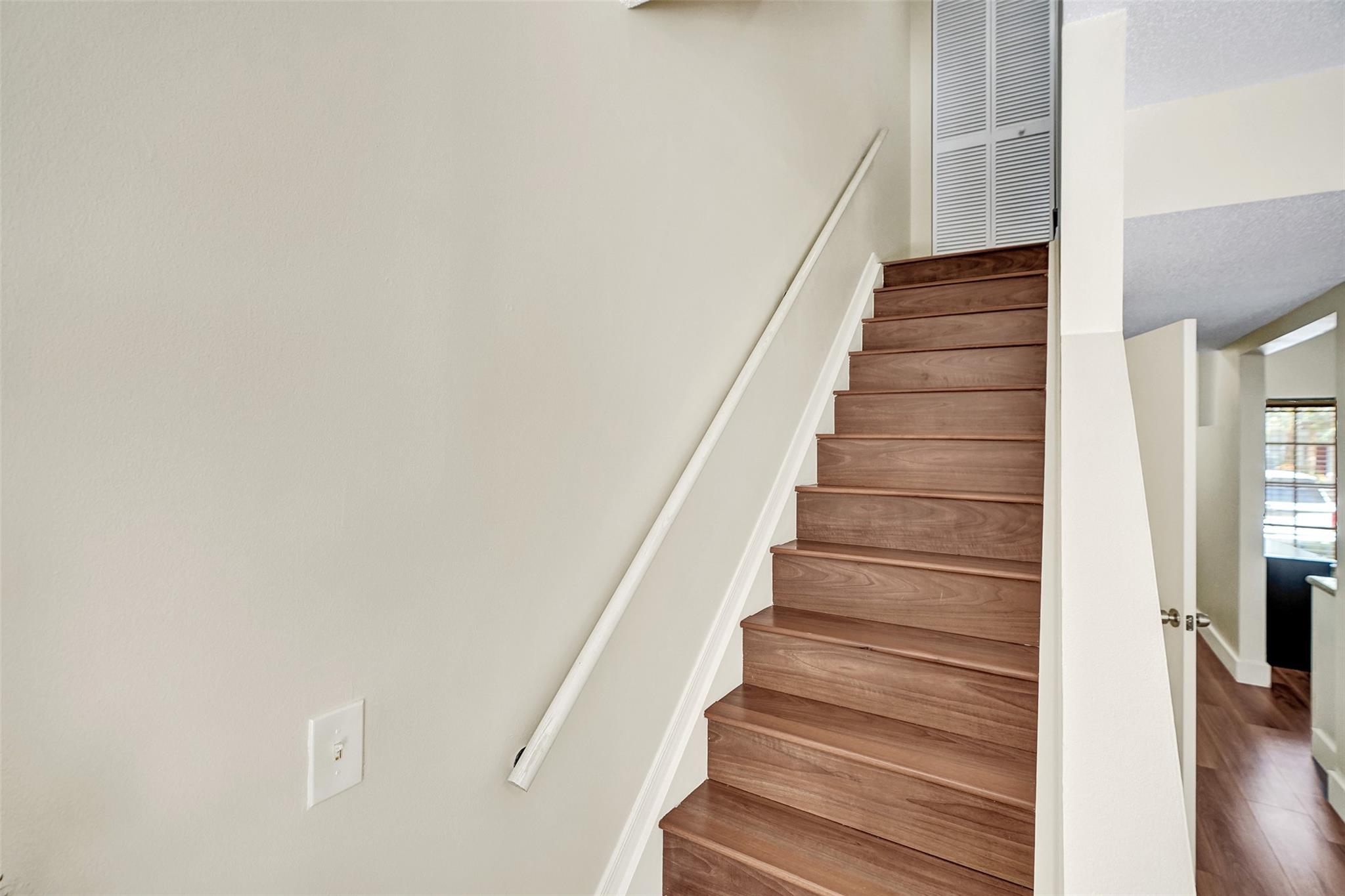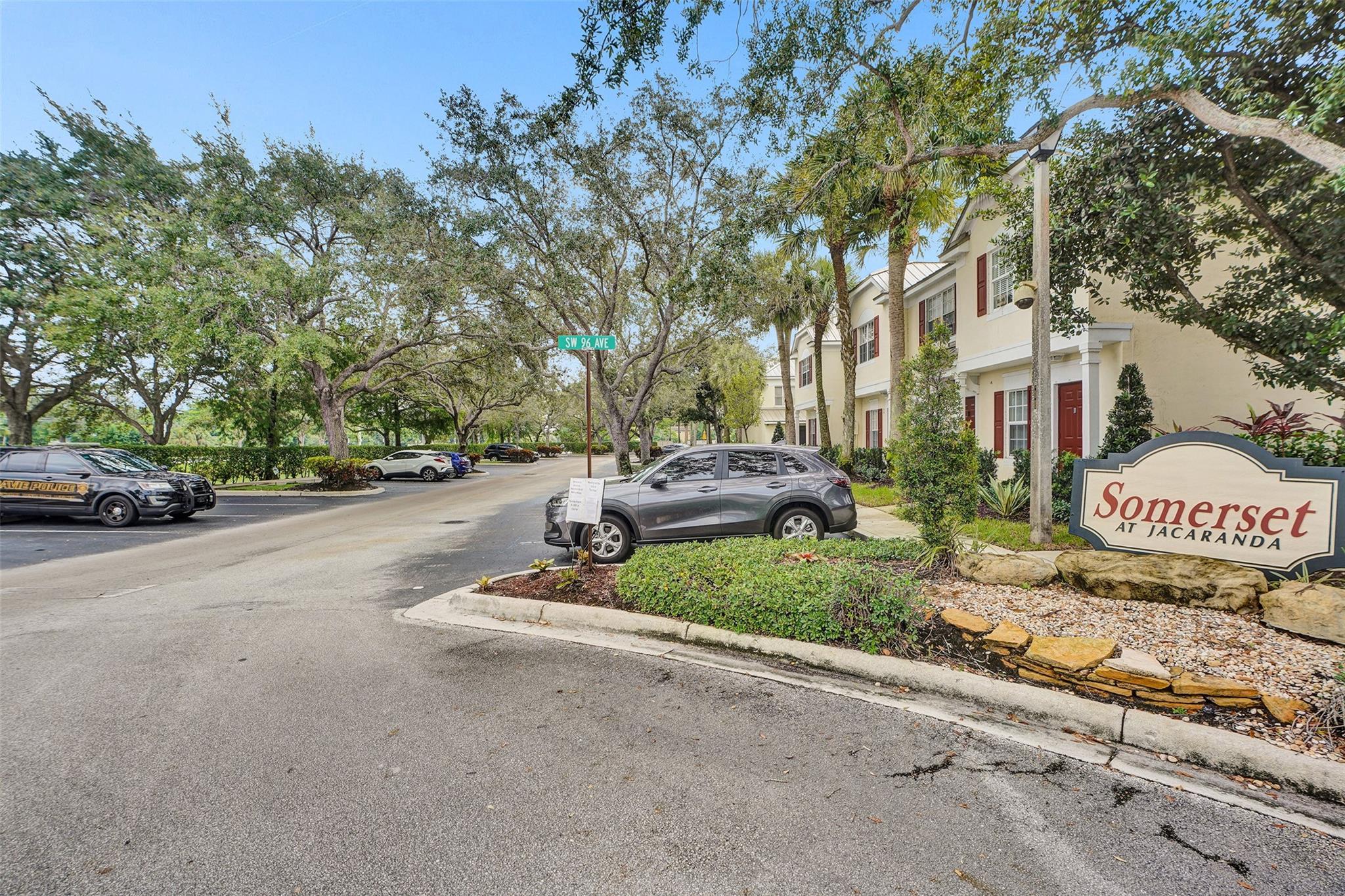 Highly sought after Somerset at Jacaranda is centrally located near shopping, dining, and major roadways. Tranquil living meets urban convenience. Each of 2 spacious bedrooms has its own bathroom, pus a 1/2 bathroom on the 1st floor. Move-in ready, brand-new flooring, freshly painted, and a wooded backyard that backs directly onto Jacaranda golf course. Enjoy peace of mind with a 2024 metal roof and washer/dryer, 2019 hot water heater, and 2017 air conditioner. The kitchen is equipped with granite counter tops and reliable stainless appliances:dishwasher, stove, and microwave. Lots of guest parking. Leasing is permitted 1st year. Seller paying off 2024 New Roof Special Assessment. Enough reserves for a low down & NO HOA min down.
