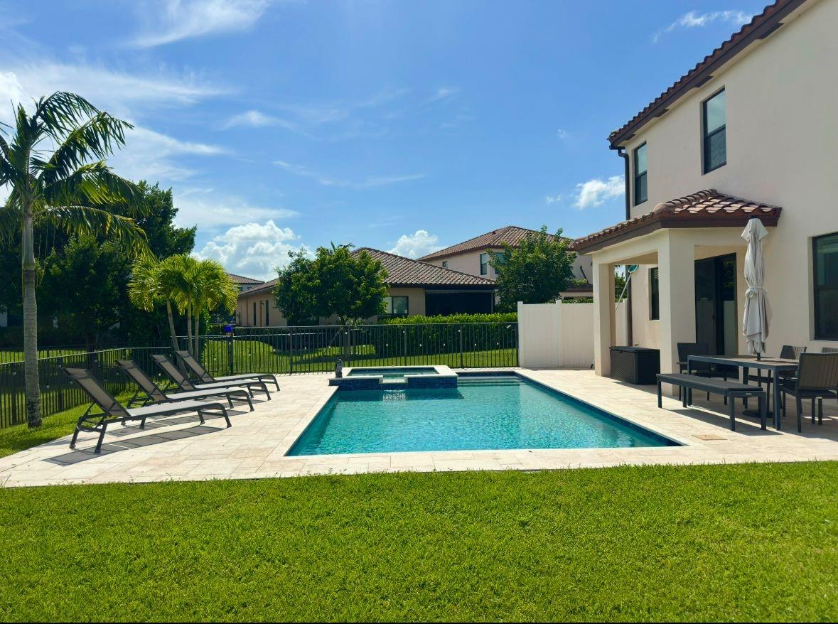 New Price to Sell !!! Two-story lakefront home in BellaSera, 2,385 Sqft., 5 bedrooms, 3 full baths. Four upstairs bedrooms include a master suite with lake views. Custom heated luxury pool with integrated spa and furnished poolside lounge. Sold fully furnished with high-end furniture and appliances (including 85” and 75” Sony TVs). Open-concept design maximizes natural light and flow. Two-car garage. Resort-style community amenities: clubhouse, heated pool, fitness center, sports courts, and 24-hour security. Prime location near top schools, medical centers, shopping, and entertainment.