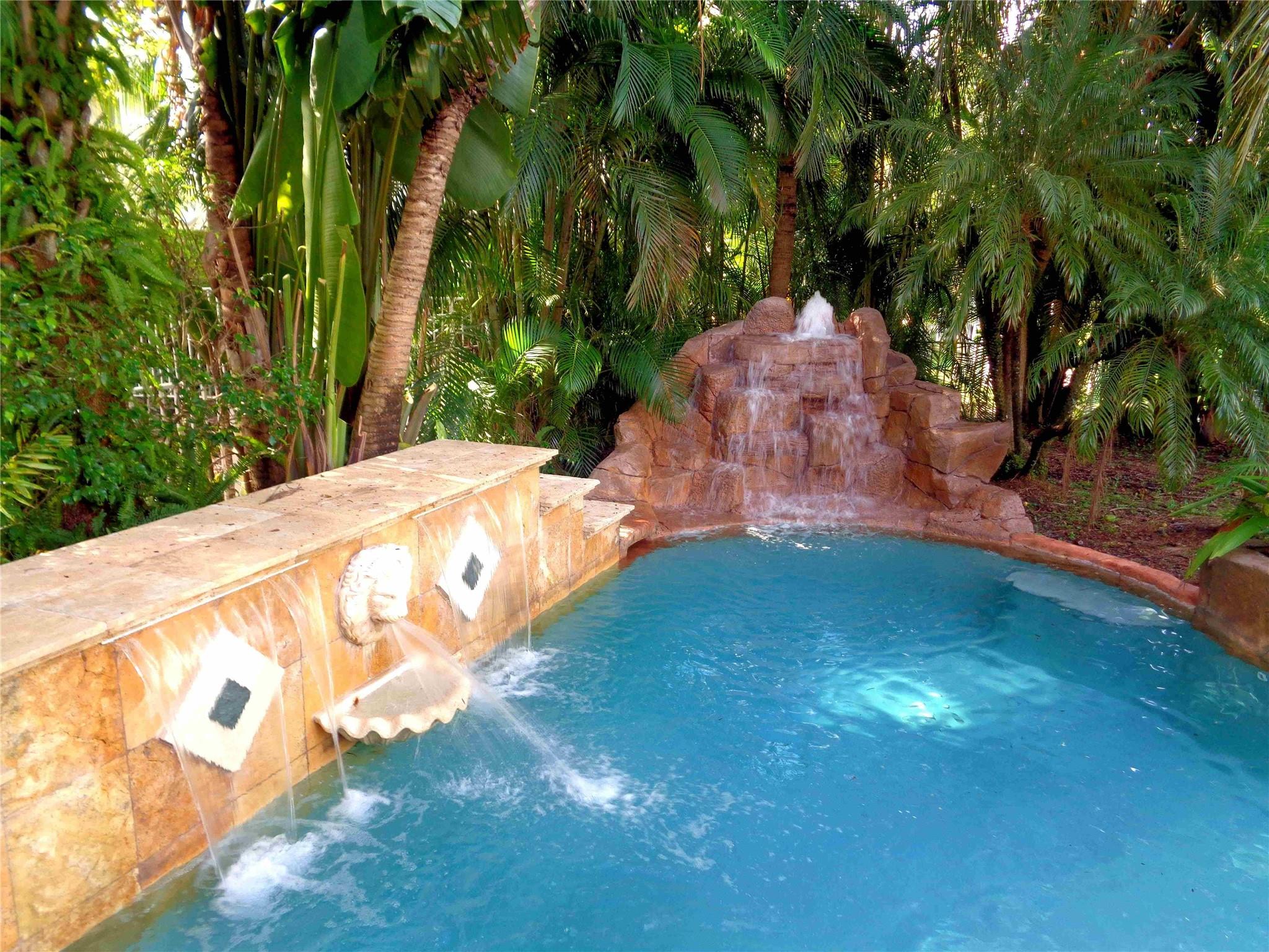 You’ll feel like you’re living in Jamaica or Costa Rica with your very private and secluded lagoon-style heated swimming pool with large jacuzzi hot tub, rock waterfalls, island, fountains, underwater bar seats, and more. The well-manicured yard has multiple areas to lounge under the many coconut palm trees, on a very quiet and peaceful lake. The house has 5-bedrooms, 3.5 bathrooms, and a 3-car garage, with a driveway for 3-additional vehicles. The HOA provides a secure gated-community with 24/7 guards, Comcast cable TV, Xfinity Wi-Fi internet, ADT alarm panel, lawn maintenance and nightly sprinklers. As well as, the multimillion-dollar clubhouse has a state-of-the-art fitness center, yoga studio, resort style swimming pool, tennis courts and playground, all for only $345/monthly.