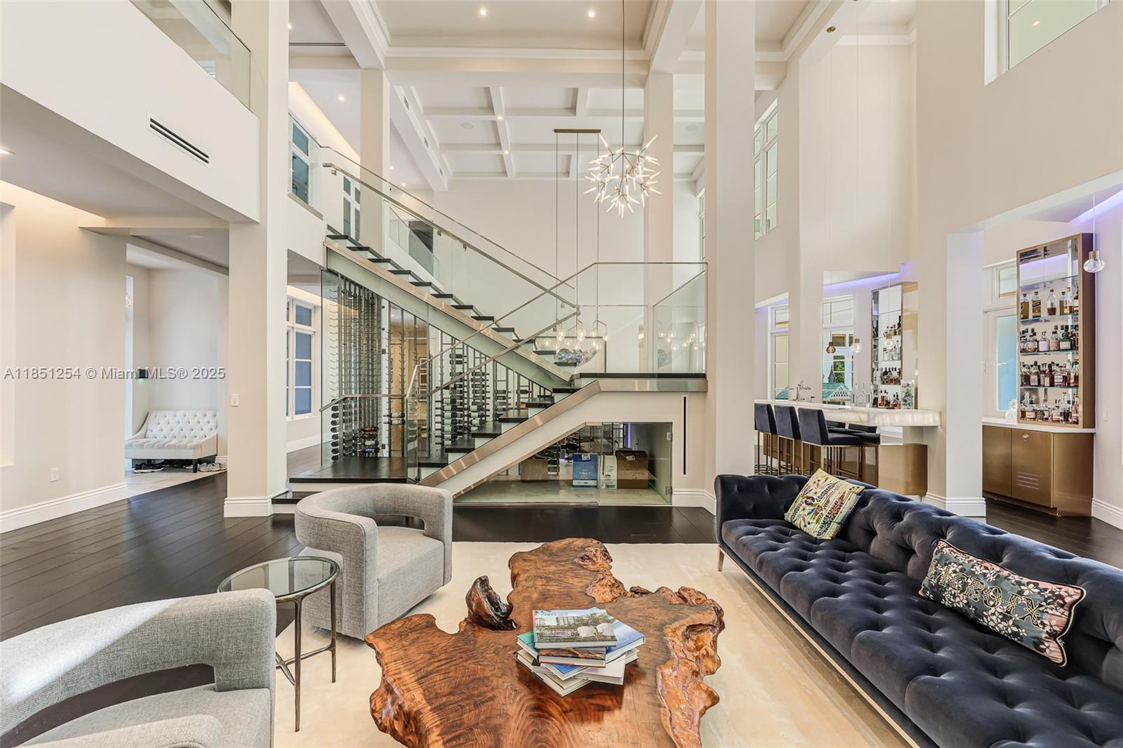 This breathtaking custom two-story estate sits on over an acre of beautifully landscaped grounds in the prestigious Village of Pinecrest. Spanning over 13,000 total square feet, it offers 8 spacious bedrooms and 10.5 luxurious bathrooms. Inside, you'll find wood accents, soaring vaulted ceilings, and a temperature-controlled wine cellar. The gourmet kitchen showcases top-tier appliances, while a smart home system enhances everyday convenience. The resort-style backyard is designed for both relaxation and entertaining, featuring an Olympic-sized lap pool with underwater speakers, a summer kitchen, basketball court, and private guesthouse with a full kitchen and bath. Just minutes from top-rated schools and scenic parks, this exceptional estate embodies refined South Florida living.