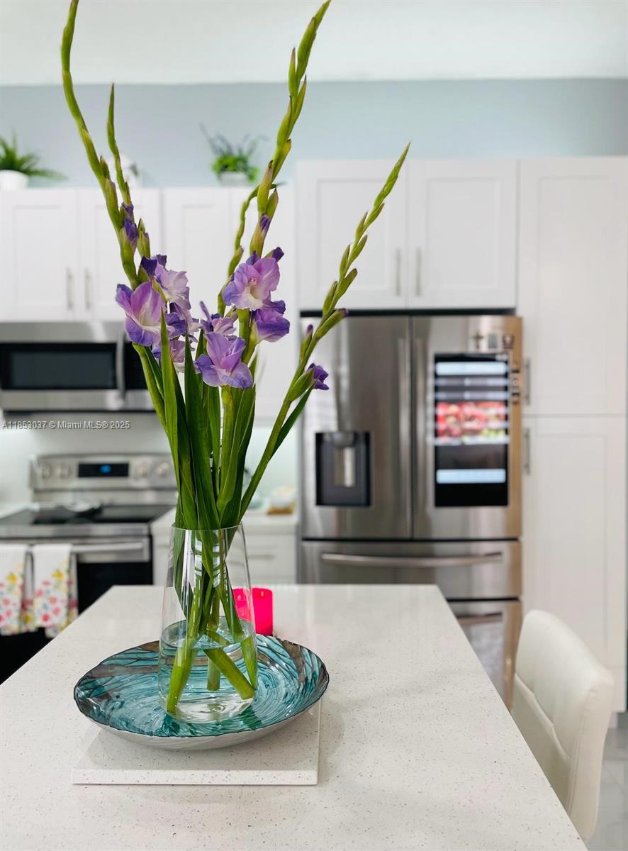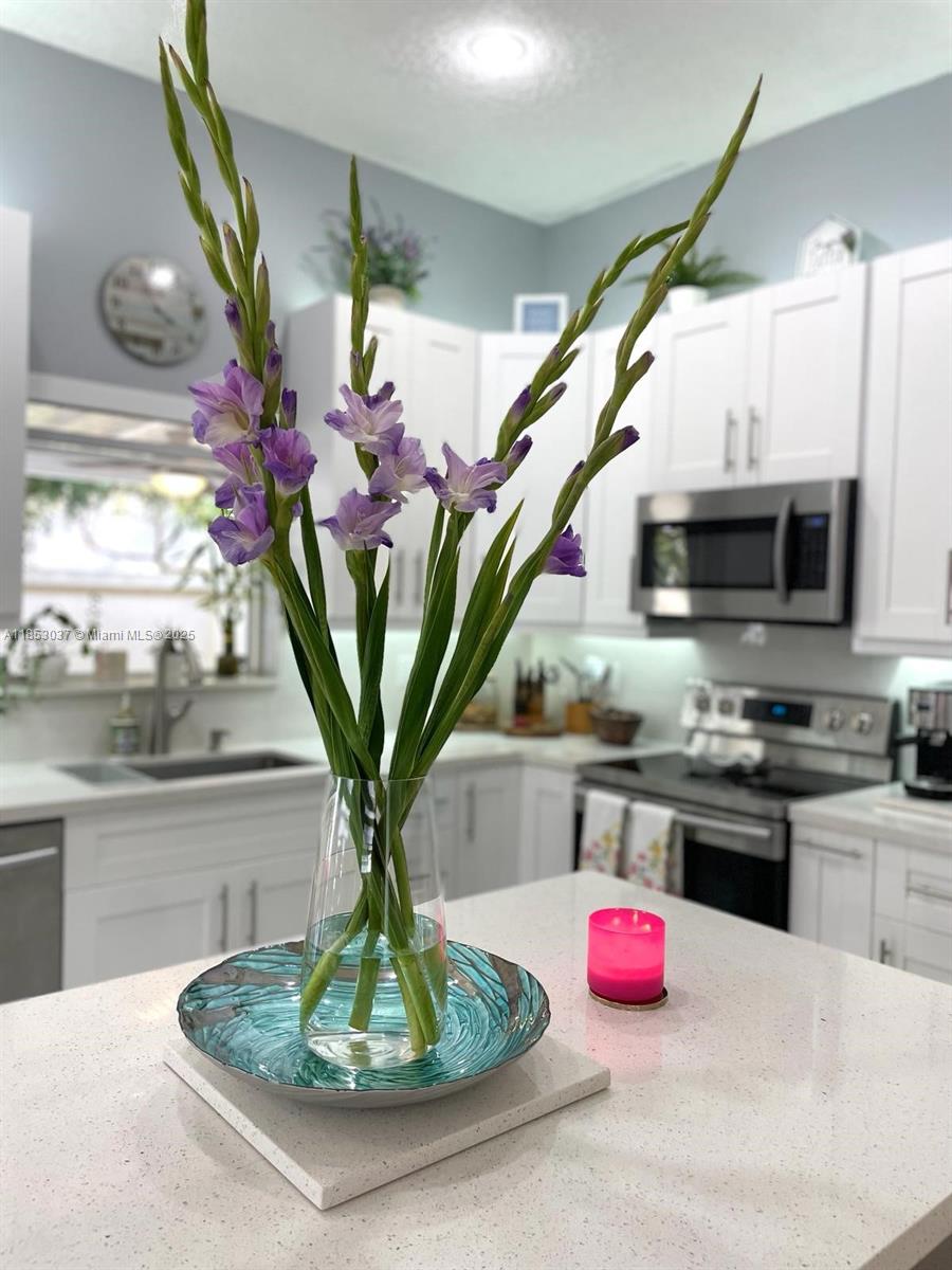 Beautifully Remodeled 3-bed, 2-bath home in the highly desirable Silver Lakes Community! This light & airy home features: Porcelain Tile & laminated Wood Floors in the bedrooms, amazing kitchen with wood cabinets, quartz counters, top of the line appliances including a smart refrigerator, pantry, center island with waterfall edge & lots of storage space, zebra window blinds, high impact windows & doors, spacious primary bedroom with walk-in closet, en-suite bathroom with dual sinks & shower, office/den area, NEW Roof 2024, A/C & Water Heater (2018), covered terrace with ceiling fans, outdoor kitchen area with refrigerator, storage shed & fenced backyard. The Silver Lakes amenities include a community park, pool, playground, walking trails, clubhouse, and security patrol. Great Location!