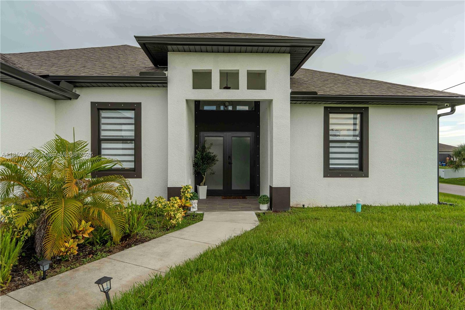 Corner lot home with 3 bedrooms + den, 2 baths, and 1,811 sq ft of living space. Features high ceilings, elegant white wood cabinets, quartz countertops, porcelain tile floors, and stylish bathroom finishes. Includes stainless steel appliances, a sprinkler system, double garage with automatic opener, and a private water filtration system. Spacious laundry room with storage and hookups. No HOA! Located near Alabama Ave and SR-82, with easy access to Fort Myers. Minutes from shopping like Lehigh Town Centre, Sunshine Plaza, Miromar Outlets, and more. The perfect home at the perfect price—schedule your showing today!