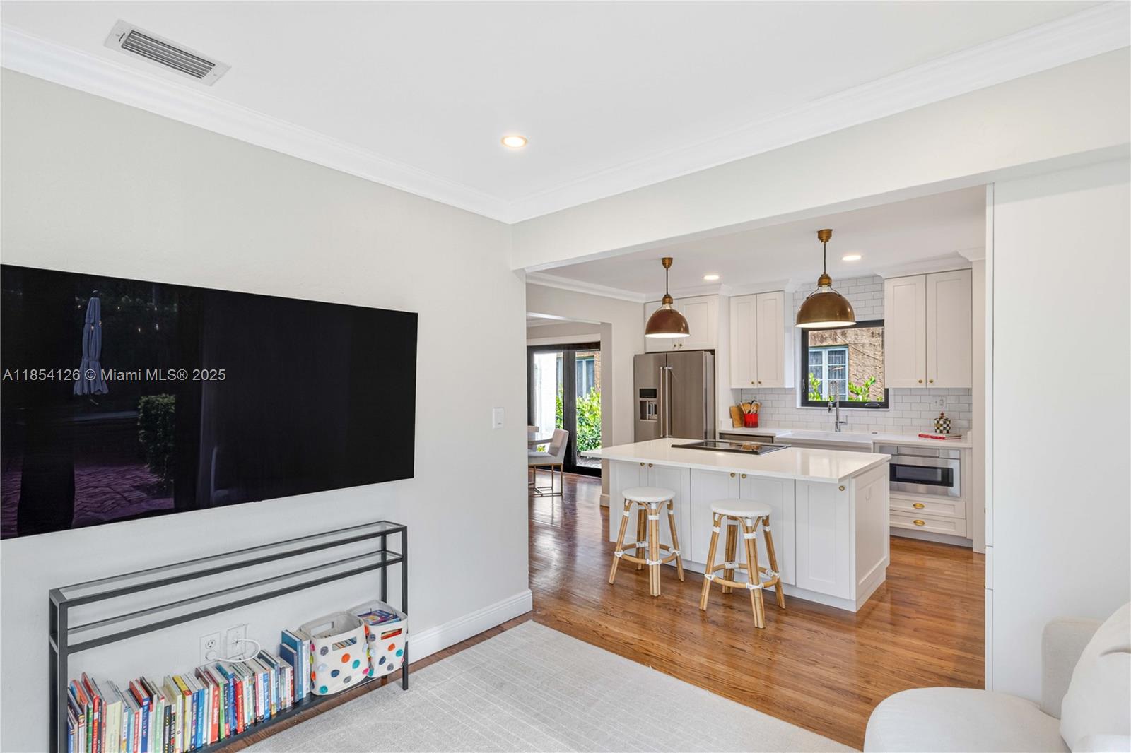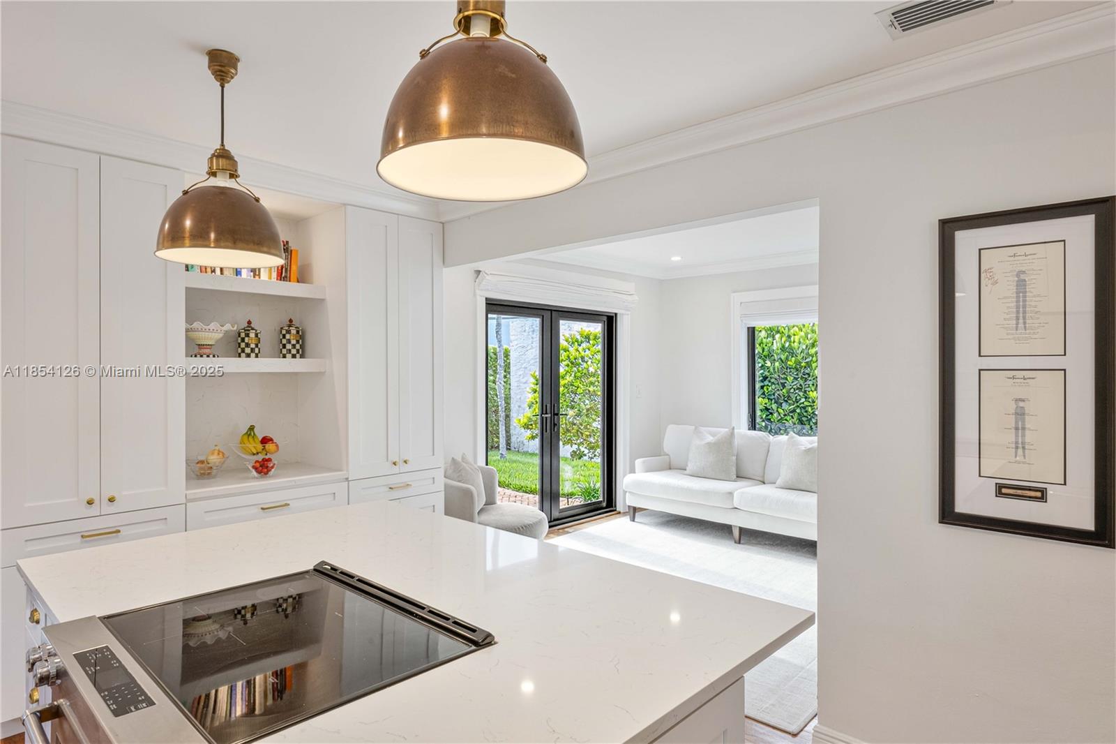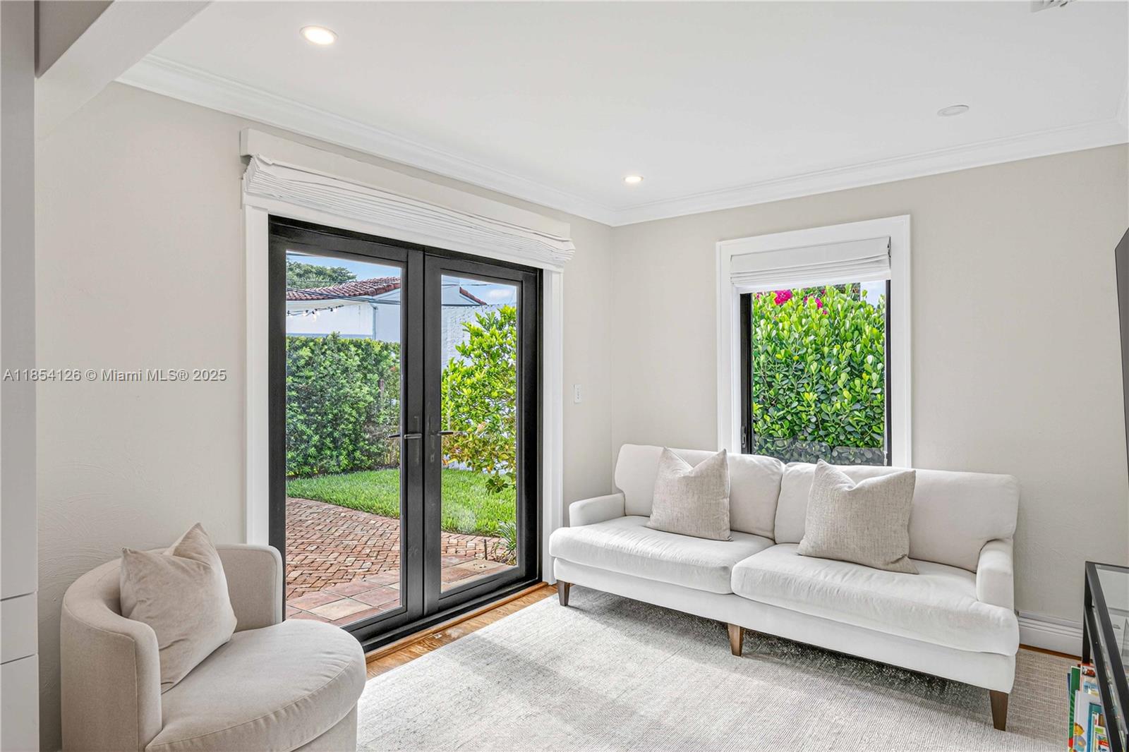 A picture-perfect gem in North Gables! This turnkey home showcases sophisticated living with luxury finishes throughout. From the welcoming covered porch, gleaming hardwood floors flow seamlessly through sun-drenched open living spaces centered around a stunning fireplace. The beautifully renovated chef's kitchen features high-end appliances and abundant storage, while updated bathrooms feature premium contemporary design. No detail was spared including generous custom closets and new impact windows. Step through french doors to enjoy the spacious bricked patio — perfect for entertaining. This exceptional property combines elegance with comfort in a highly desirable neighborhood minutes from top schools, parks and downtown Coral Gables.