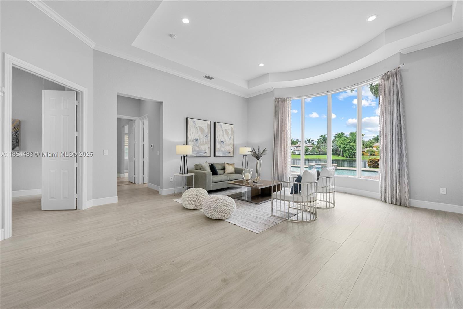 Remodeled lakefront estate in gated Grove Creek Ranches, Davie. One story on a builder’s acre with panoramic lake views and no front neighbors. 4 BD, 2 Flex Rooms, 4 BT, 4,100+ sq ft of bright, open living: formal living and family rooms, dining, breakfast nook. Designer chef’s kitchen with Monogram appliances, quartzite countertops, spa-level baths, elegant 12x72 wood-look porcelain tile flooring all thru the house, upgraded lighting, and custom cabinetry. Brand-new impact windows have already been ordered. Outside, enjoy a tropical oasis with a heated chlorine resort-style pool, spacious patio, lush landscaping with Dade & Sylvester palms, a 3-car garage, and a wide driveway. Close to top-rated schools. Move-in ready! Schedule your private showing today.
