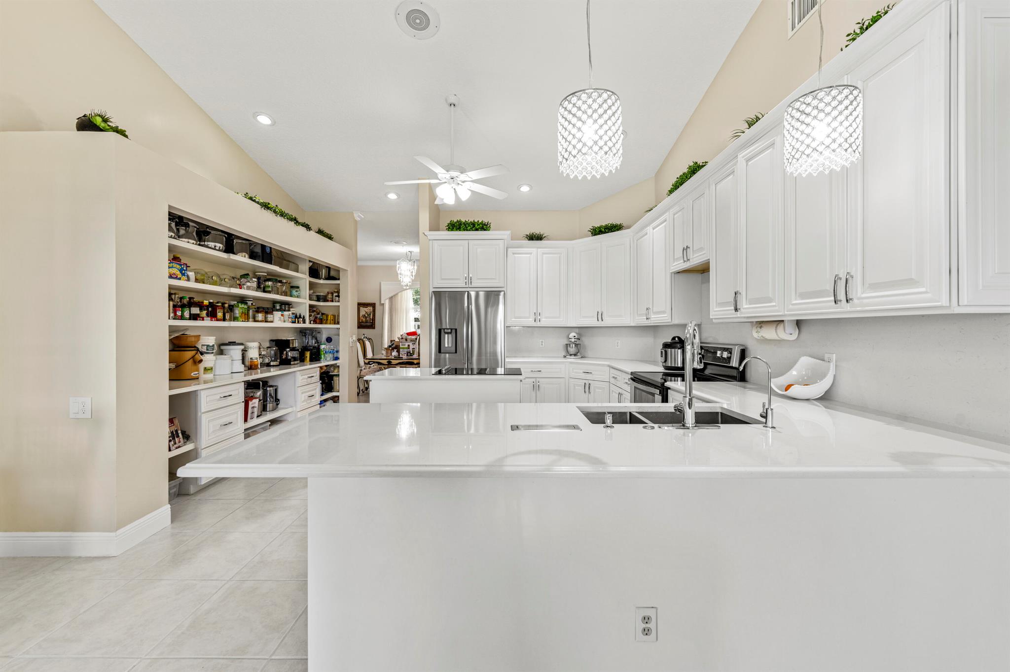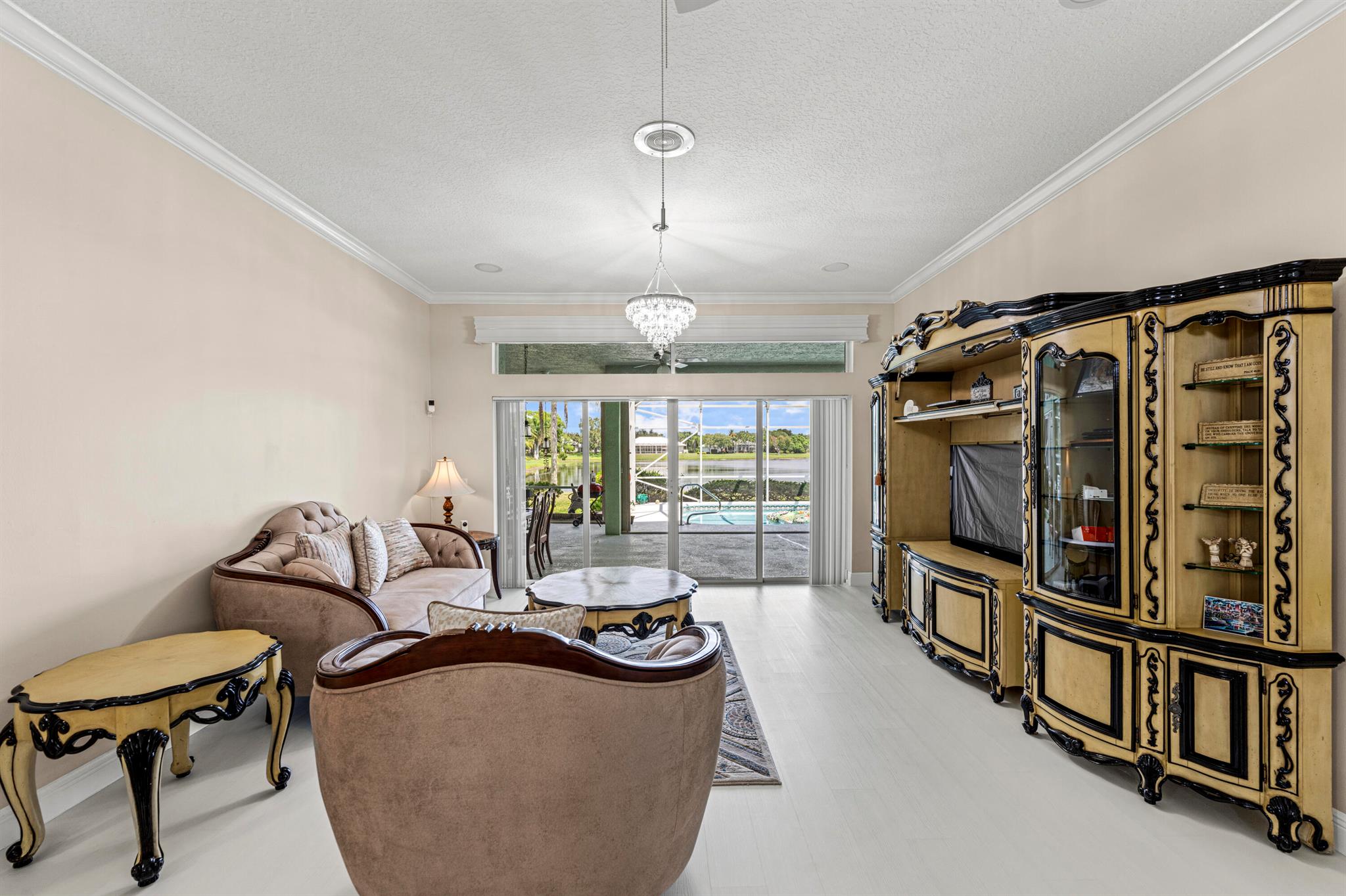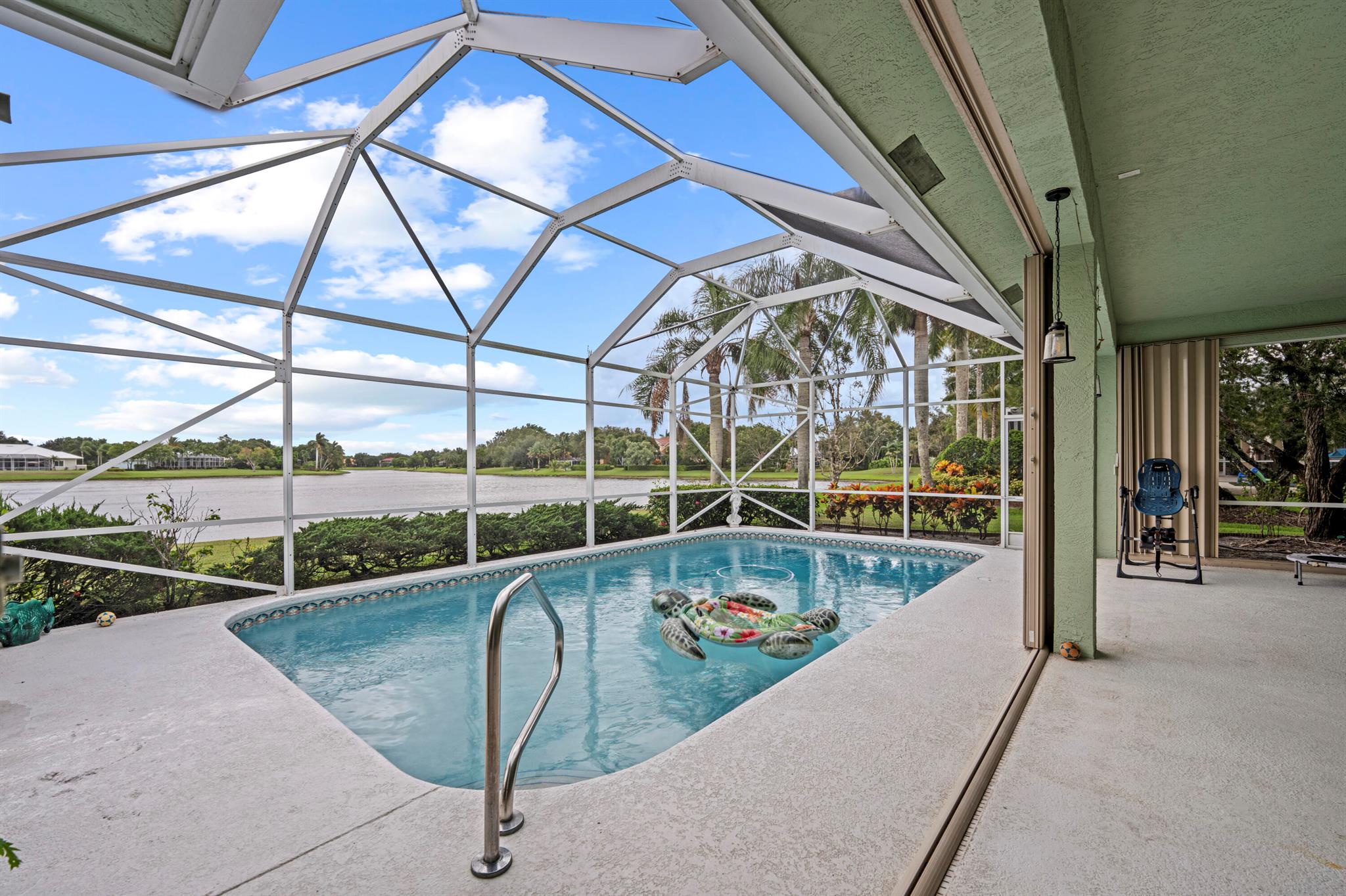 Beautiful lake front oasis situated on an half acre plus property. Glamorous 4 bedroom 3 bath pool home with a den/office. Lovely home with fabulous lake views. This single family home is in the exclusive gated community of Orchid Bay. The kitchen has new cabinets with quartz countertops. New tile floors in the living room, kitchen and dining areas. The bedrooms have been upgraded with quality laminate flooring. There is a large screened patio and pool area. The home is also equipped with a central vacuum system. The air conditioning units were installed this year. The water heater was installed in 2024. The meatal roof was installed in 2020. Multi colored lights surround the pool. New pool pump. High ceilings and many windows that provide substantial light.