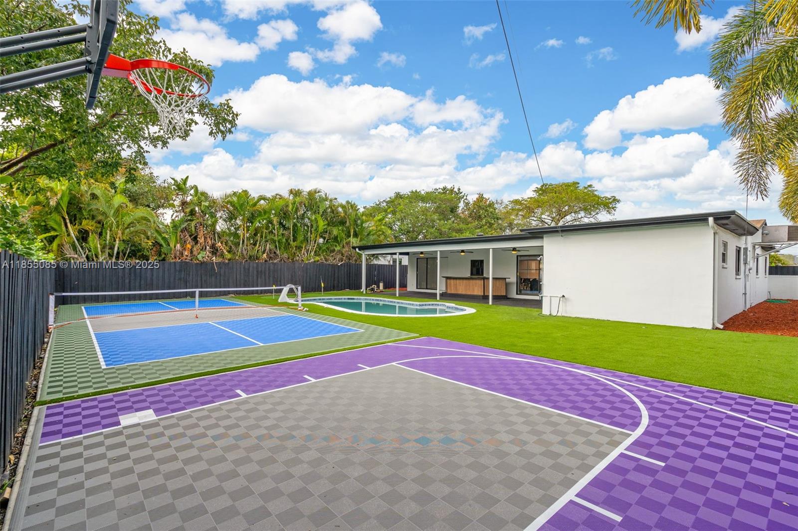 PRICED WELL BELOW APPRAISED VALUE! Own your very own private sports complex home located in the prestigious Hollywood Hills area. 15 minutes from Hollywood Beach, FLL airport, and the Hardrock Casino. This spacious remodeled 4/3 home sits on a 9,320 sq ft lot, designed for comfortable living with a floor plan that flows seamlessly. The expansive backyard boasts a sparkling pool, covered terrace, built in bar, mini golf area, pickleball court and basketball court. Perfect for outdoor entertainment and relaxation, complete with hurricane impact windows, natural lighting, modern kitchen and freshly painted exterior/interior. This home is nestled in a quiet neighborhood and is ideal for families to live in or investors seeking a second home. Don't miss your chance at making this your home.