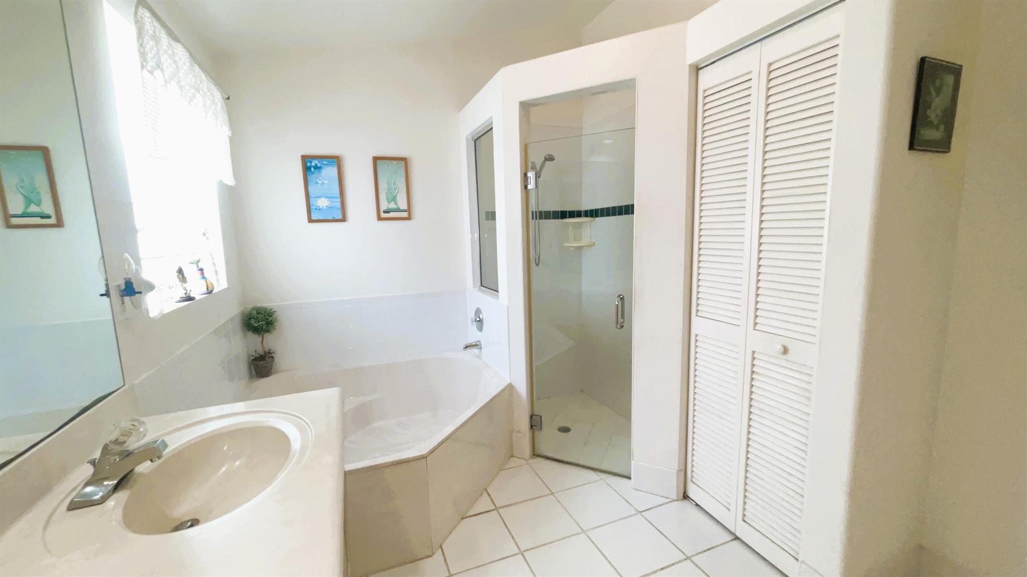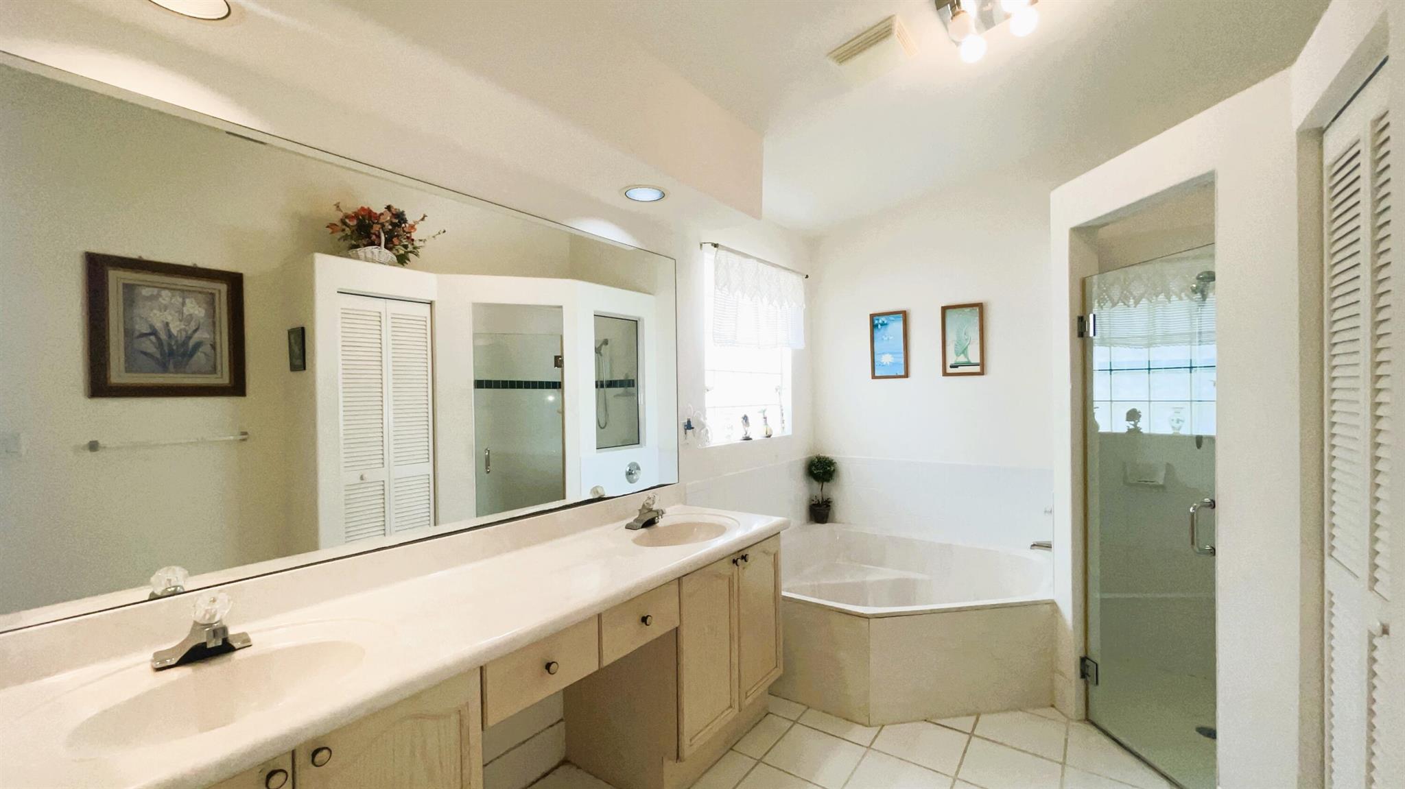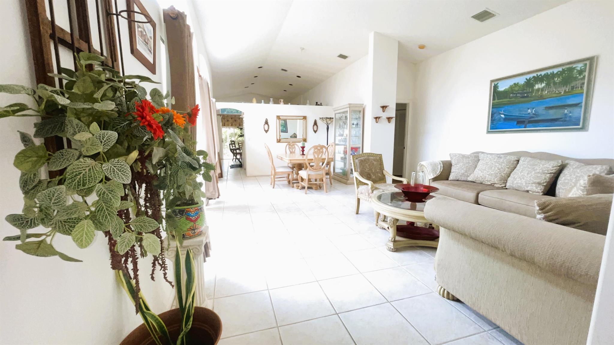 Fantastic Ownership Opportunity! This beautiful 3-bedroom, 2-bathroom single-story home with a 2-car garage is ready for its new proud owner. The open and split floor plan features vaulted ceilings, ceramic tiles in the main living areas, and wood floors in the bedrooms. The primary suite boasts a walk-in closet, a Roman tub, a step-down shower, and dual sinks. Enjoy the beautifully landscaped and decorated driveway, as well as the private and quiet backyard with a large patio and tropical landscape. Located in the premier residential community of Winston Trails in western Lake Worth, Florida, this home is surrounded by the world-class Winston Trails Public Golf Course and Club.
