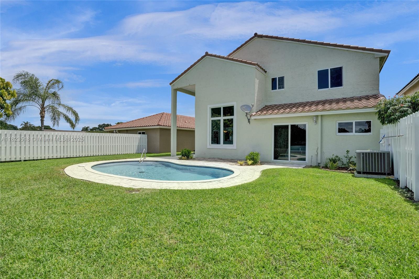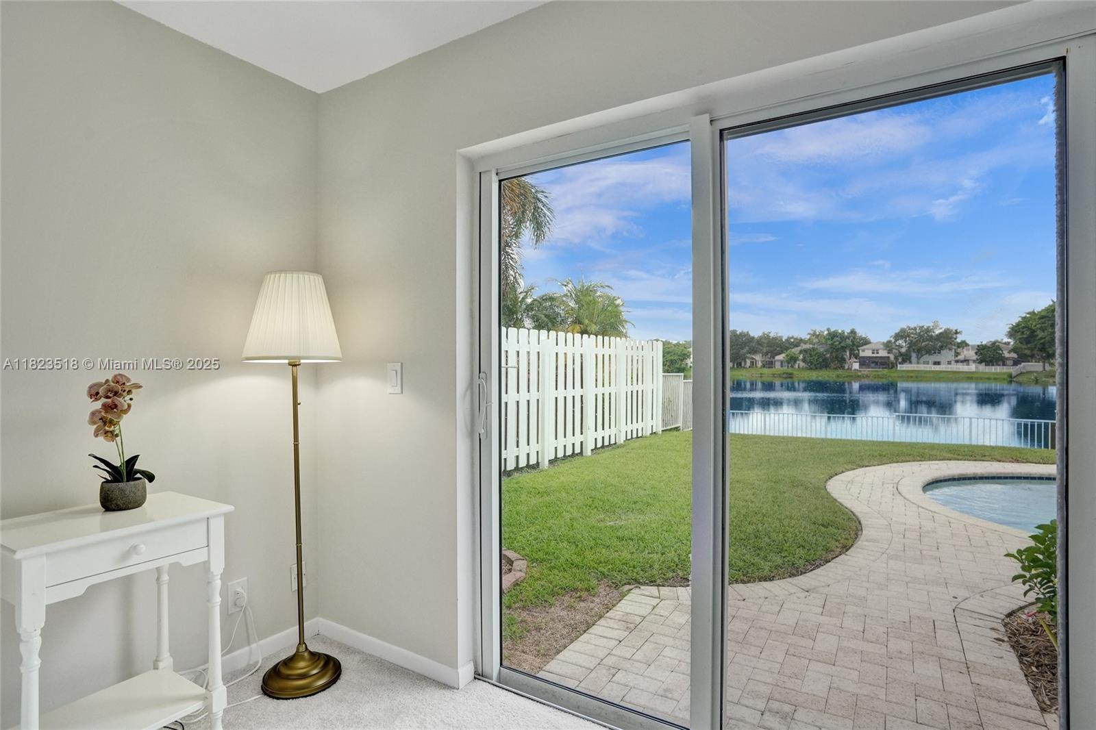 Bright, spacious, and well-maintained 3-bedroom + den, 2.5-bathroom home featuring a pool & serene lake views. Located in a cul-de-sac and tranquil neighborhood, this home offers both comfort and potential. Freshly painted and popcorn removed. The original spacious kitchen & two bathrooms provide an excellent opportunity for the new owner to renovate and design to their taste. Enjoy peace of mind with a New Roof (2024) and A/C (2022). Impact Windows throughout. The Volume ceilings enhance the natural light and create an open, airy feel. Step outside to your private fenced backyard, perfect for relaxing or entertaining. Whether enjoying quiet mornings alone or hosting family and friends, this home provides the ideal setting. Conveniently located near parks, shopping, dining, and more.