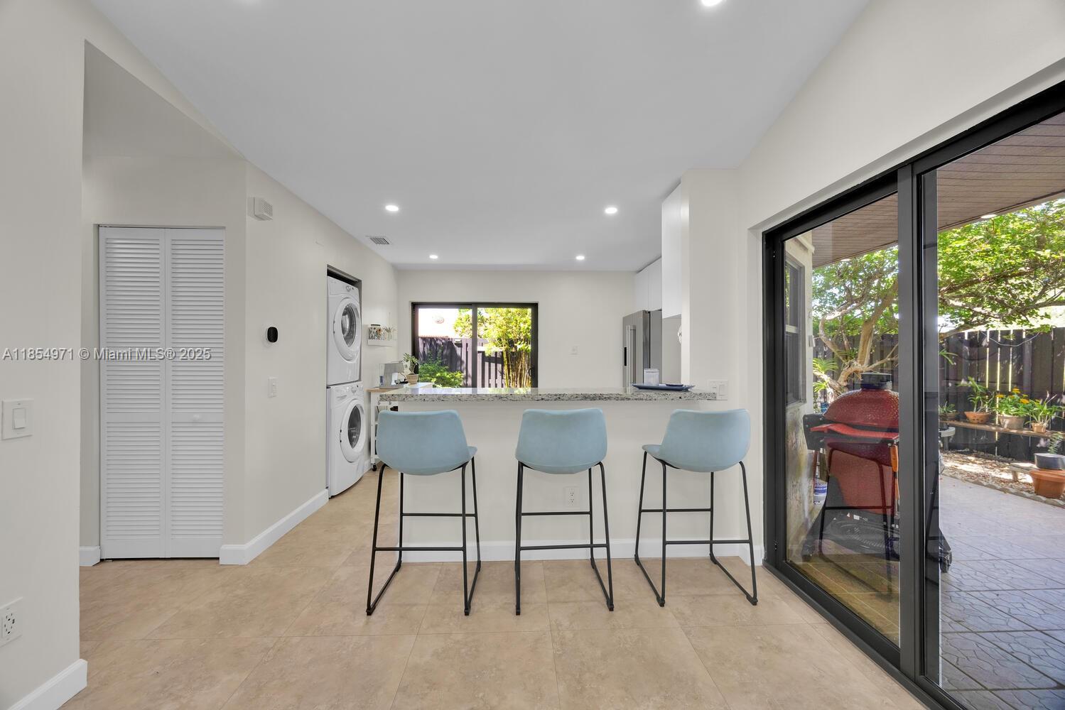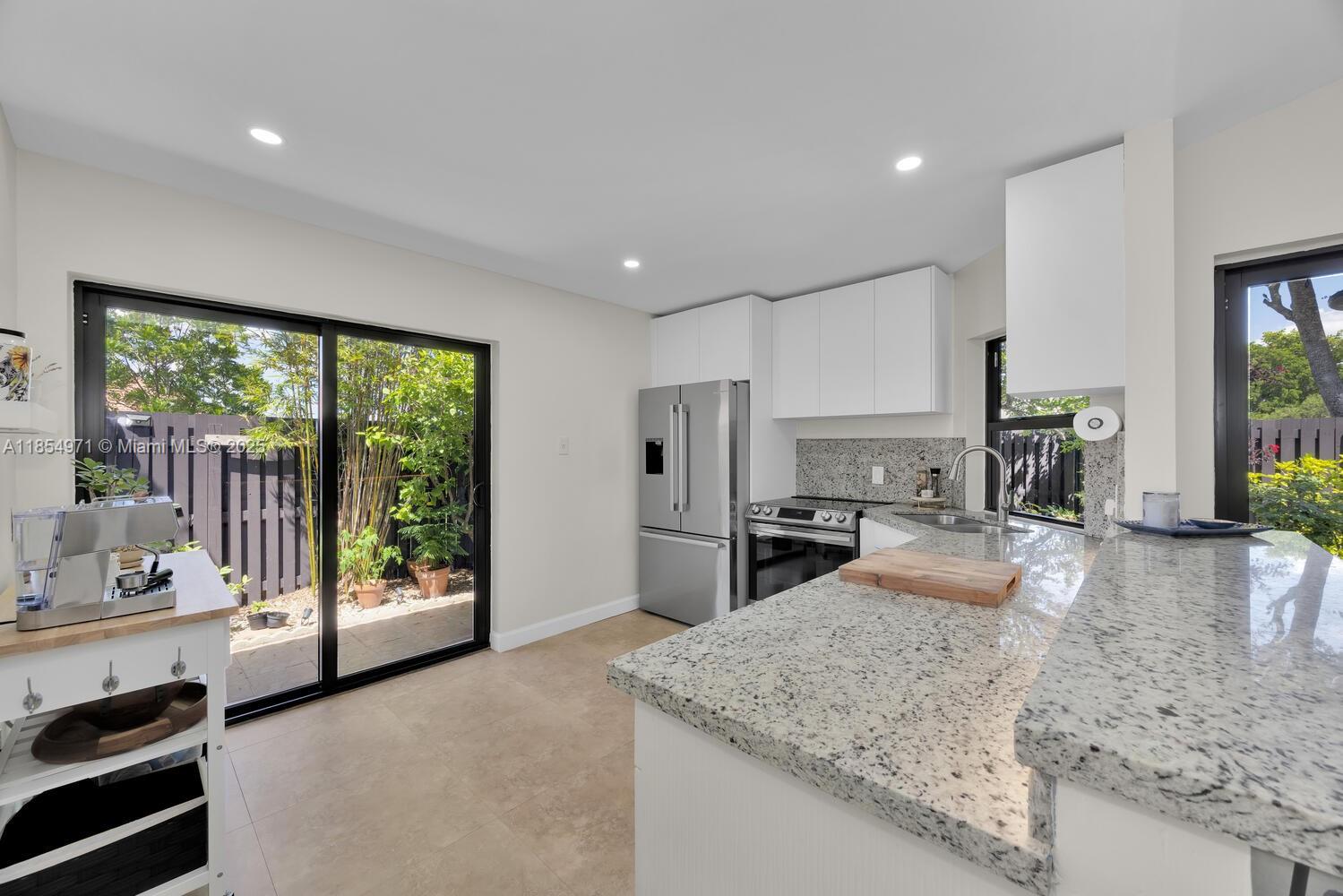 Completely updated 3BR/2BA corner townhome in the highly desirable Lakes of the Meadows - Village Homes. Single-story layout with vaulted ceilings, hurricane impact windows, updated flooring, open kitchen w/ custom cabinets, granite counters, and new SS appliances. Spacious primary suite w/ large walk-in closet & oversized en-suite bath. Covered patio, fenced yard, and extra storage. No rear neighbors—backs to greenbelt. Enjoy resort-style amenities: clubhouse, pools, gym, tennis, pickleball, basketball, walking trails & more. 24/7 roving security. Close to shopping, dining & top-rated schools. Buy with confidence as this home has been pre-inspected!