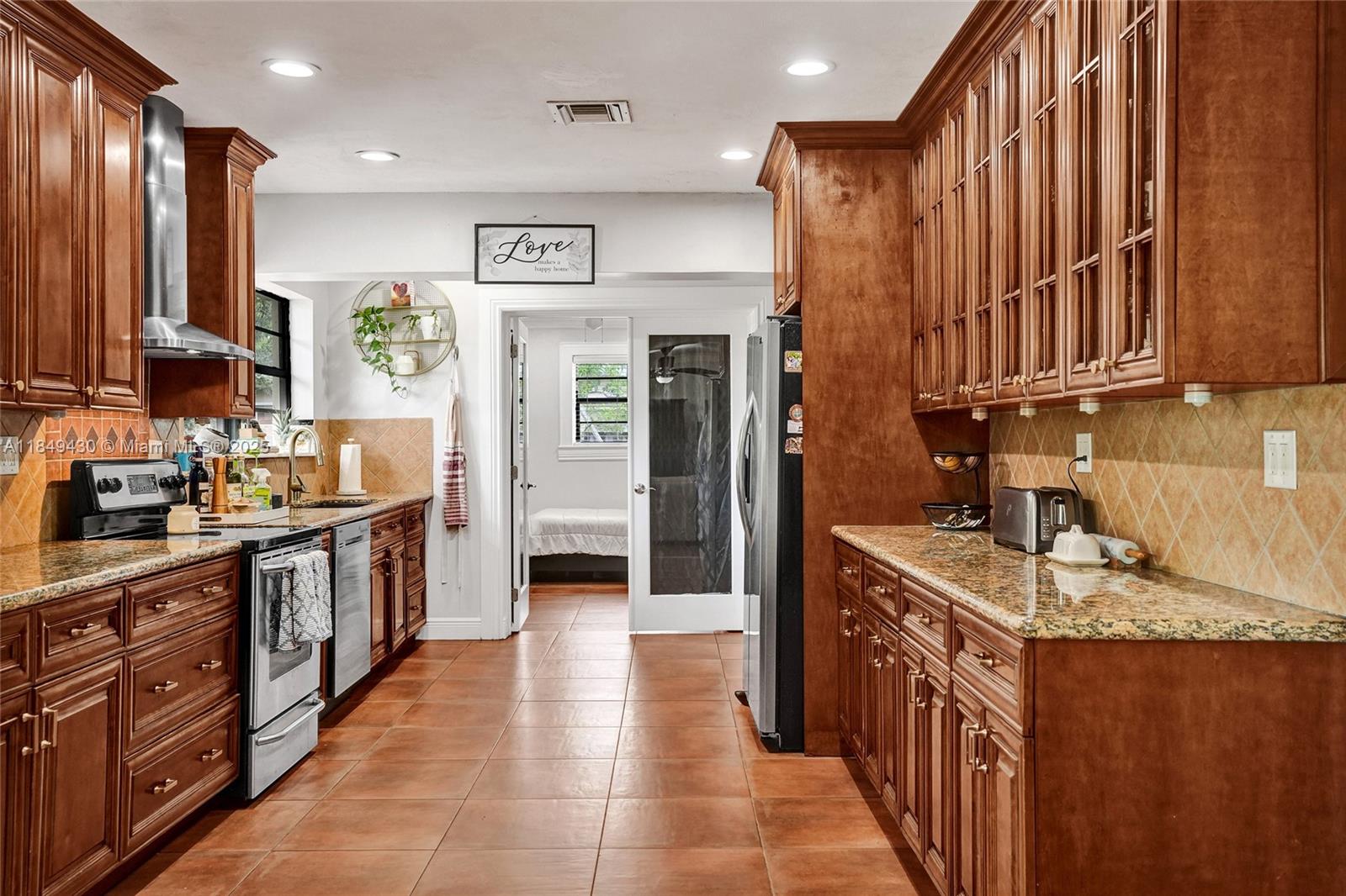 Welcome to your personal paradise! This light & bright home offers the perfect blend of indoor comfort and outdoor serenity. Nestled on a lush 1/3-acre lot, mature fruit trees offering shade, large covered patio perfect for entertaining and a sparkling pool with cascading waterfall and outdoor shower. Open living area bathed in natural light, spacious galley kitchen with rich wood cabinetry and ample counter space. 3 bedrooms plus extra room, ideal as a laundry room, office, playroom or easily converted to a 4th bedroom, well-maintained with classic finishes. Don’t miss your opportunity to own this home with a rare blend of charm, functionality and tropical tranquility. Pre-approved buyers only please, offers on AS-IS Contract, 7-day inspection period, 15-day loan approval