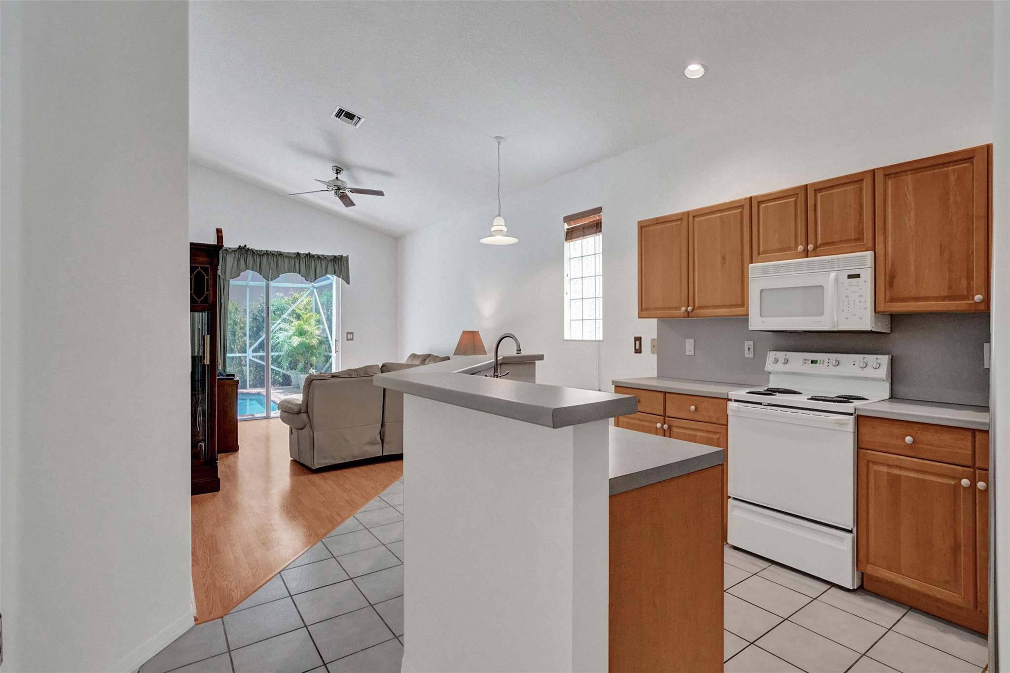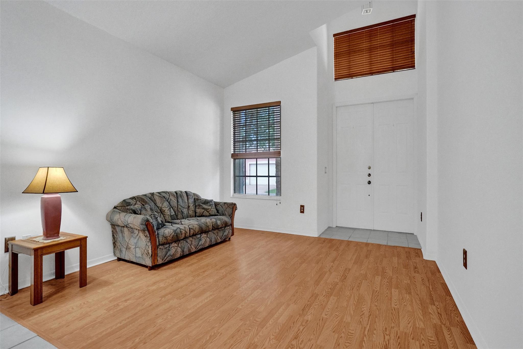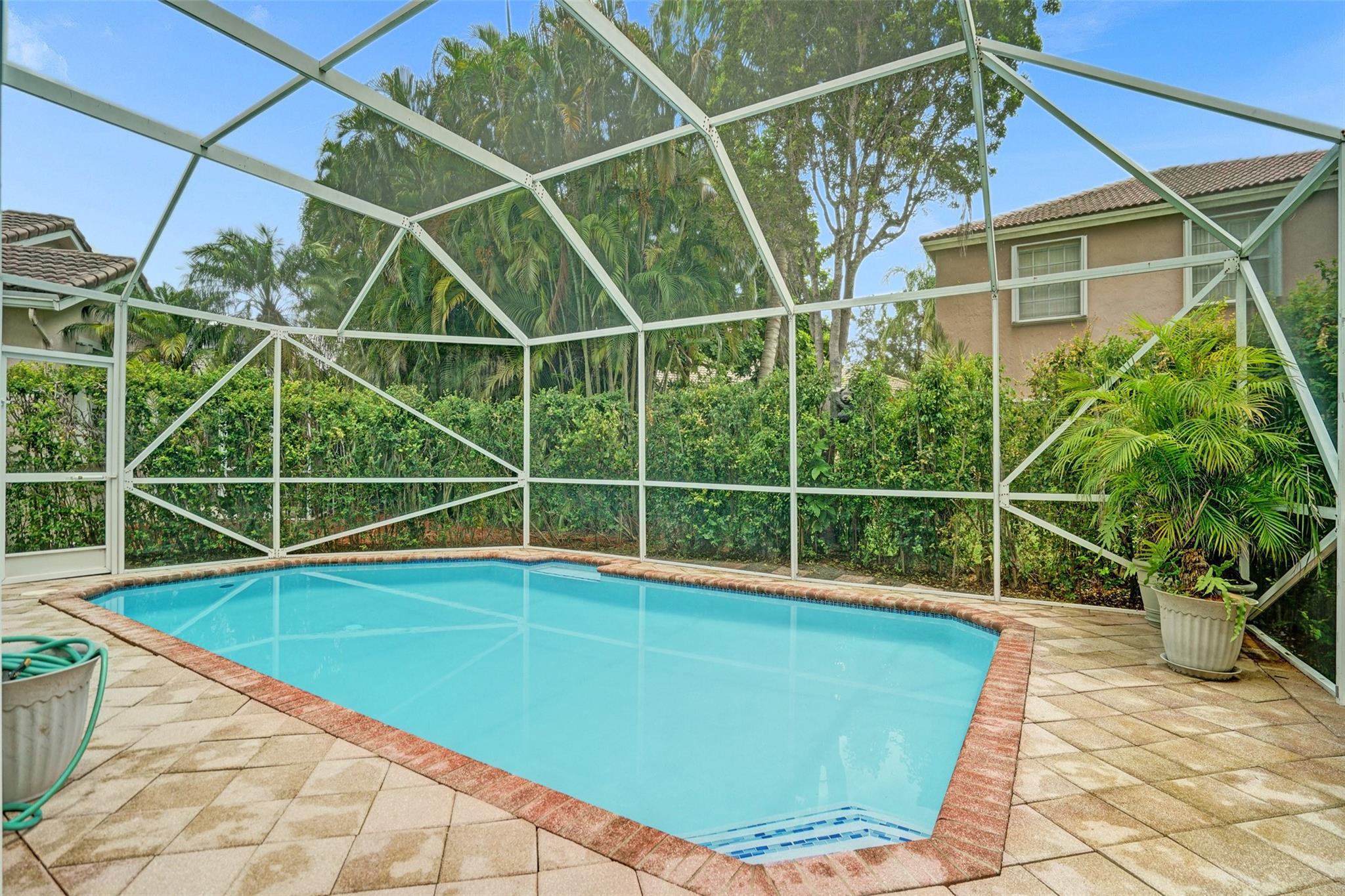 Charming well-maintained 4-bedroom, 2-bathroom home located in the sought-after Mayfair at Wyndham Lakes community. Pool was just resurfaced! Entire home freshly painted! Spacious one-story layout ,Vaulted ceilings, custom made wide wood blinds throughout the house. Sitting on one of the largest lots in the neighborhood, there's plenty of room to enjoy both indoor and outdoor space. Pool has a new motor and pump, offering a fresh and inviting space for relaxation and entertainment. Hurricane accordion shutters all throughout. Largest non easement lot in Mayfair! This gated community is quiet and family-friendly, has a beautiful community pool, low HOA fees and convenient access to top-rated schools, parks, shopping, and major roadways.