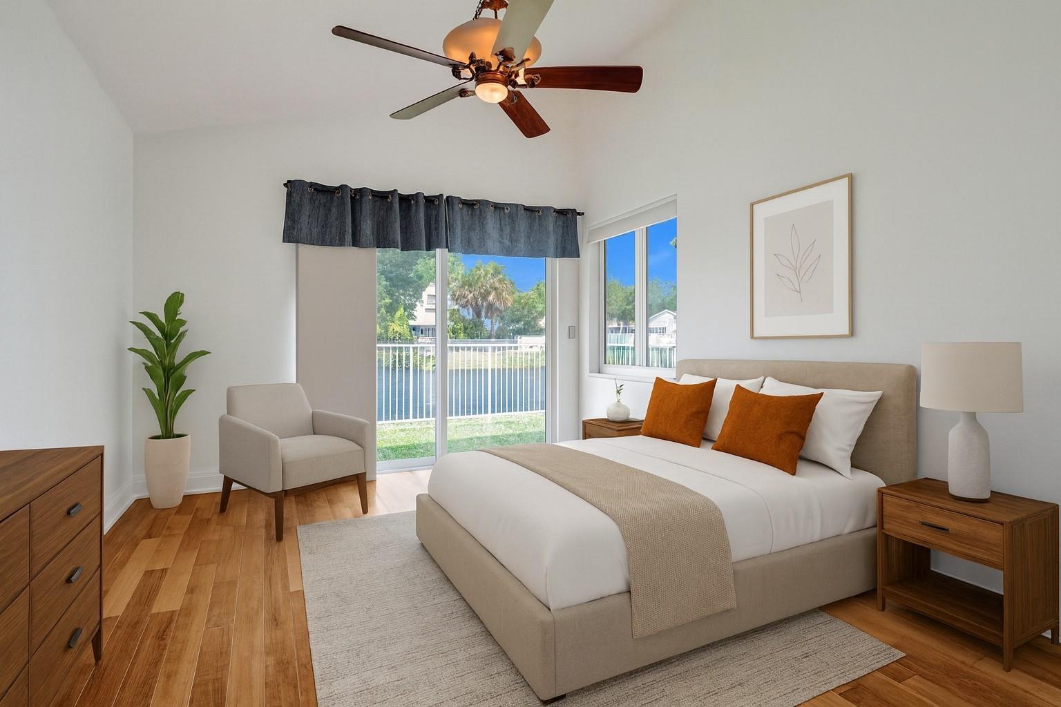 Lakefront Paradise in Plantation – Don’t Miss Out! Fall in love with this immaculate 3BR/2BA split-floorplan gem, perfectly tucked away in a quiet cul-de-sac with panoramic lake & fountain views from the screened patio, family room, kitchen, and spacious primary suite. 3rd bedroom (no closet) is perfect for a home office or den. Loaded with upgrades – impact windows, vaulted ceilings with elegant crown molding, rich Brazilian cherry wood floors, and a chef’s kitchen with stainless steel appliances, wood cabinetry, induction cooktop. Enjoy peace of mind with a NEW A/C (2023) plus a fenced yard and brick paver patio for effortless outdoor entertaining. 2-car garage. Lawn maintenance, 3 Community Pools included in HOA. Across from Diecke Park-Tennis, BB, Playground, Volleyball, and more!