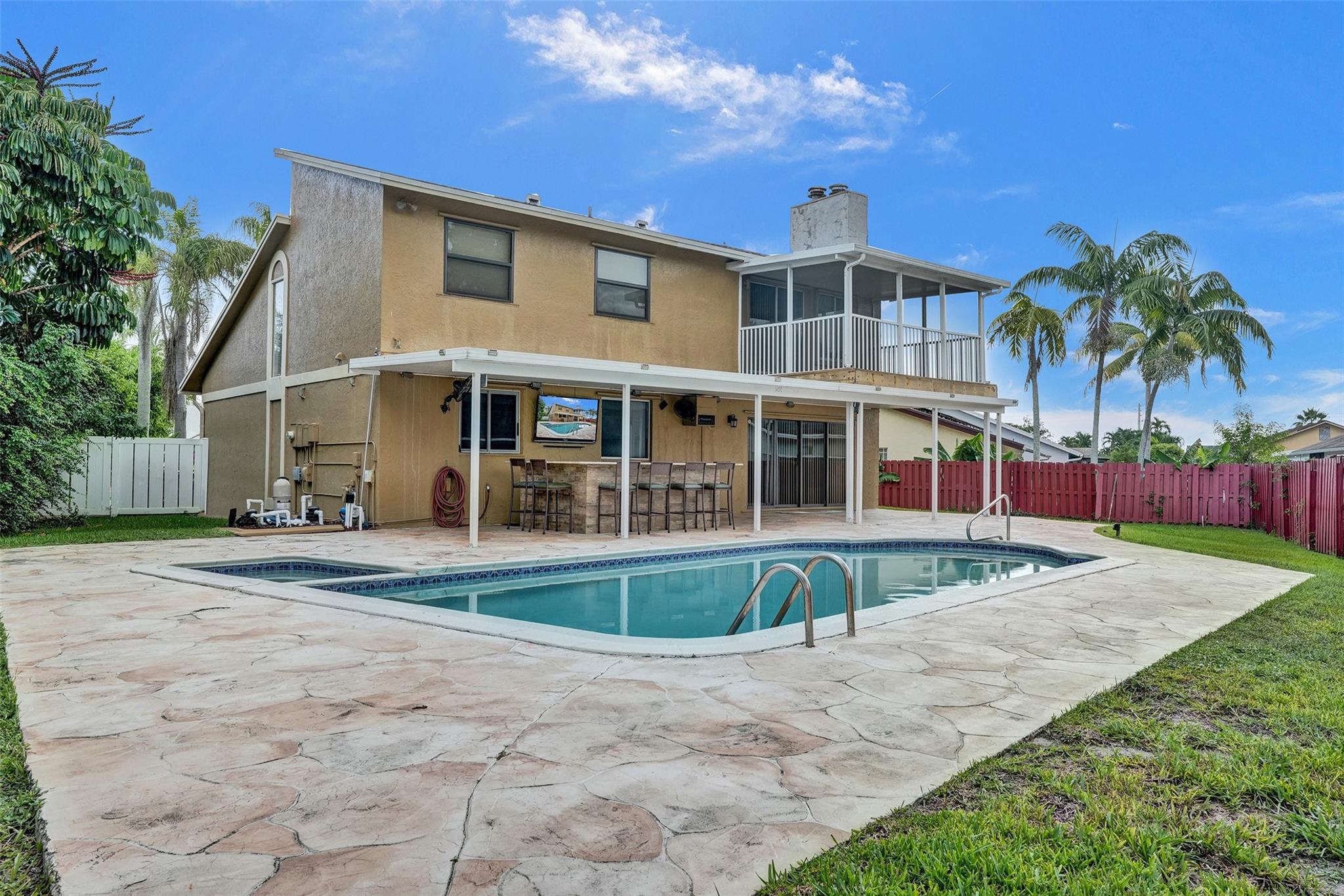 Priced for quick sale plus has a NEW ROOF and 2 NEW A/C units ..LAKEFRONT POOL home in West Sunrise's small quaint community with NO Hoa! This 3 bedroom, 3 full bath home is great for entertaining with 2,400 sqft under air. All bathrooms updated with spa-like feel. Kitchen is spacious with tons of cabinetry, sleek counter tops, breakfast island and SS appliances. Lots of recessed lighting, neutral interior paint and tile floors thru out first floor. Master bedroom is on 2nd floor with an additional sitting area or desk area + a private covered/screened balcony. This backyard is your own tropical oasis with pool, spa, outdoor bar that seats 8-10 people. Partial lake view with full access, great for fishing/boating! Fenced yard with almost 1/4 acre lot & double gates for parking your boat.