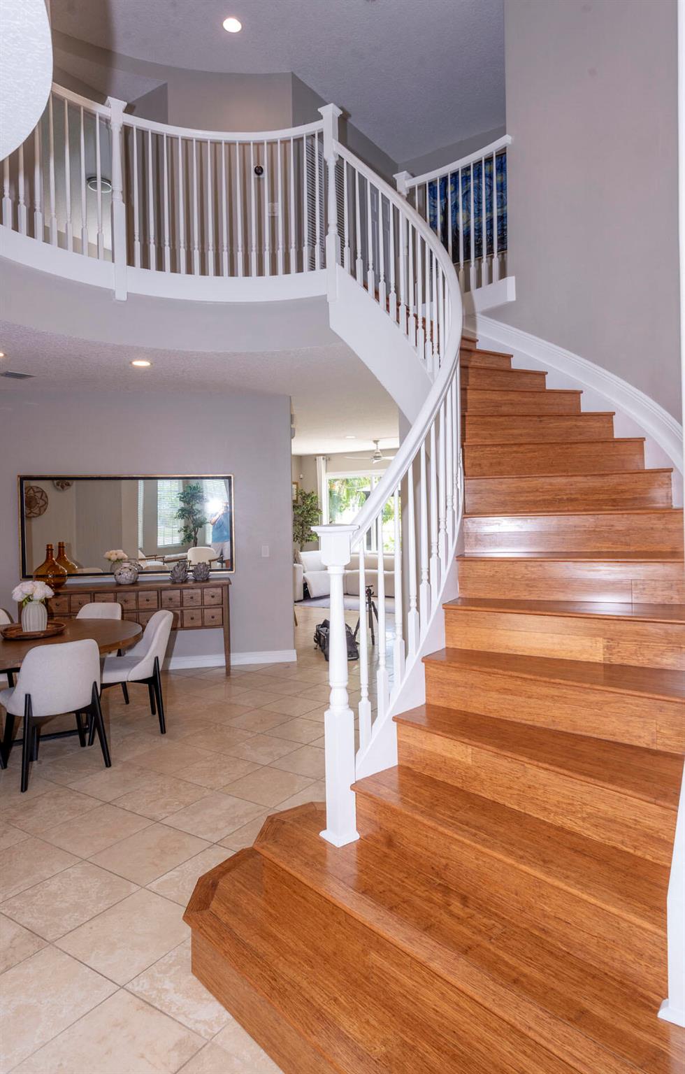 Elegant 2-story lakefront home in Olympia's Easton community in Wellington, FL. This spacious 5-bed, 2.5-bath residence features 3,027 sq ft under air, a bright open floor plan, soaring ceilings, and a modern kitchen with quartz countertops and GE Cafe stainless steel appliances. The first-floor primary suite includes dual walk-in closets. Enjoy tranquil lake views from the covered patio. Olympia offers resort-style amenities: clubhouse, pool, fitness center, tennis, and basketball courts. The Master Association offers bulk internet. The HOA offers Cable TV. Ideally located across from Wellington Green Mall, near top-rated schools, fine dining, shopping, and world-class equestrian and polo venues.